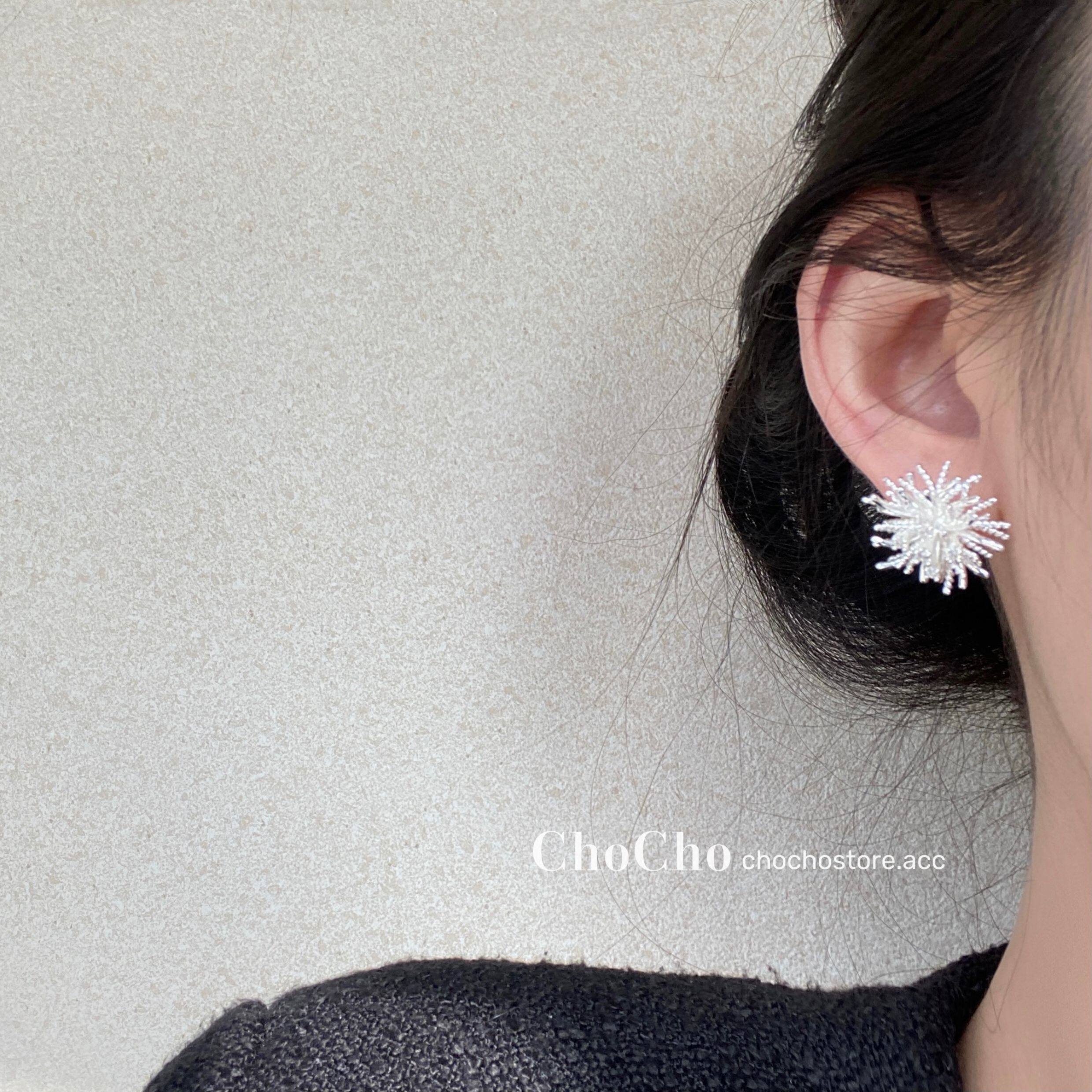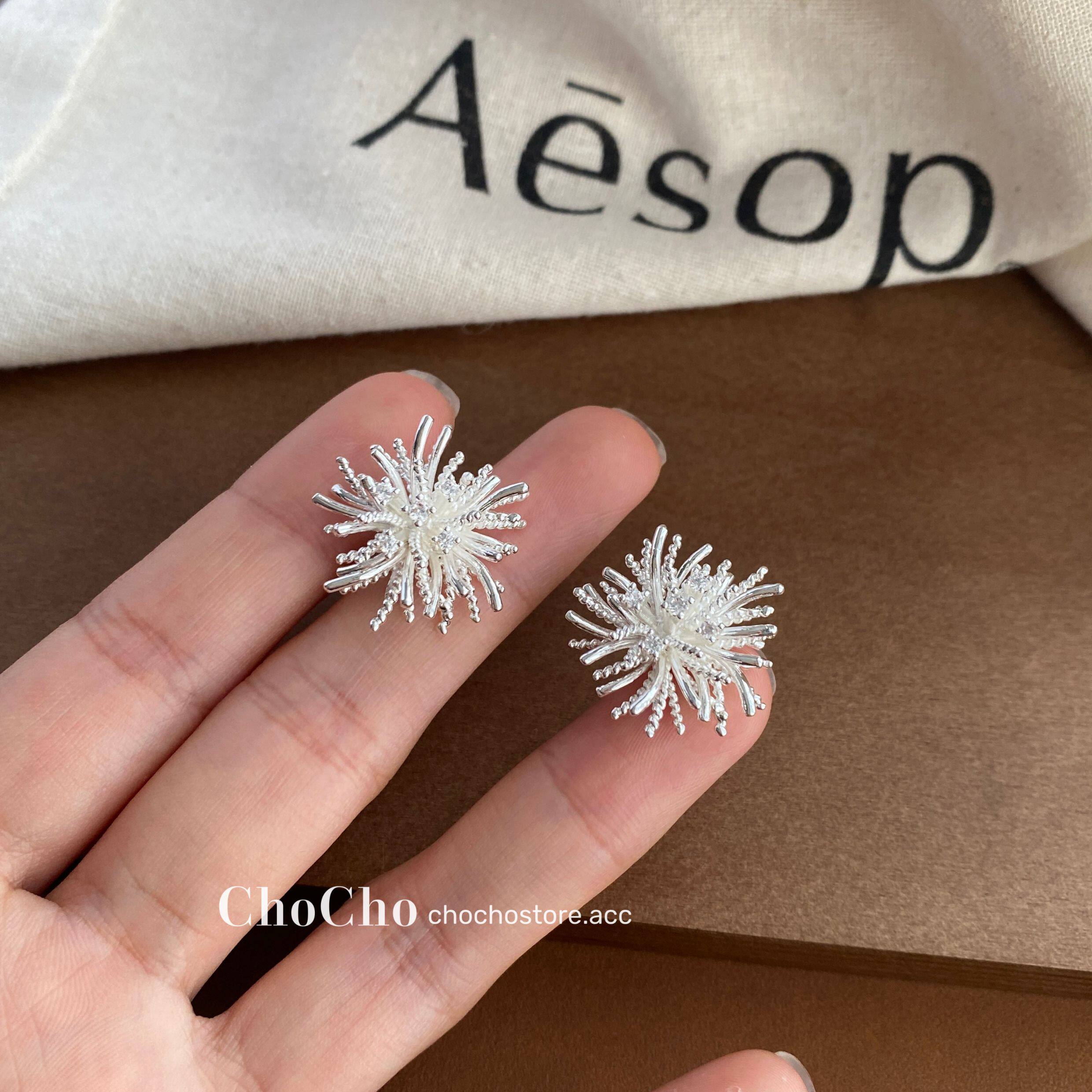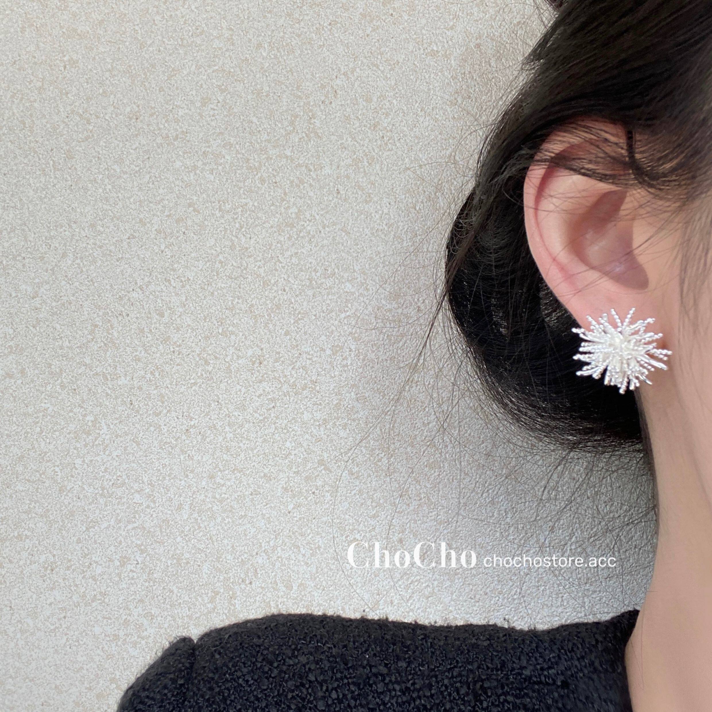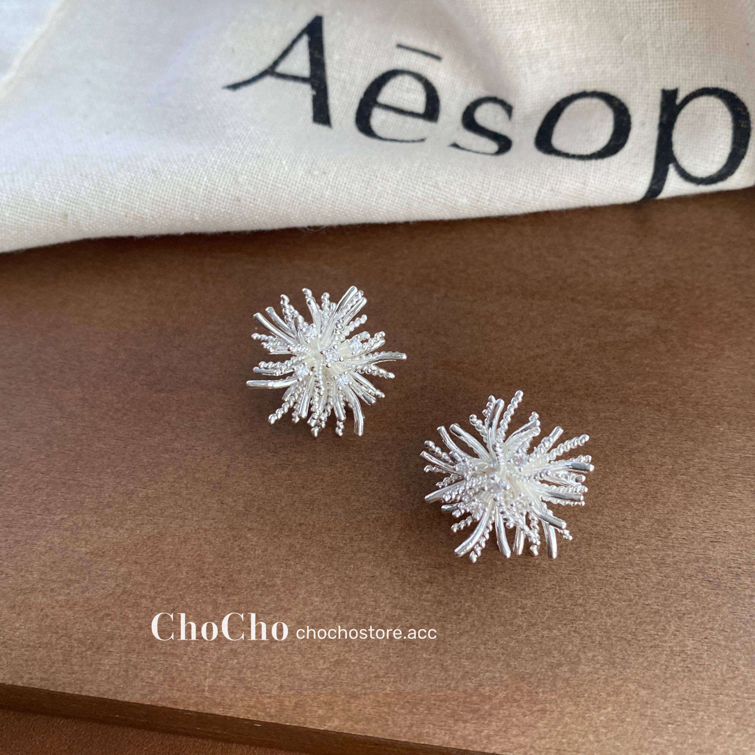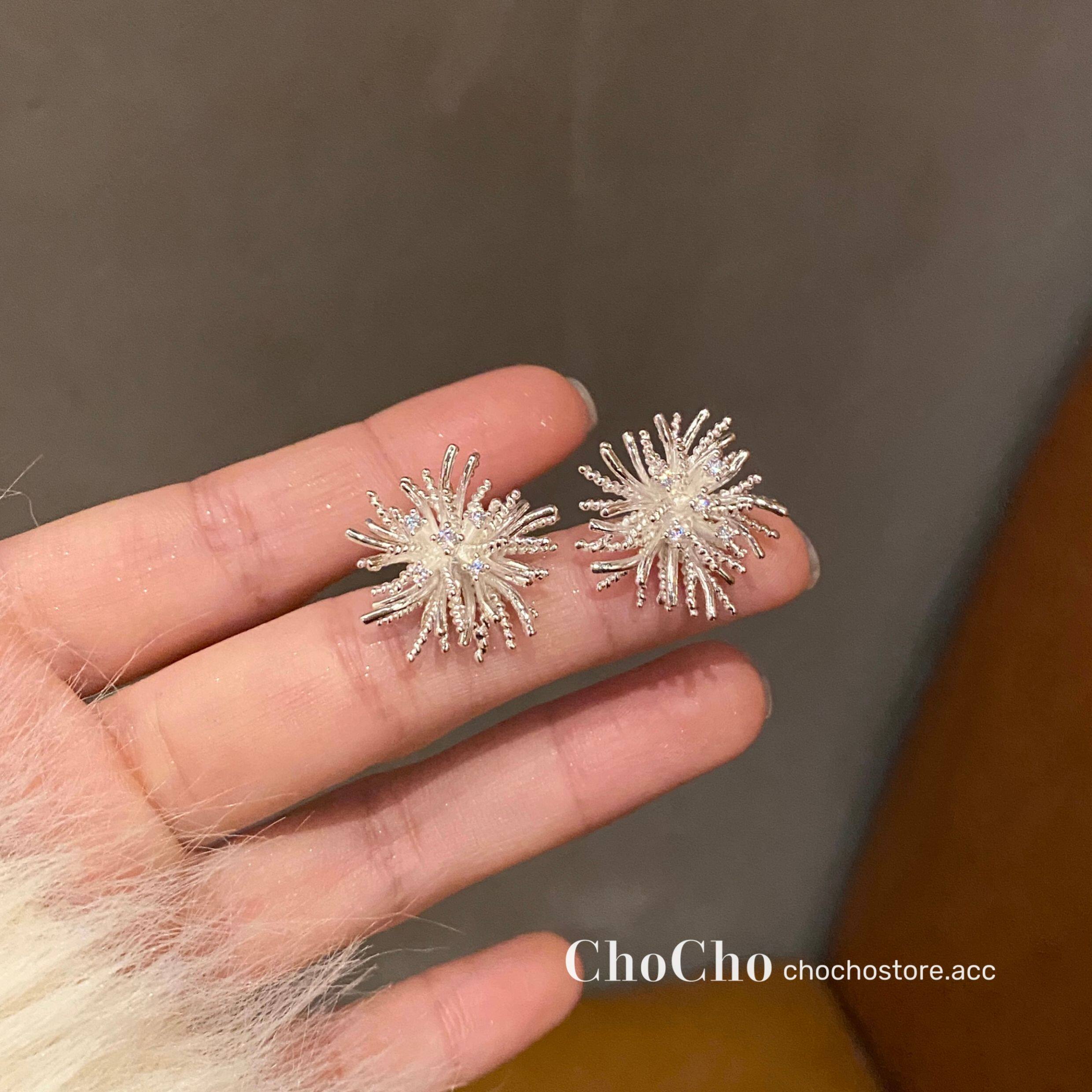 chocho/銀霜落 韓系精緻鋯石花朵耳釘高級感獨特設計感耳環耳飾女
