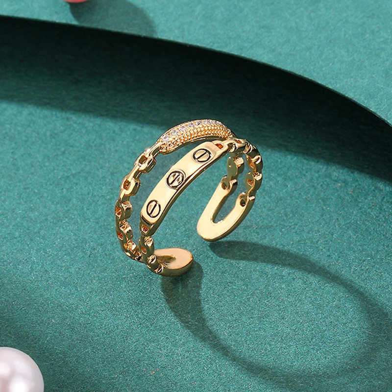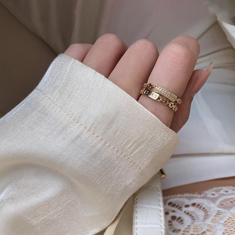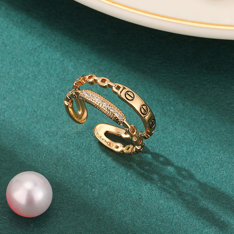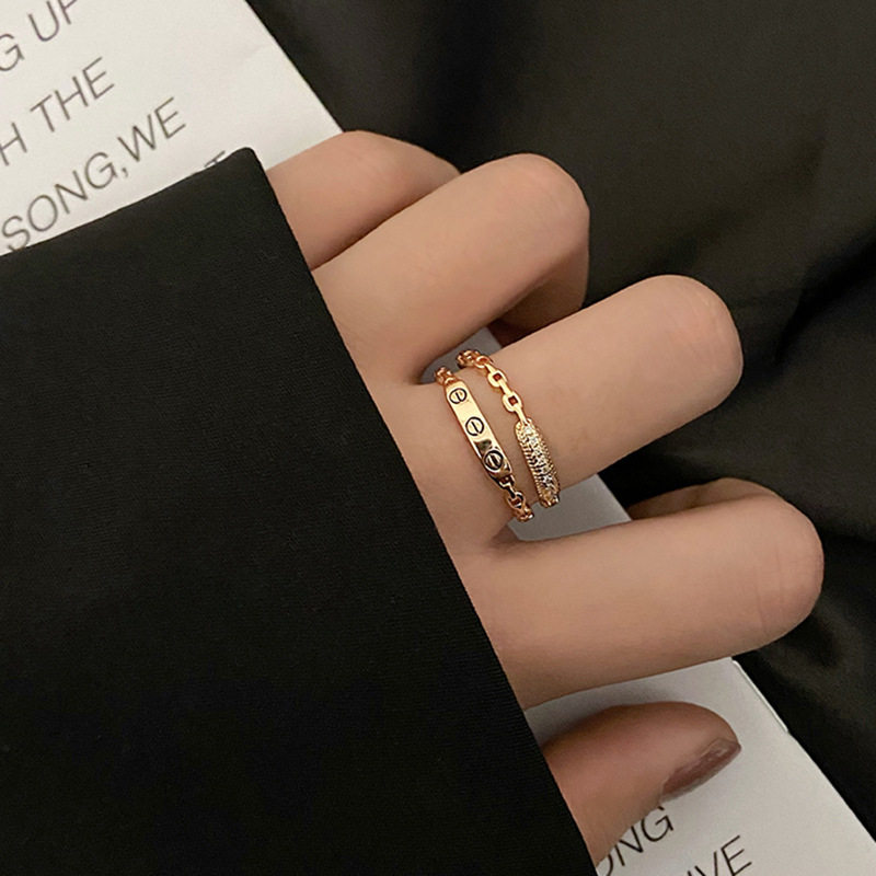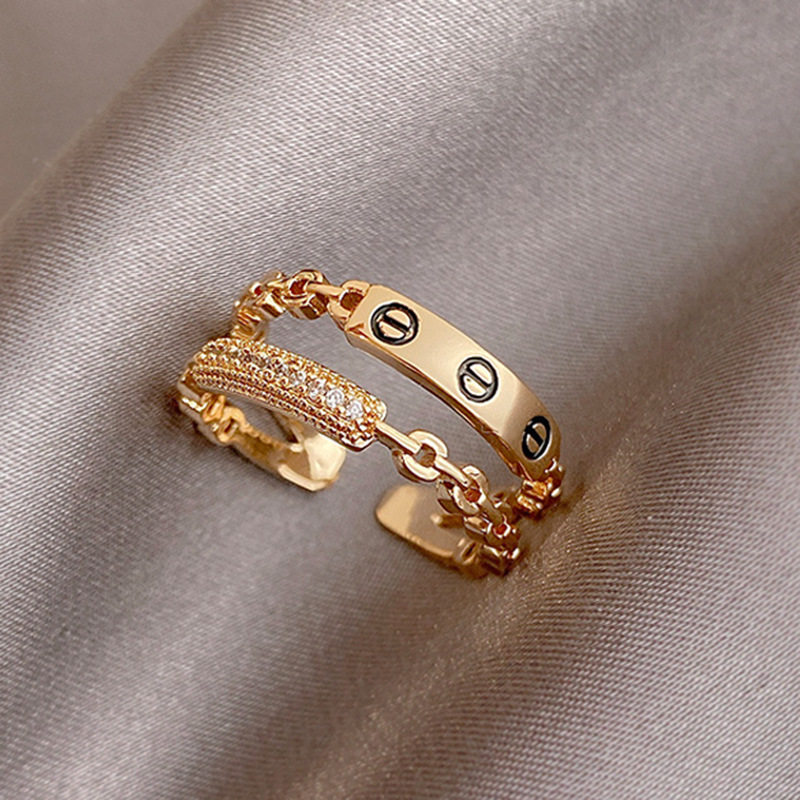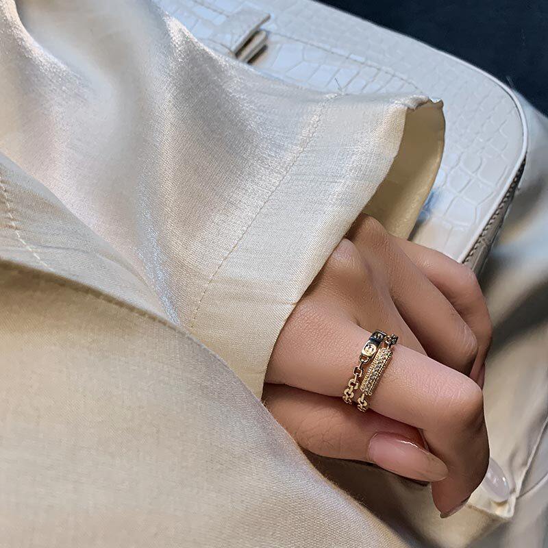微鑲鋯石開口戒個性鏈條雙層戒指女高級感時尚指環韓版個性女禮物
