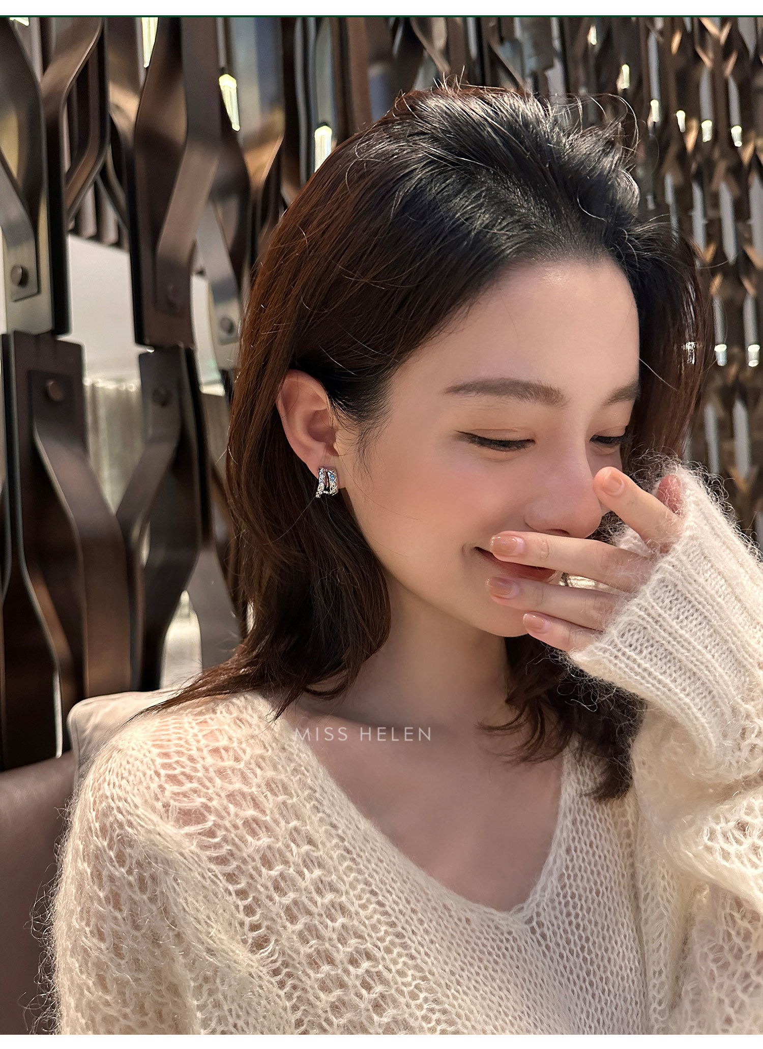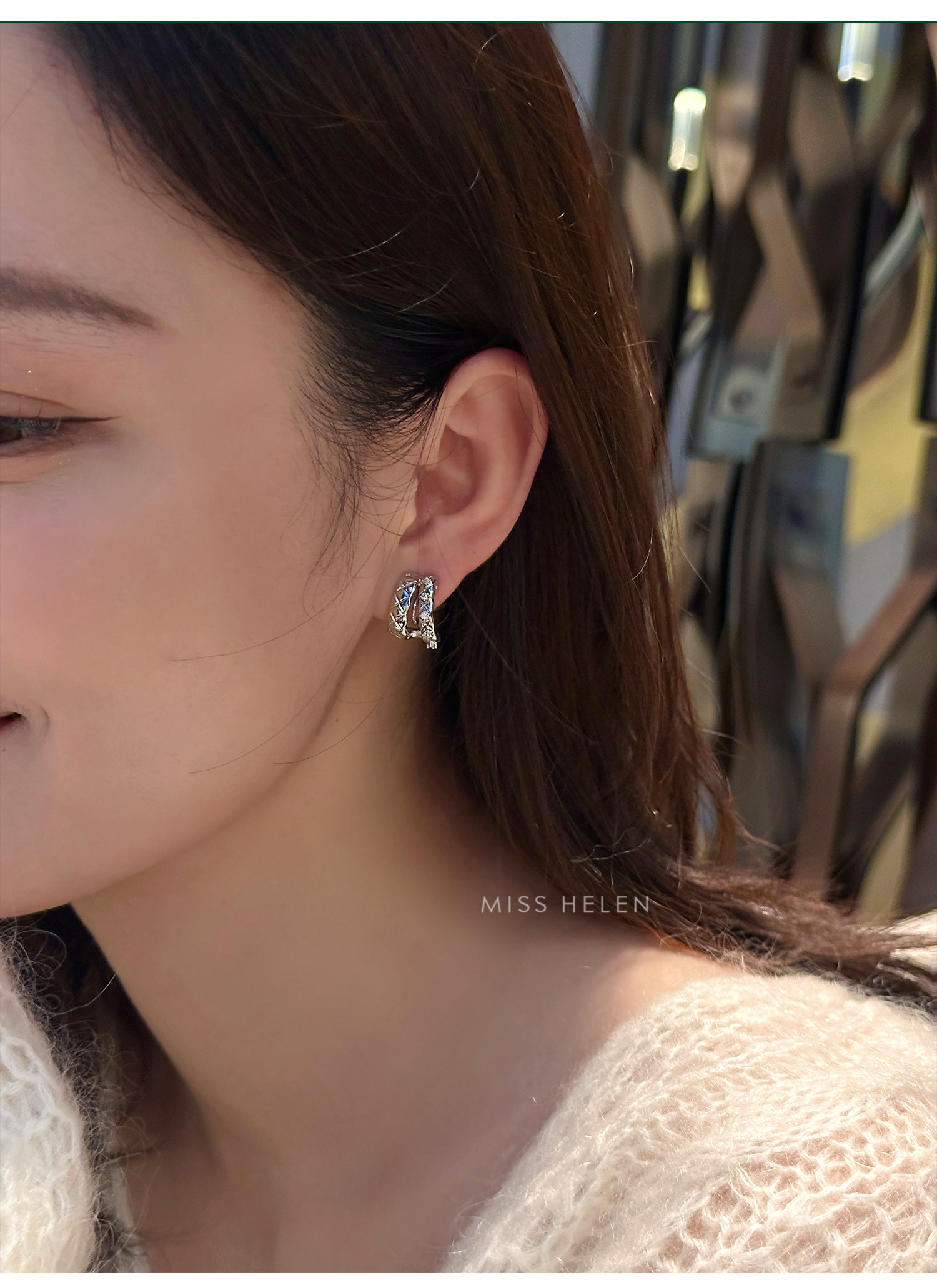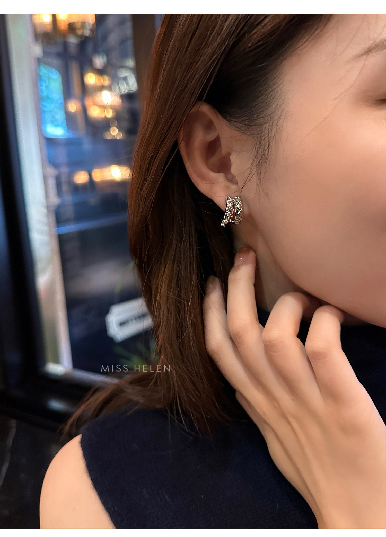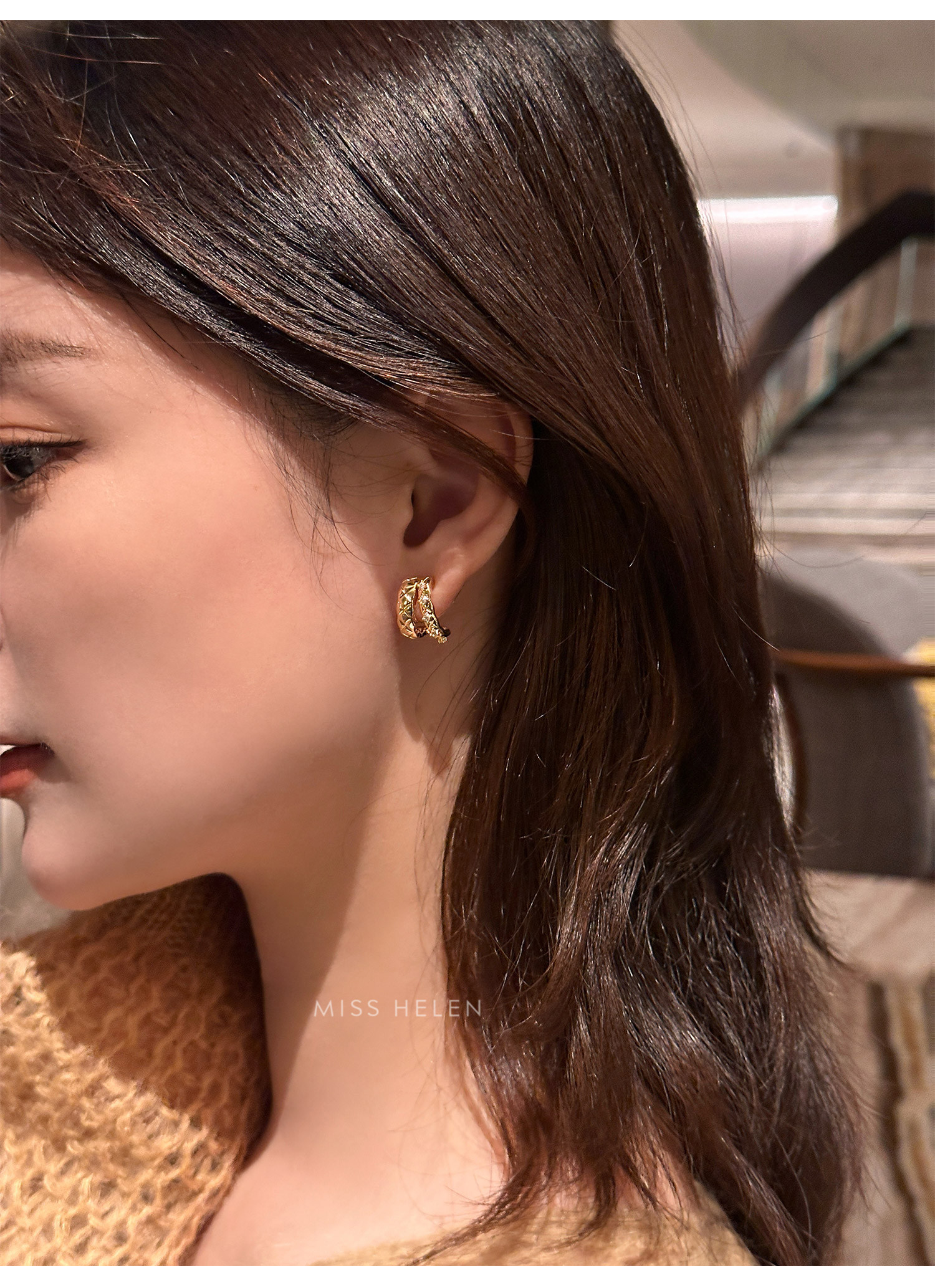 MISS HELEN「香風菱格」金屬風質感耳夾女小衆耳飾耳釘無耳洞耳環