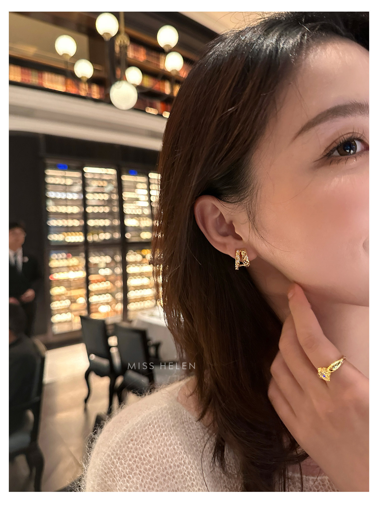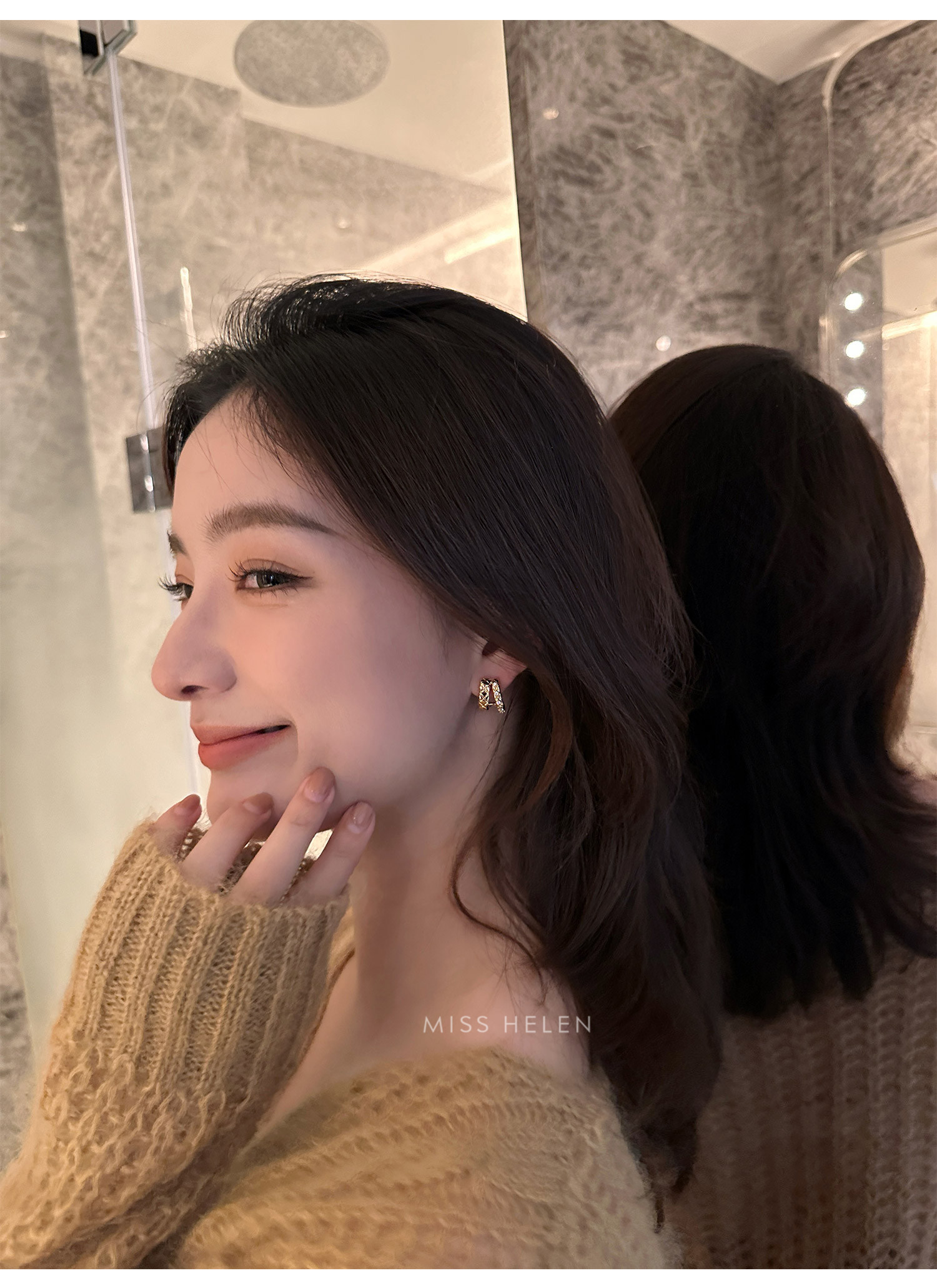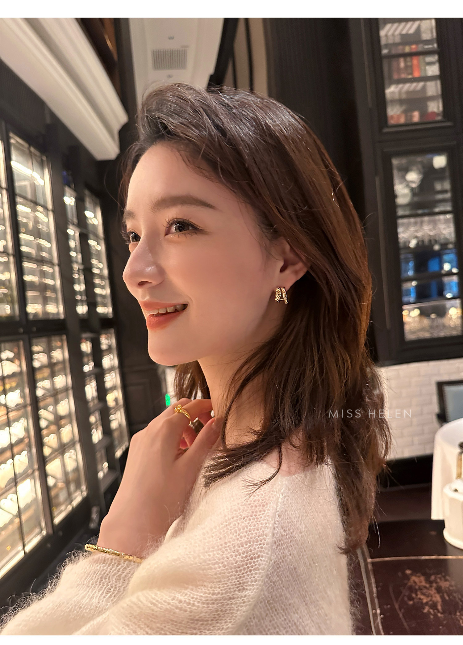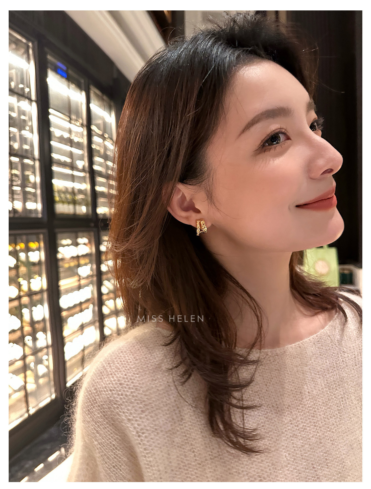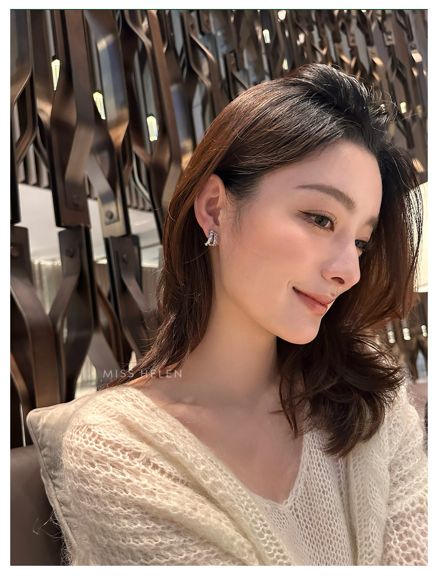 MISS HELEN「香風菱格」金屬風質感耳夾女小衆耳飾耳釘無耳洞耳環