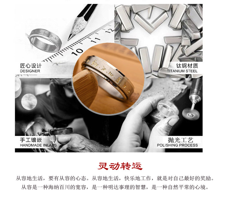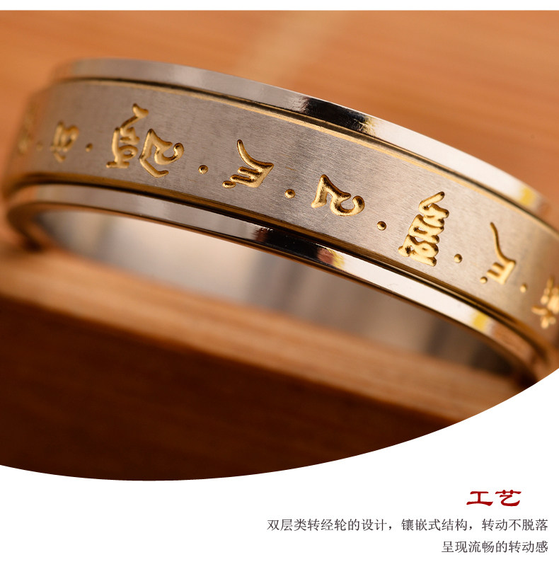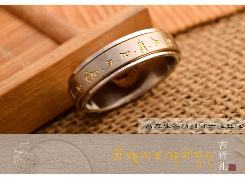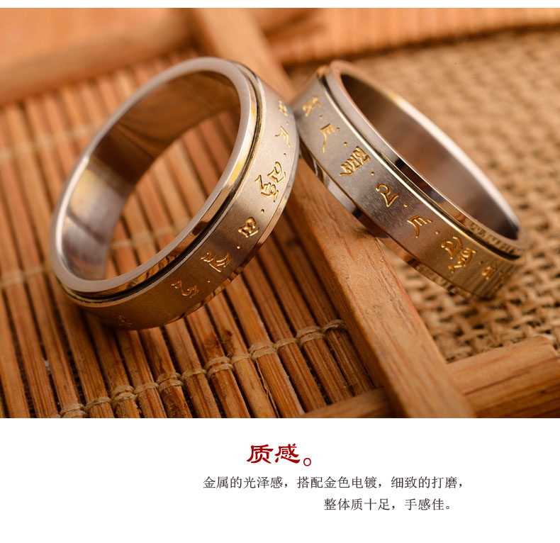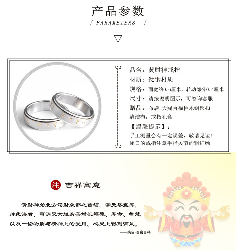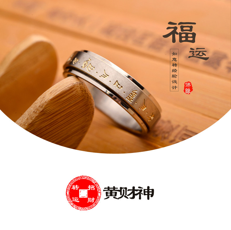 鈦鋼指環男女士偏財聚財復古黃財神招財轉運戒指高級感可轉動戒子
