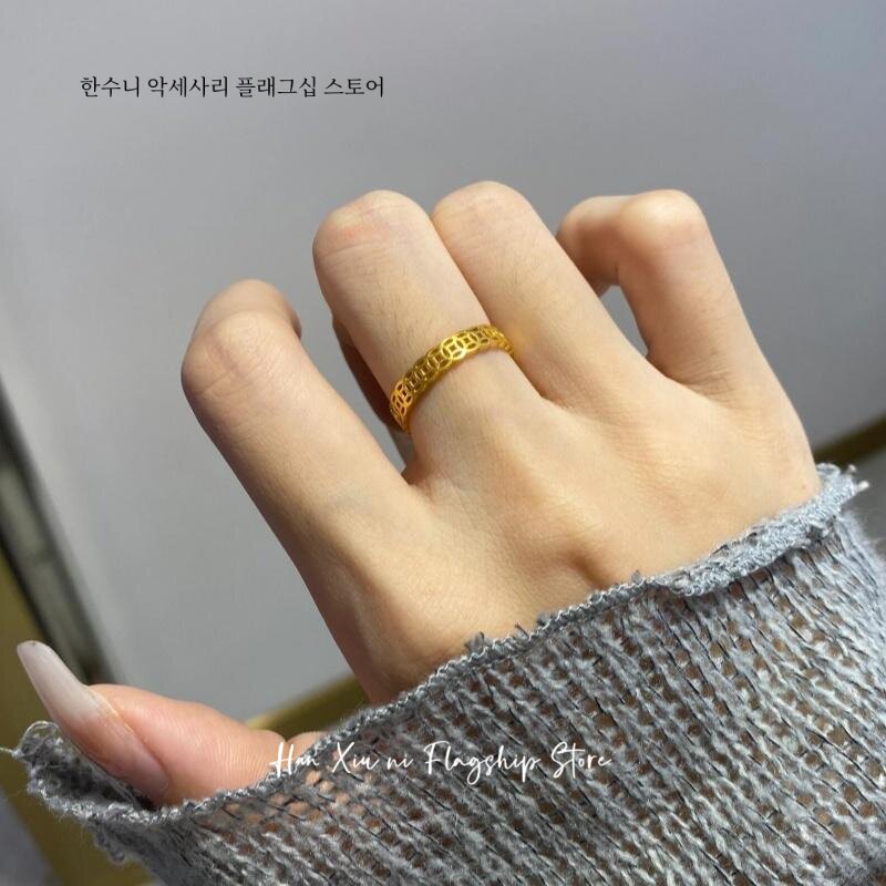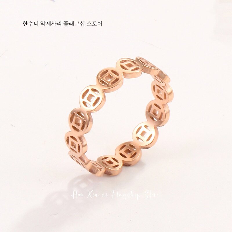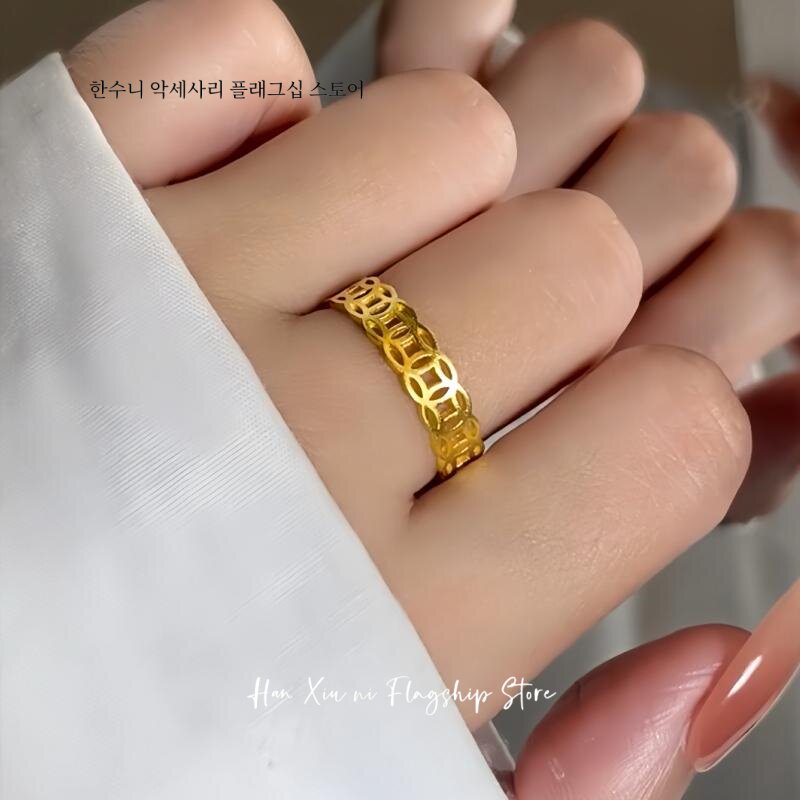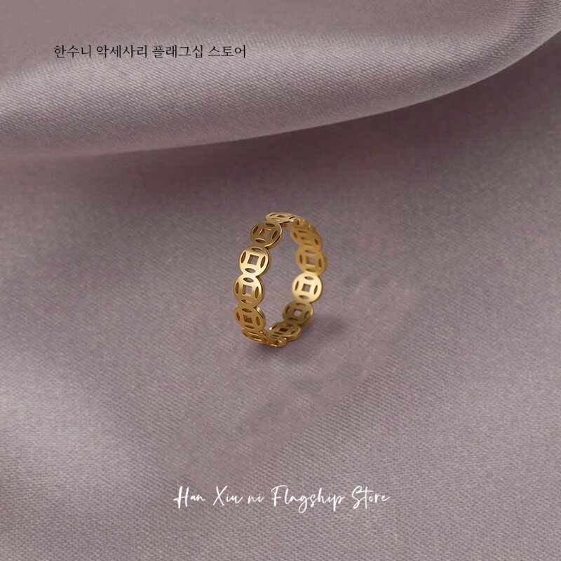銅錢戒指鈦鋼不掉色錢多多素圈戒指旺財偏財戒指男士女士招財轉運