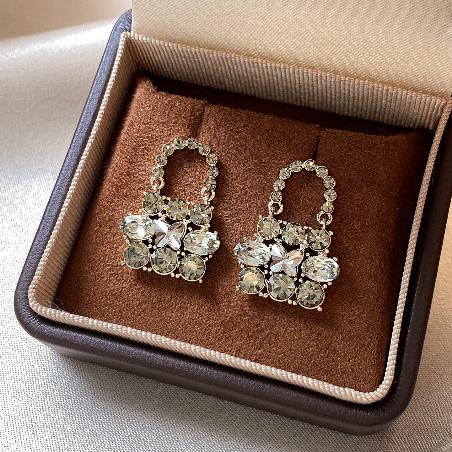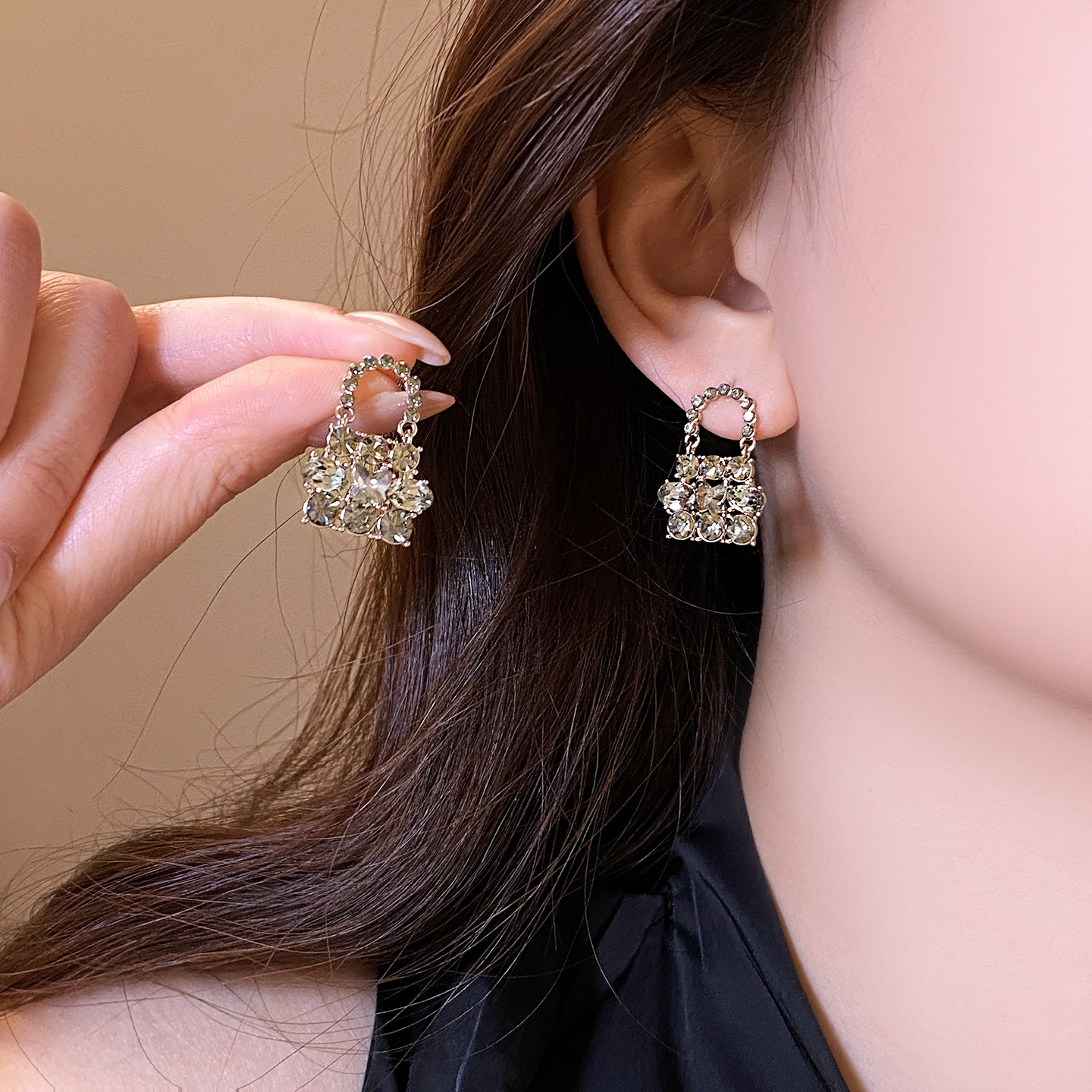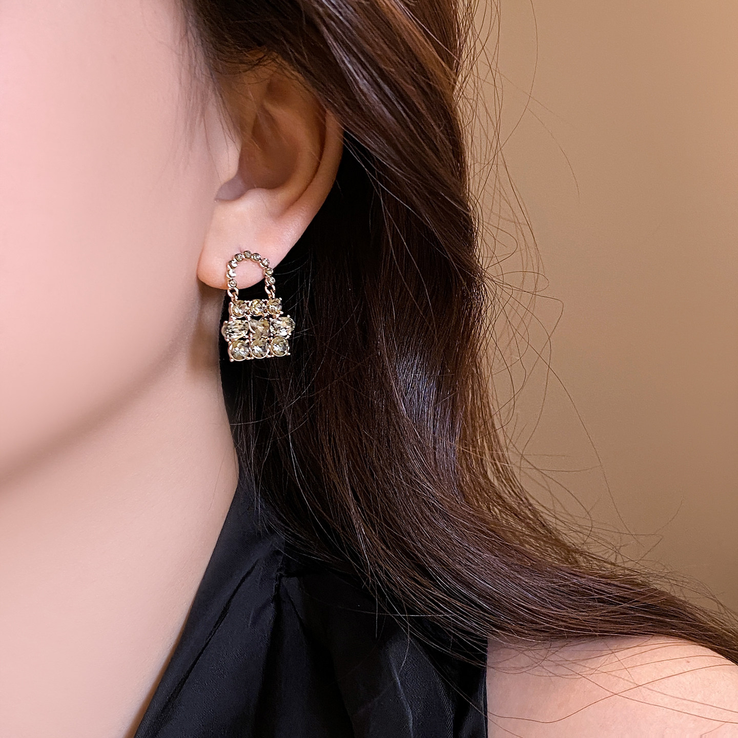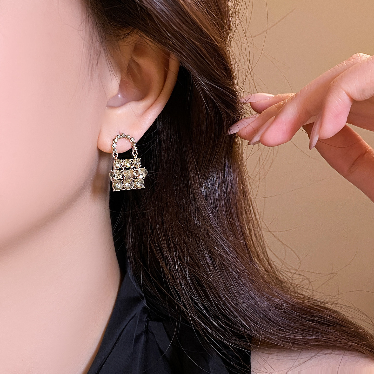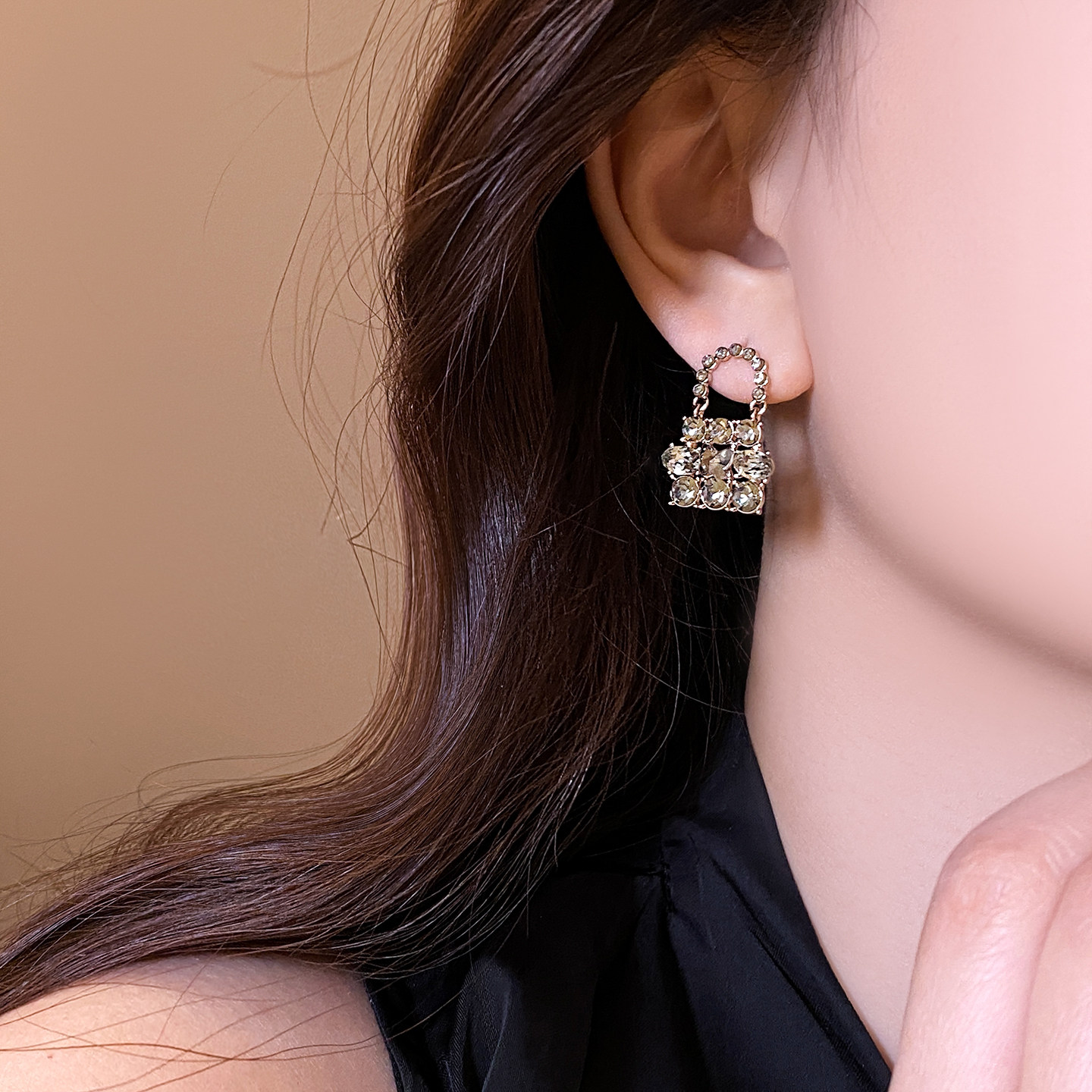茶色鋯石包包耳環女春2026新款巨好看耳飾輕奢高級感獨特漂亮耳釘