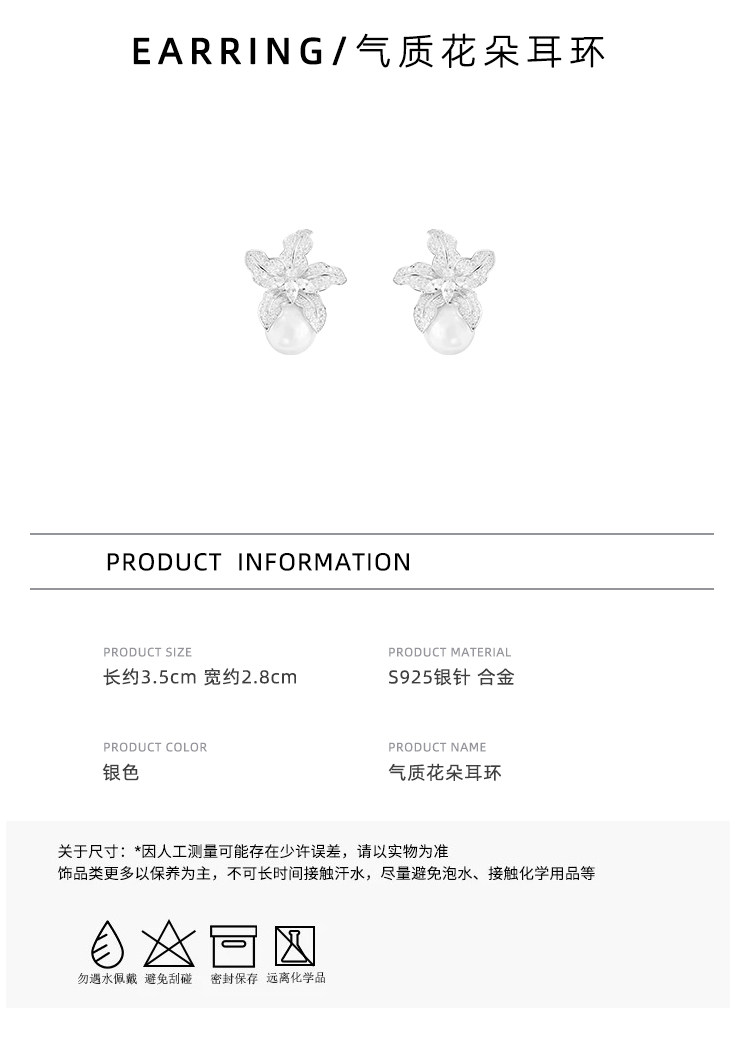 氣質花朵珍珠款耳環2026新款爆款高級感耳釘女巨好看大氣耳墜耳飾