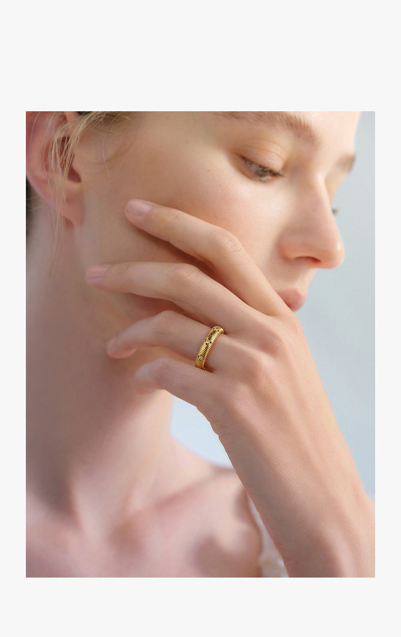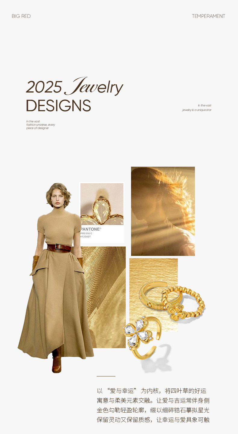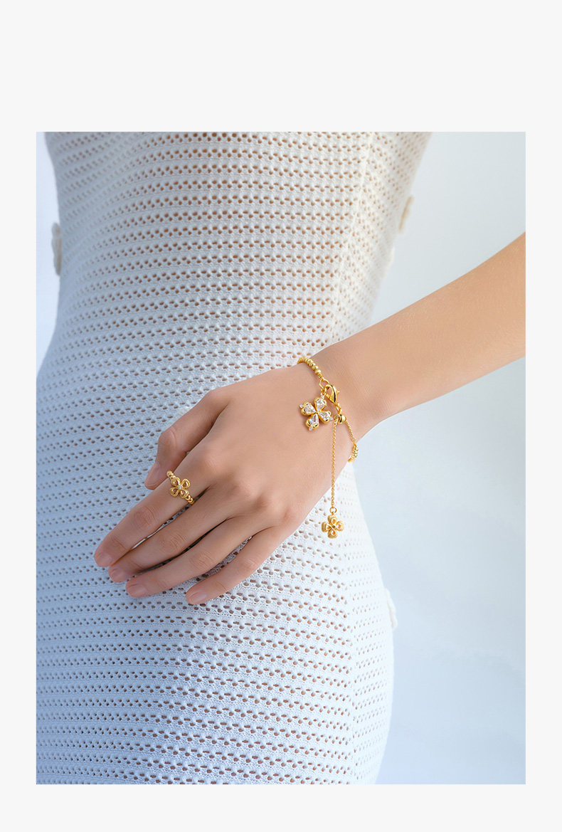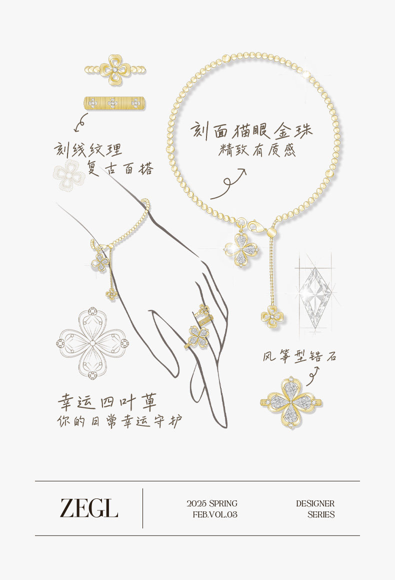 ZEGL幸運光跡系列金色四葉草戒指輕奢高級感復古指環秋冬曡戴套戒