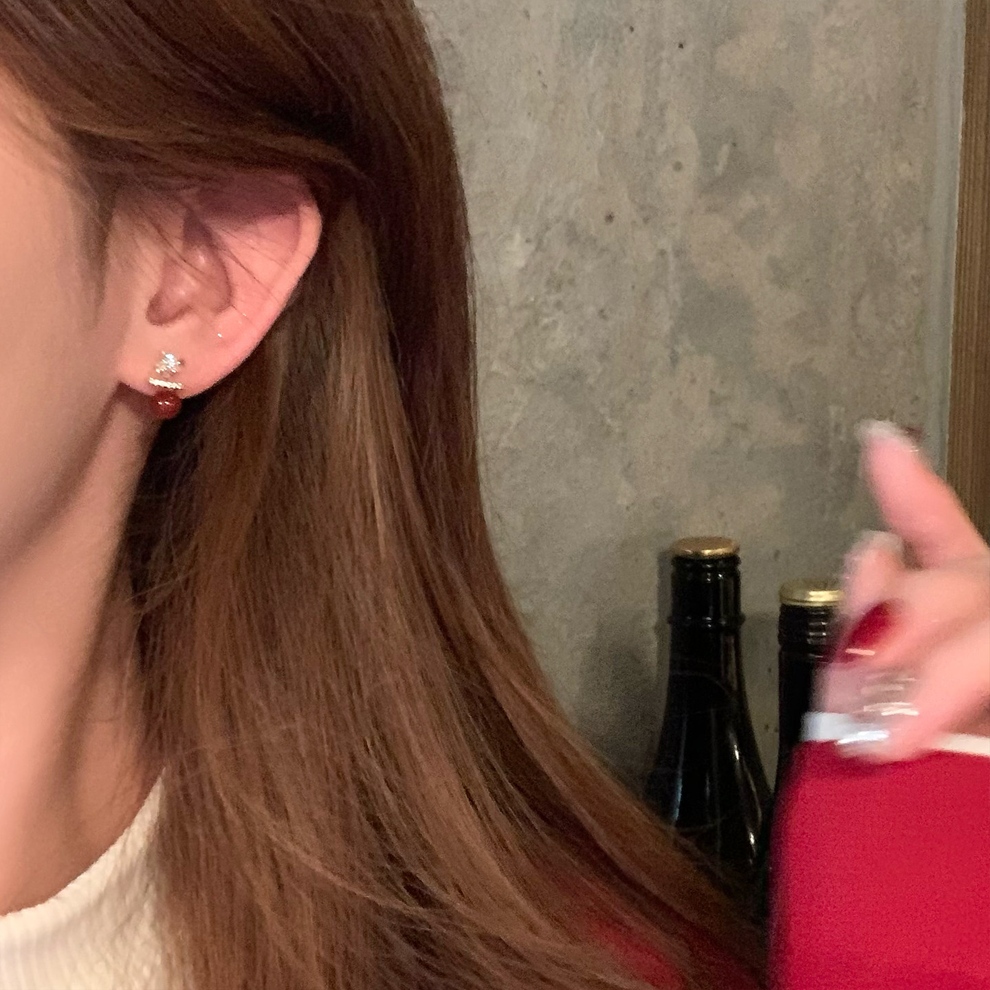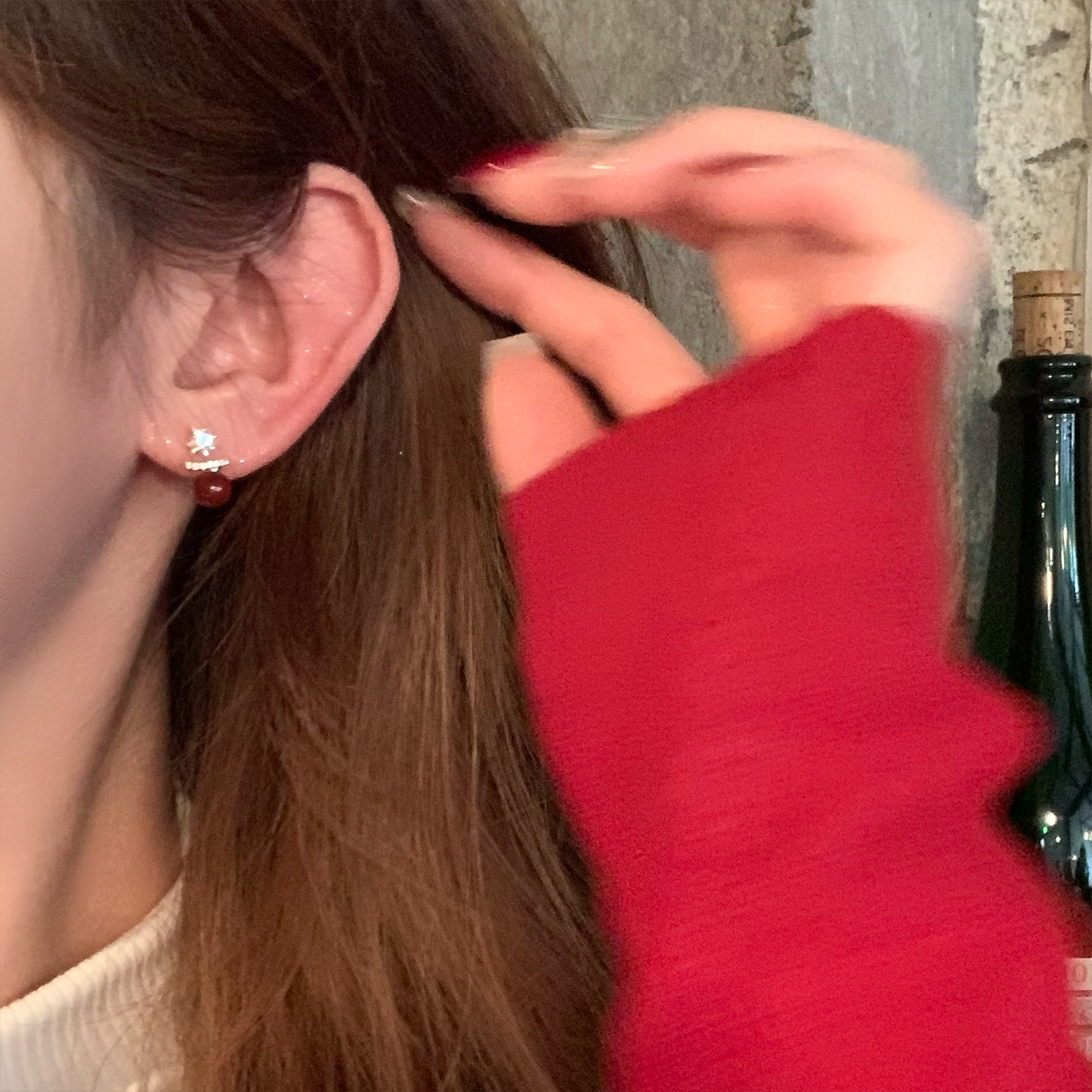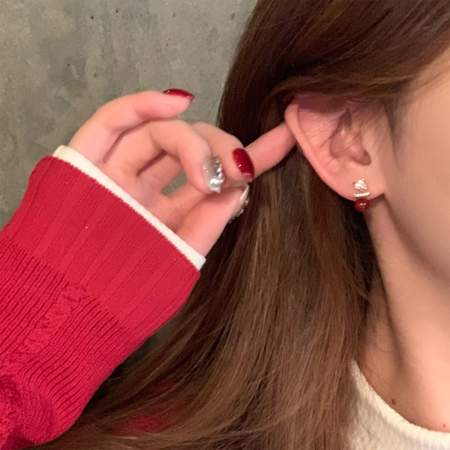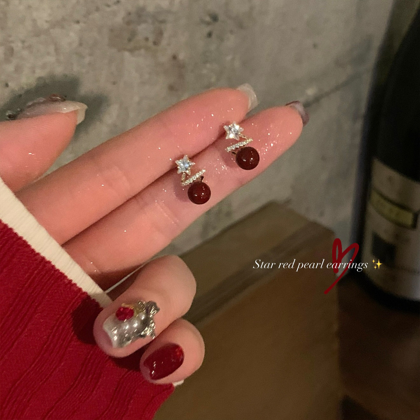 復古紅色珍珠閃鋯星星耳釘女輕奢高級感獨特漂亮耳環小衆設計耳飾