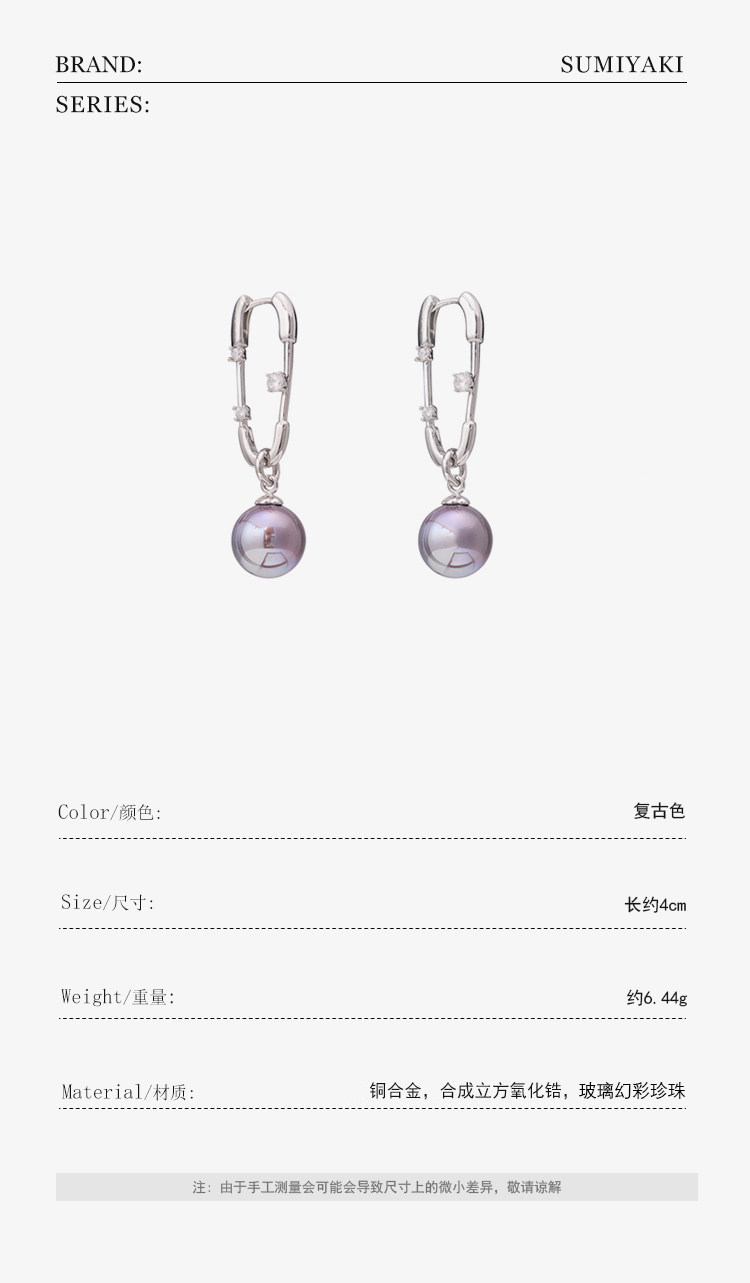 SUMIYAKI 鑲鑽廻形針正圓黑珍珠耳環耳墜耳釘