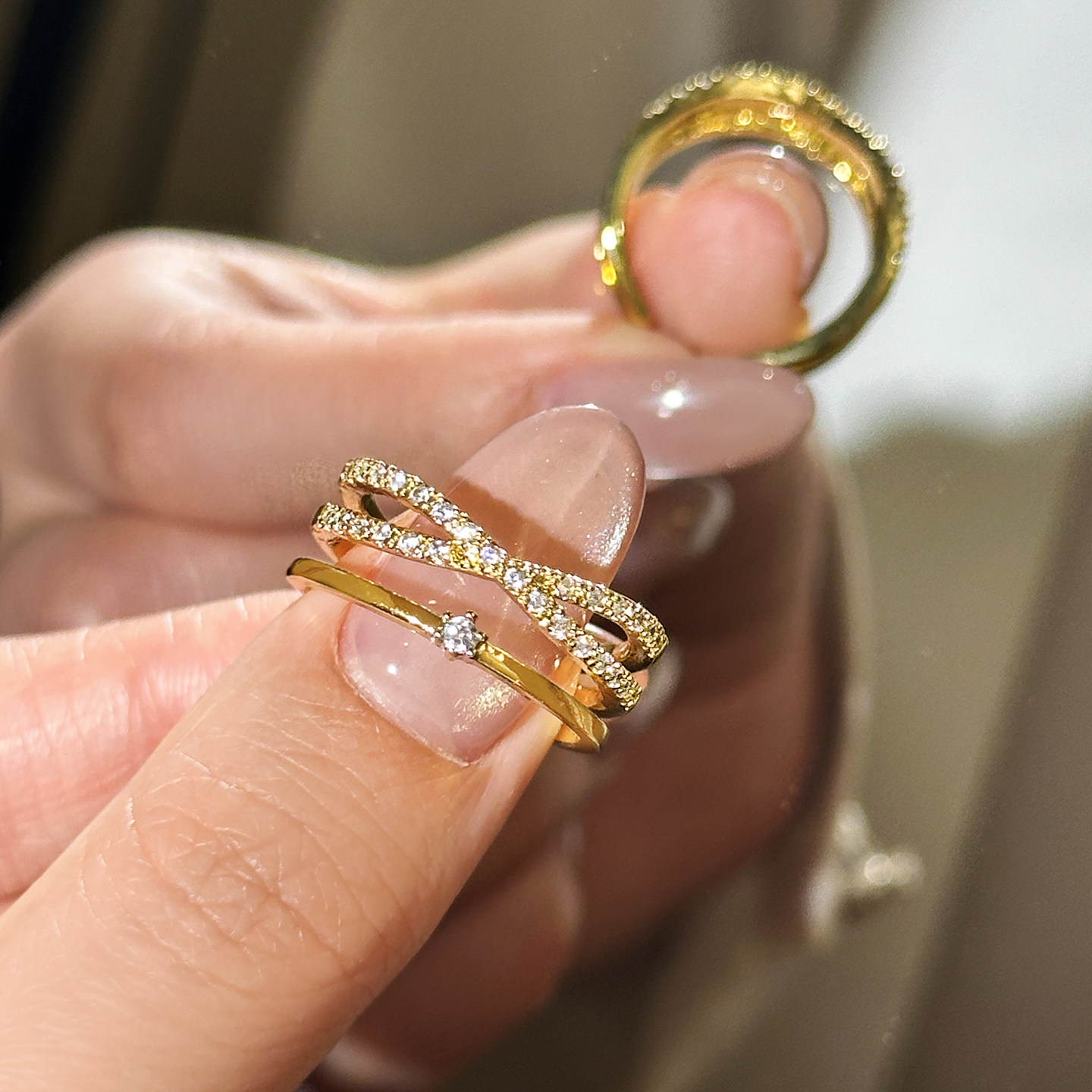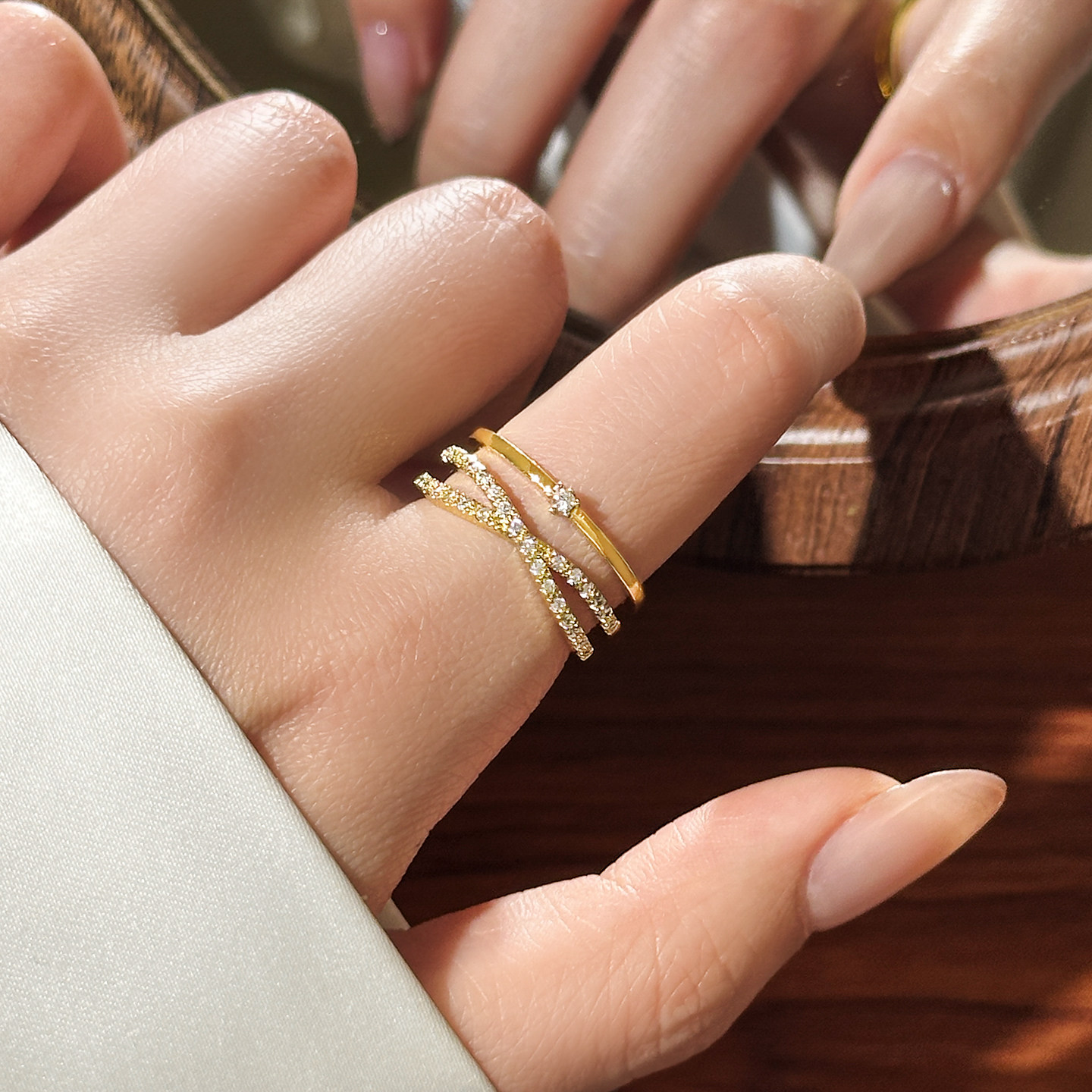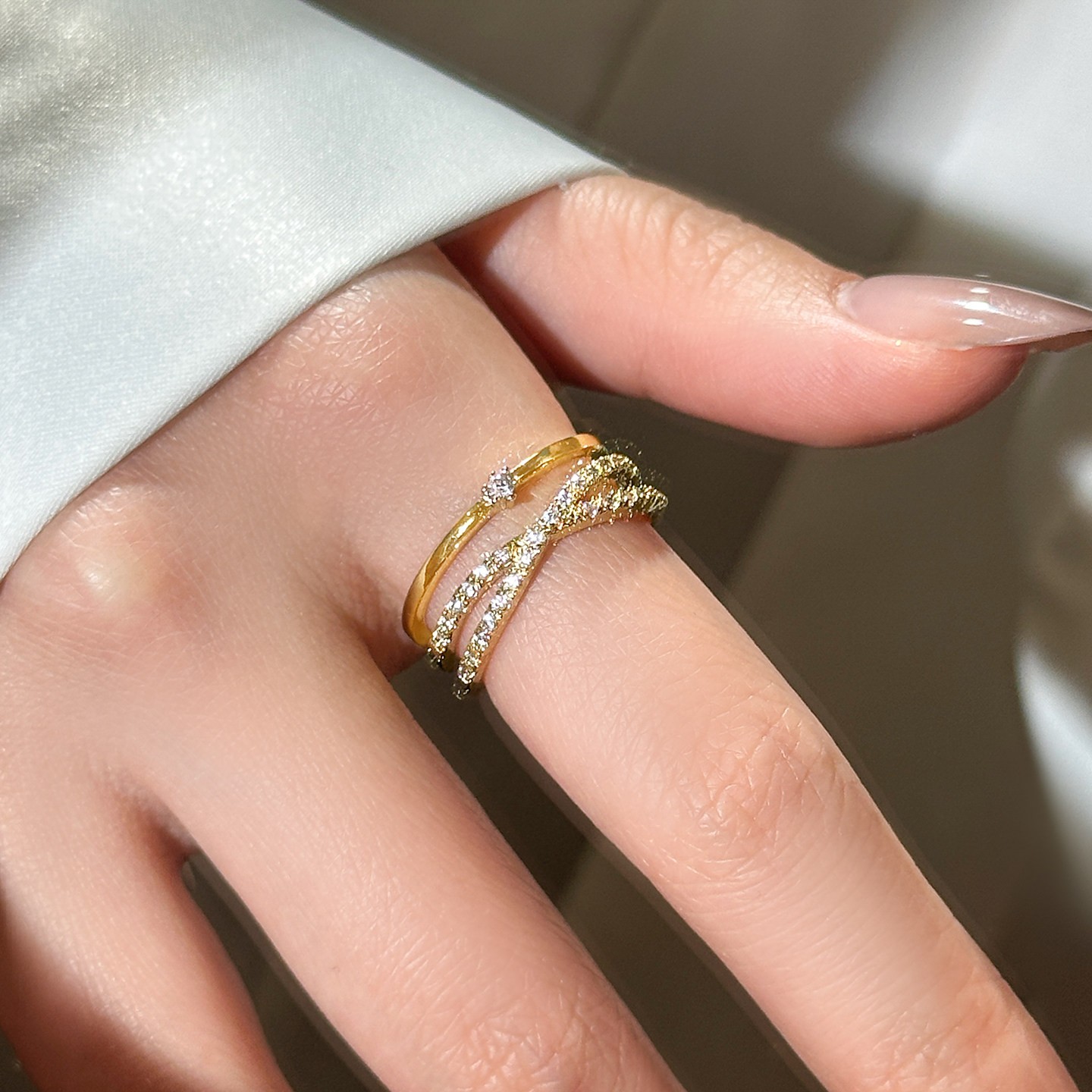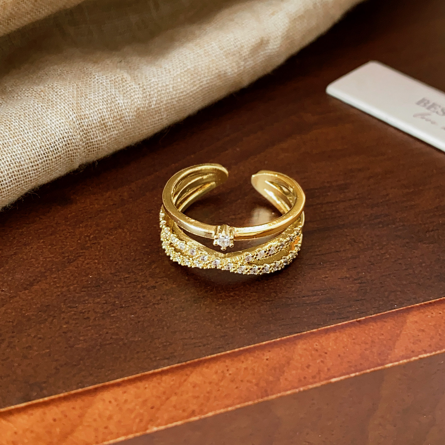 金色滿鑽多層交叉開口戒指女輕奢高級感2026新款爆款小衆設計指環
