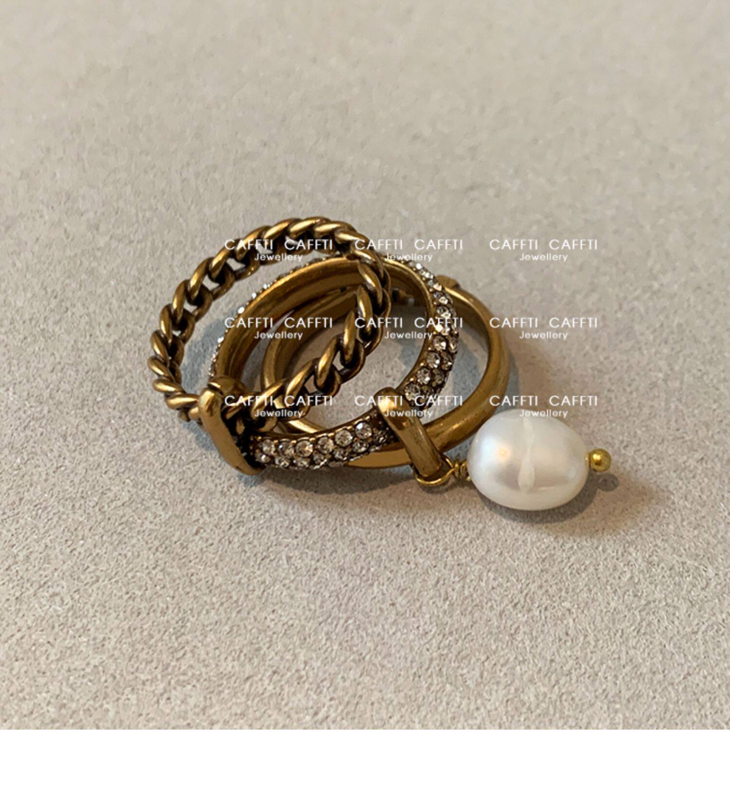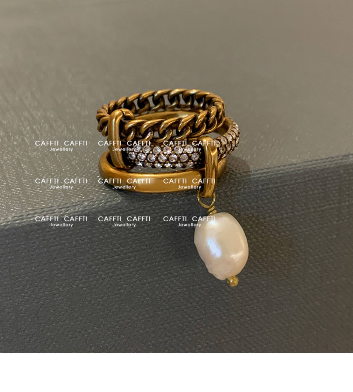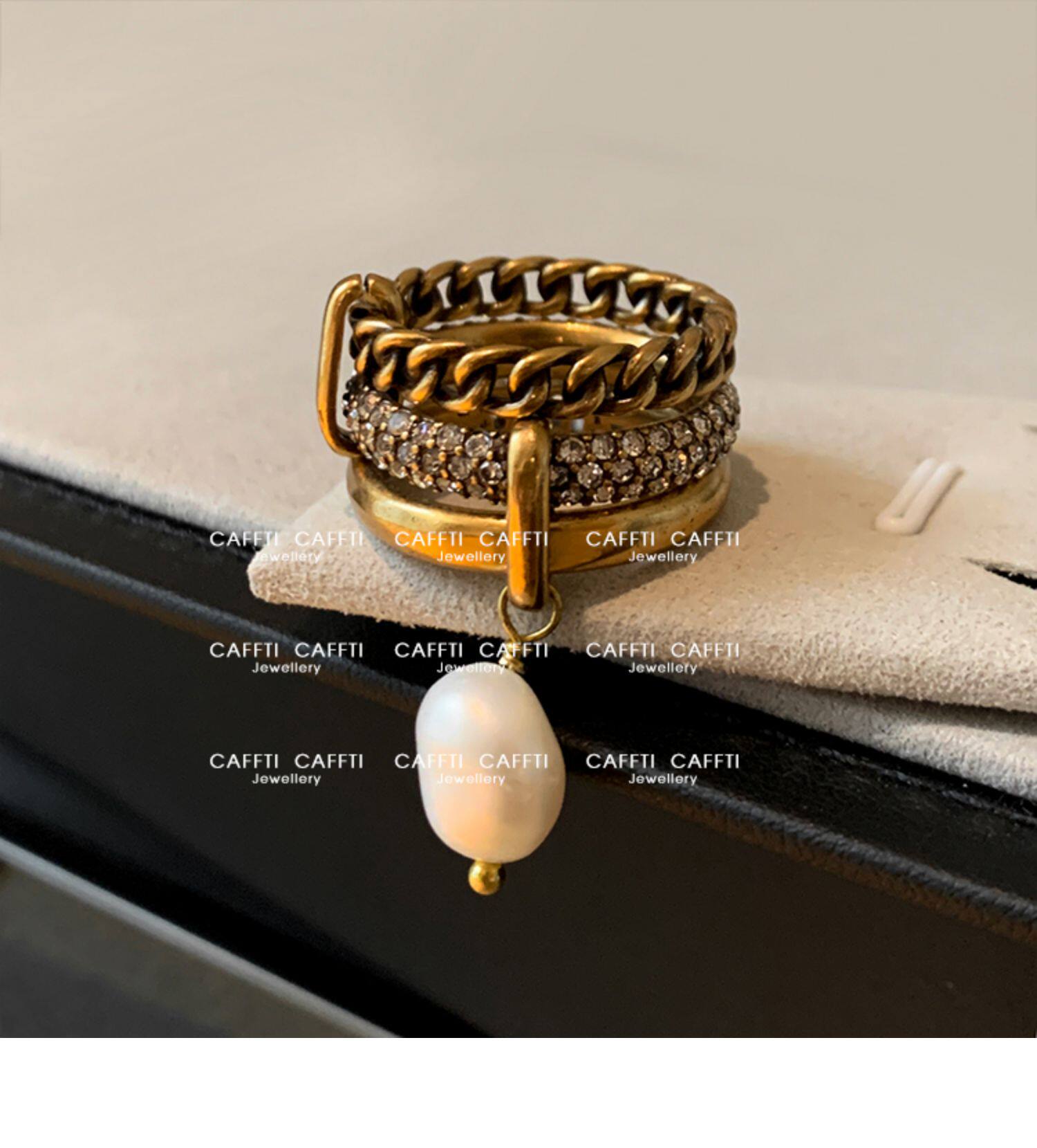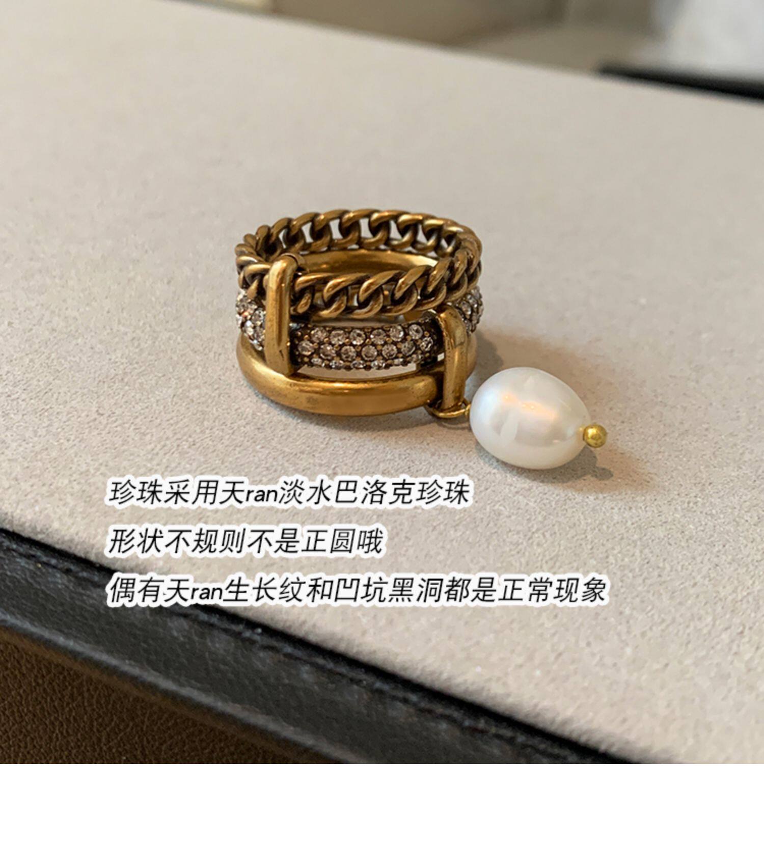 歐美復古多層巴洛克珍珠戒指女小衆設計輕奢時尚個性金色食指指環
