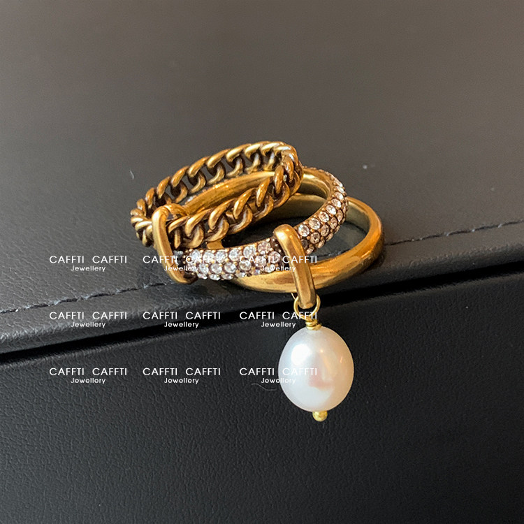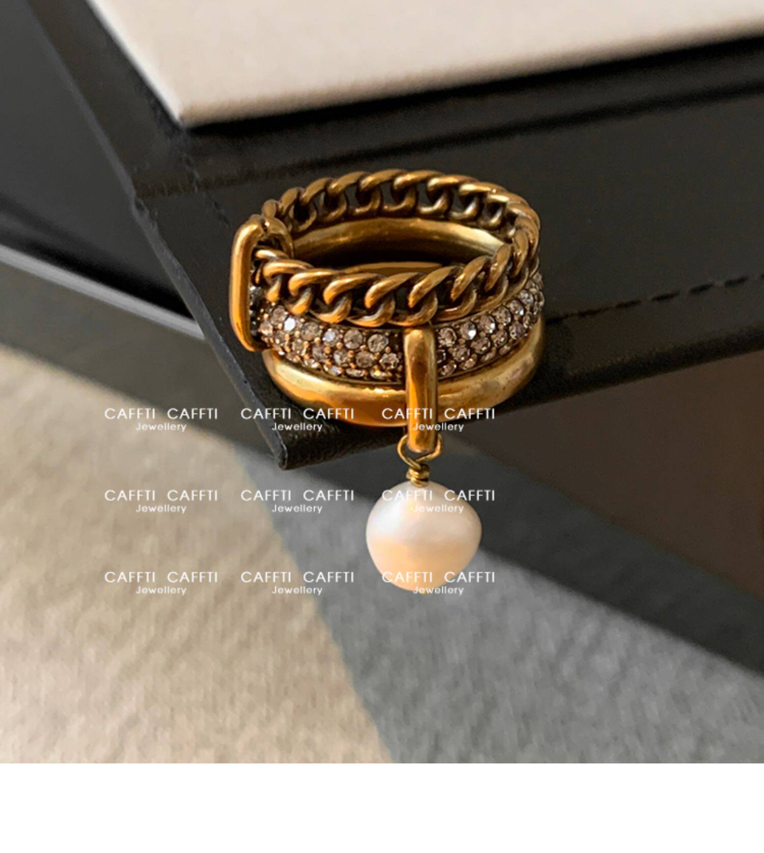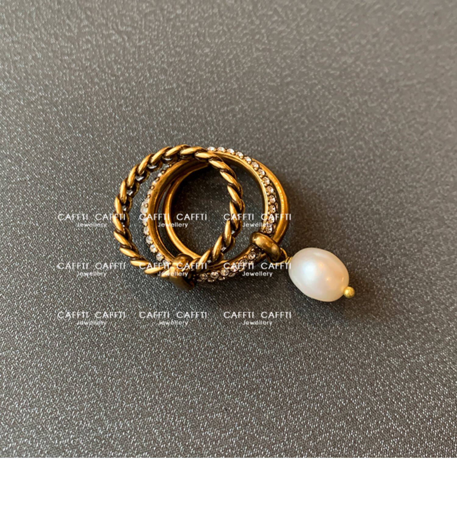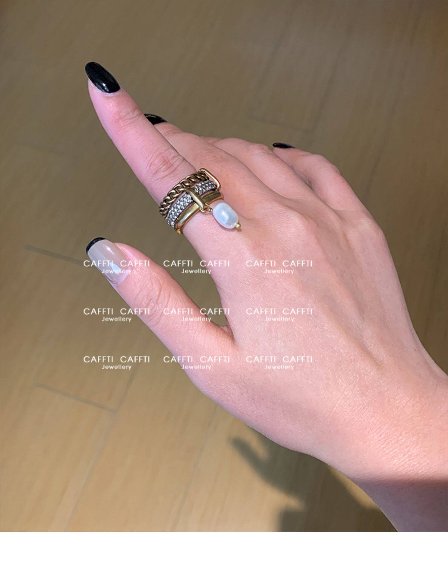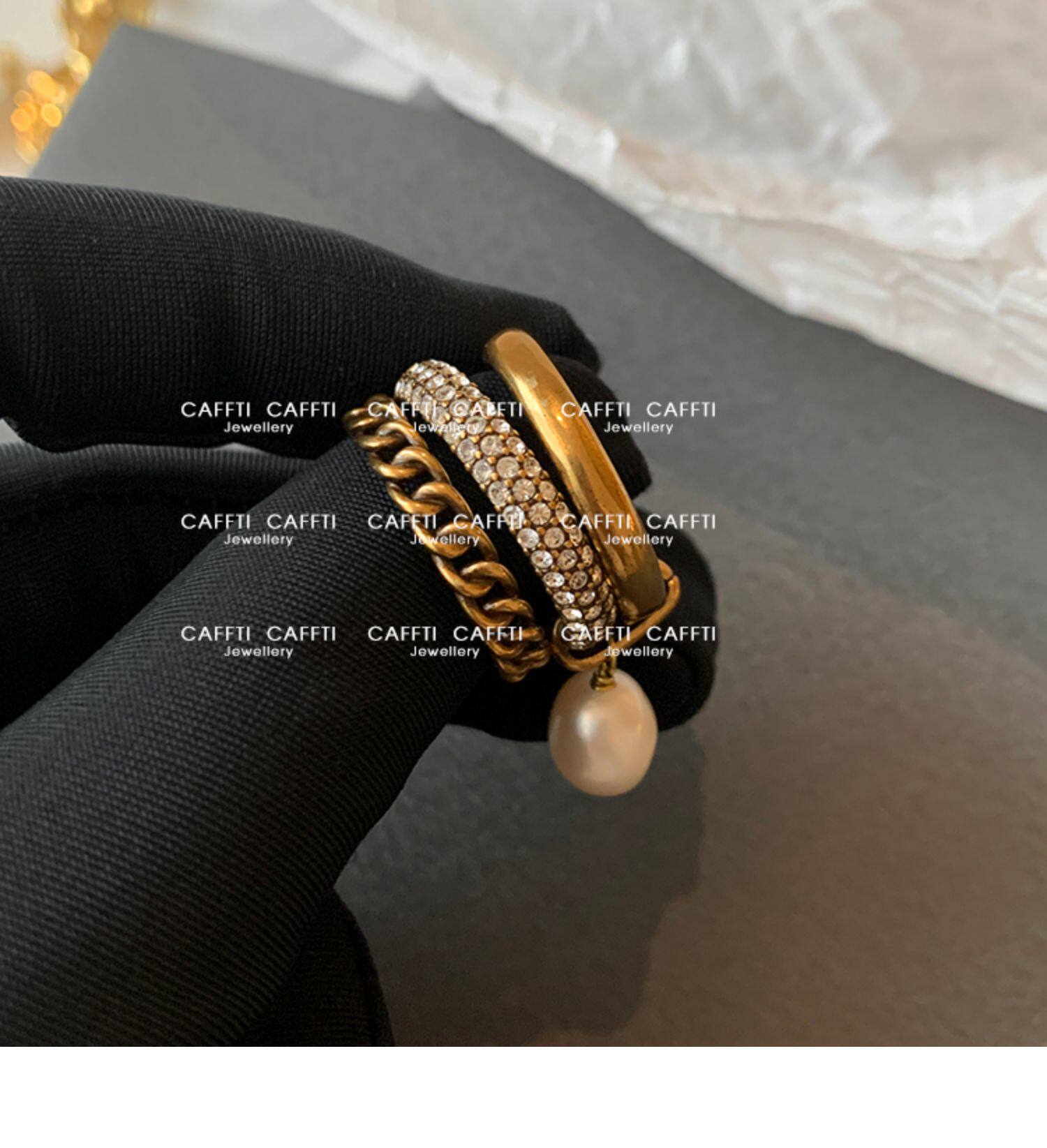 歐美復古多層巴洛克珍珠戒指女小衆設計輕奢時尚個性金色食指指環