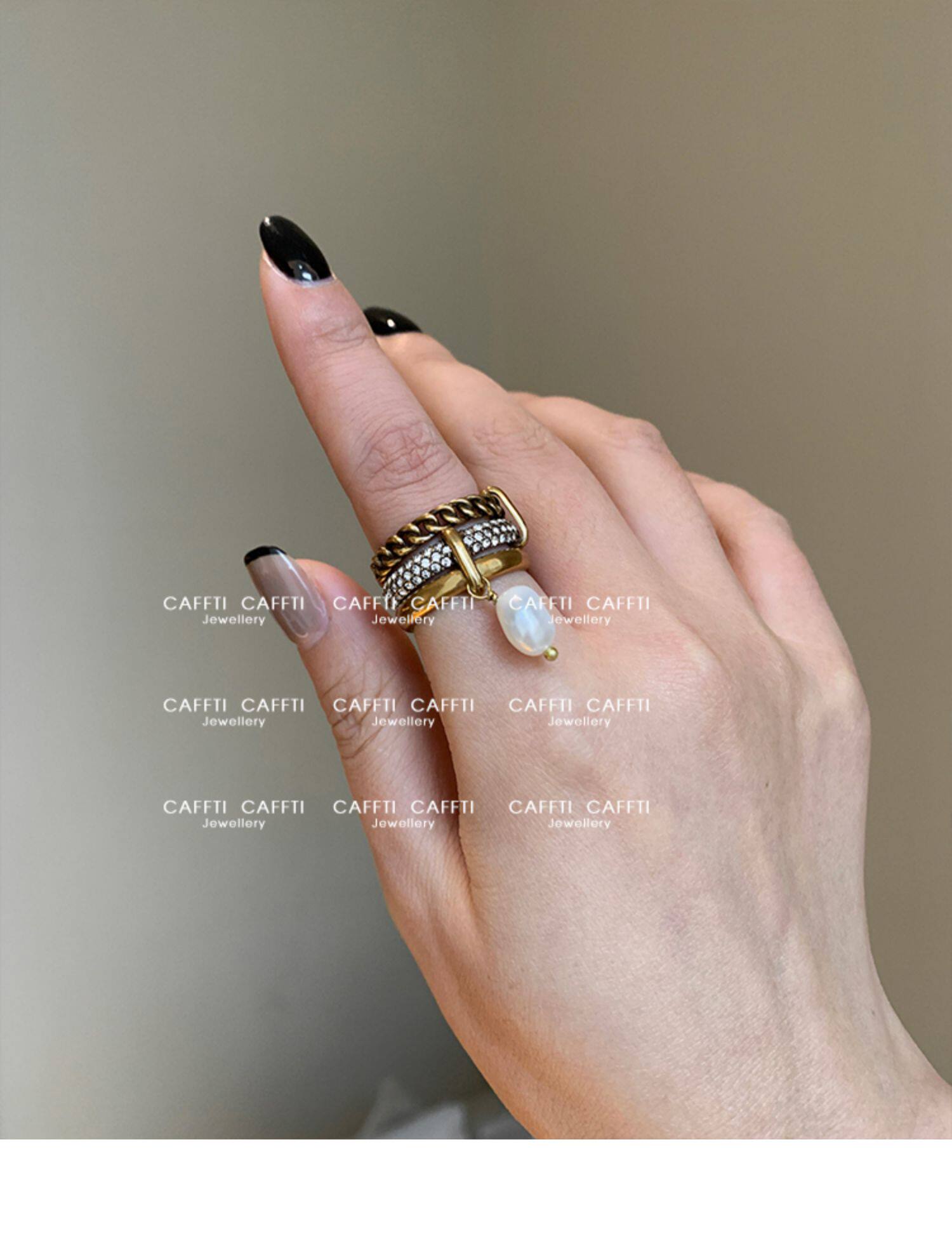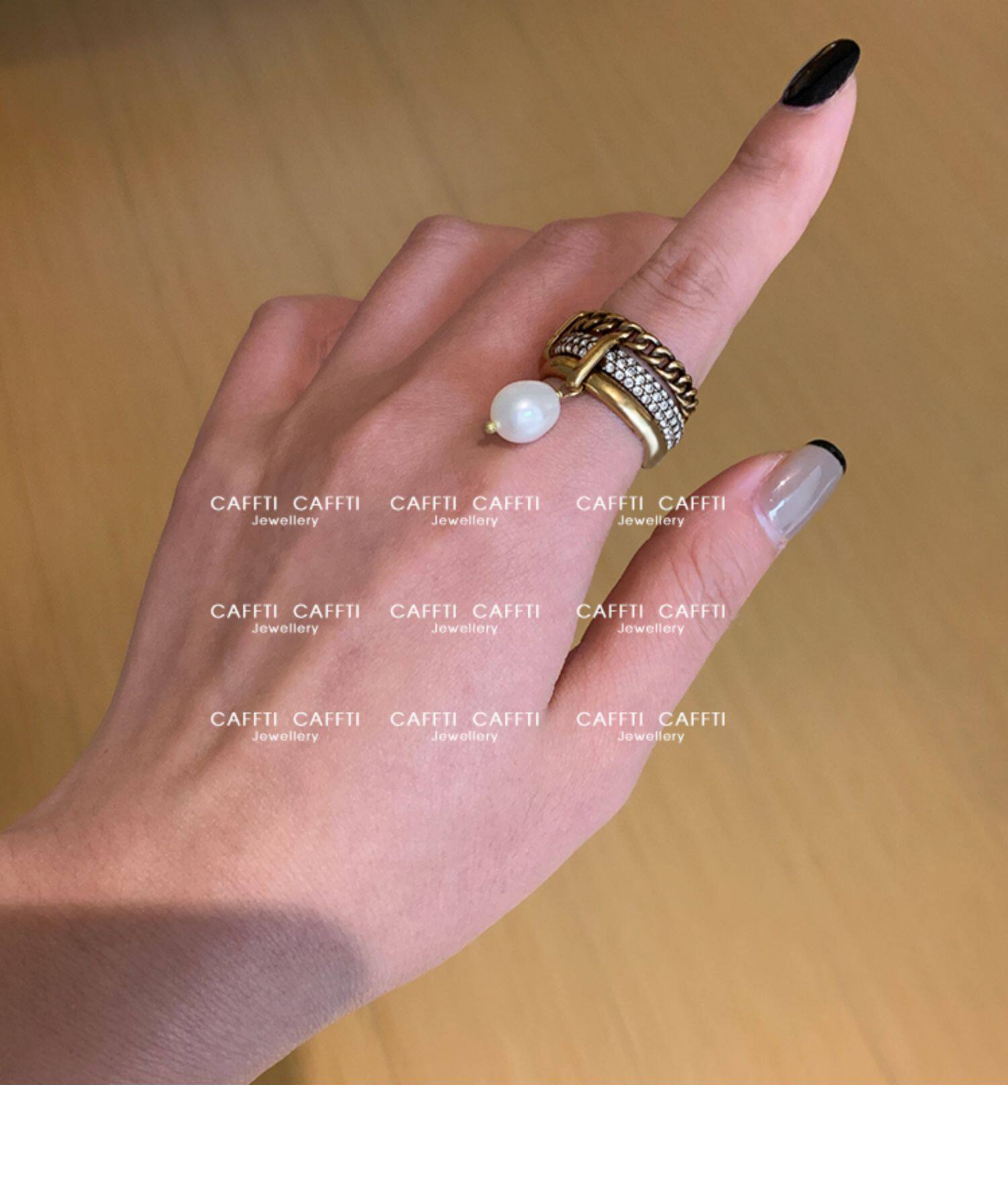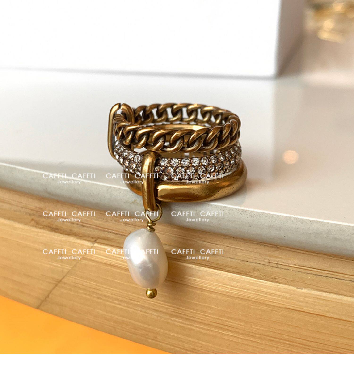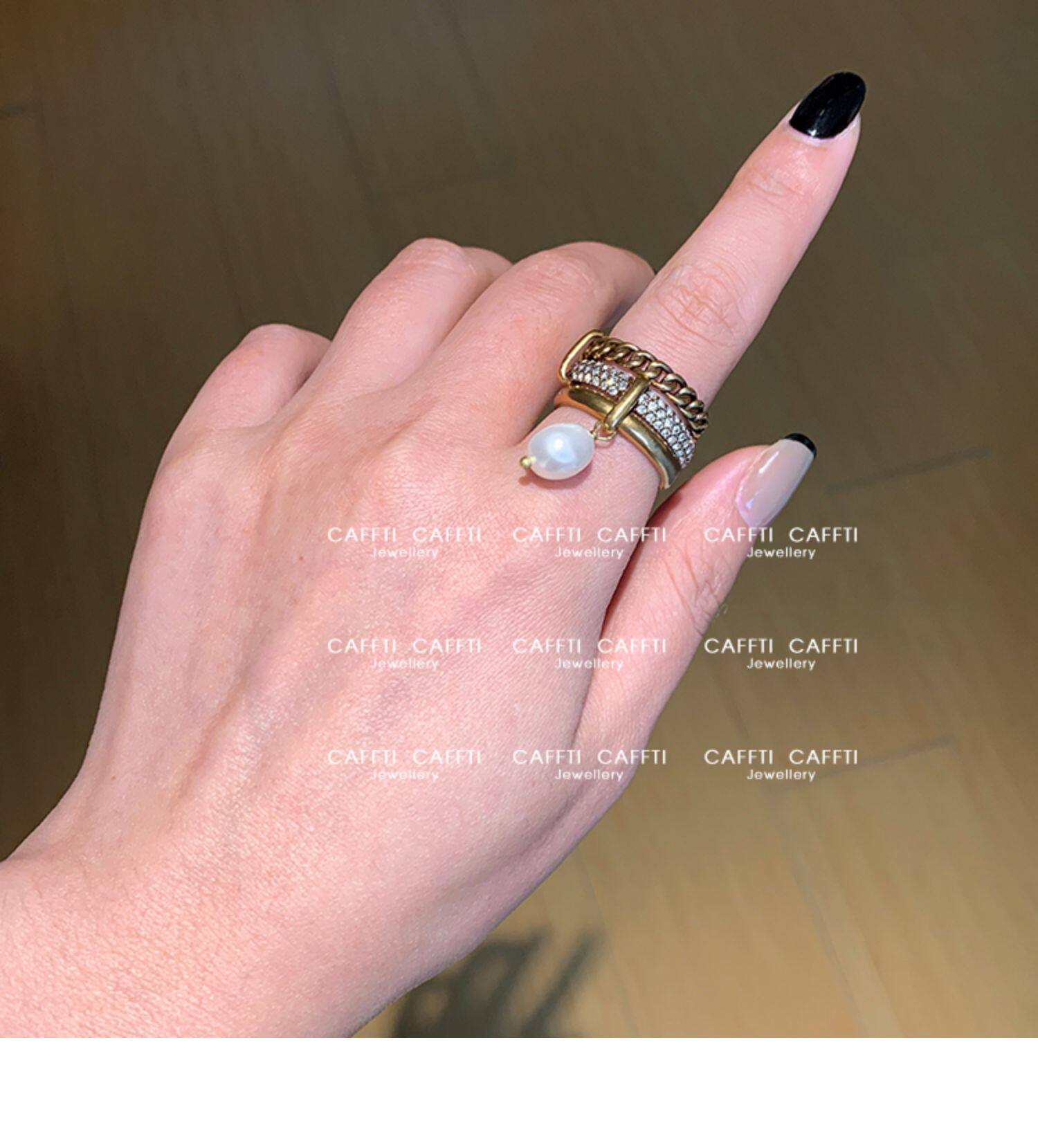 歐美復古多層巴洛克珍珠戒指女小衆設計輕奢時尚個性金色食指指環