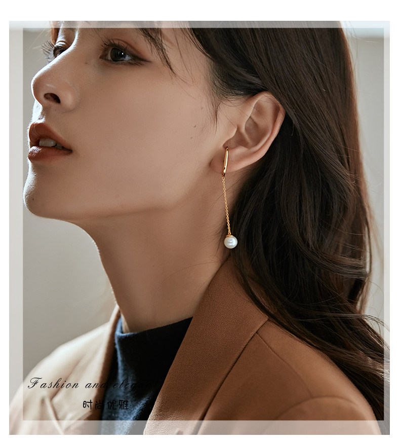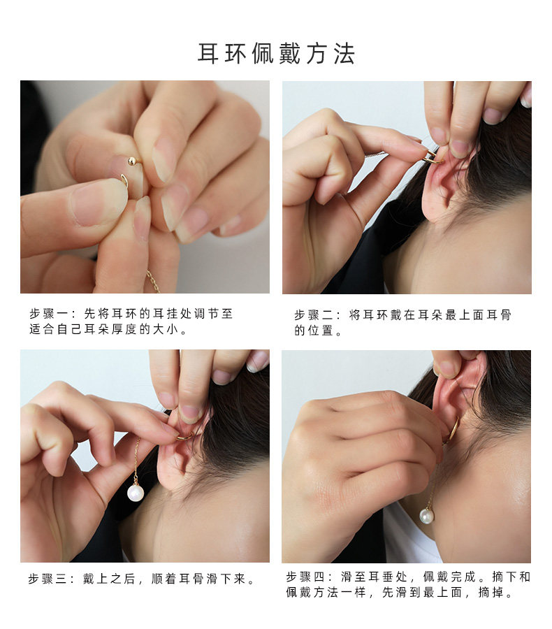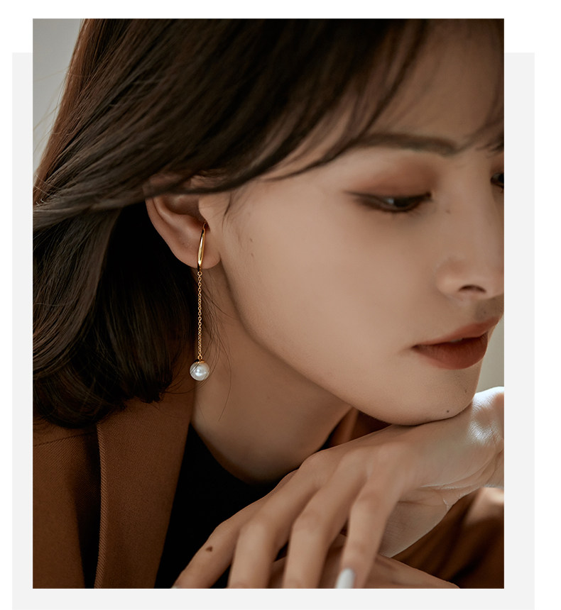 高級感法式耳夾無耳洞女小衆復古珍珠耳掛耳飾耳骨夾耳環秋冬耳釘