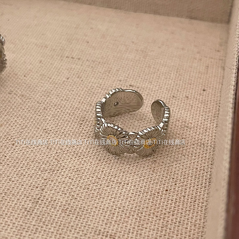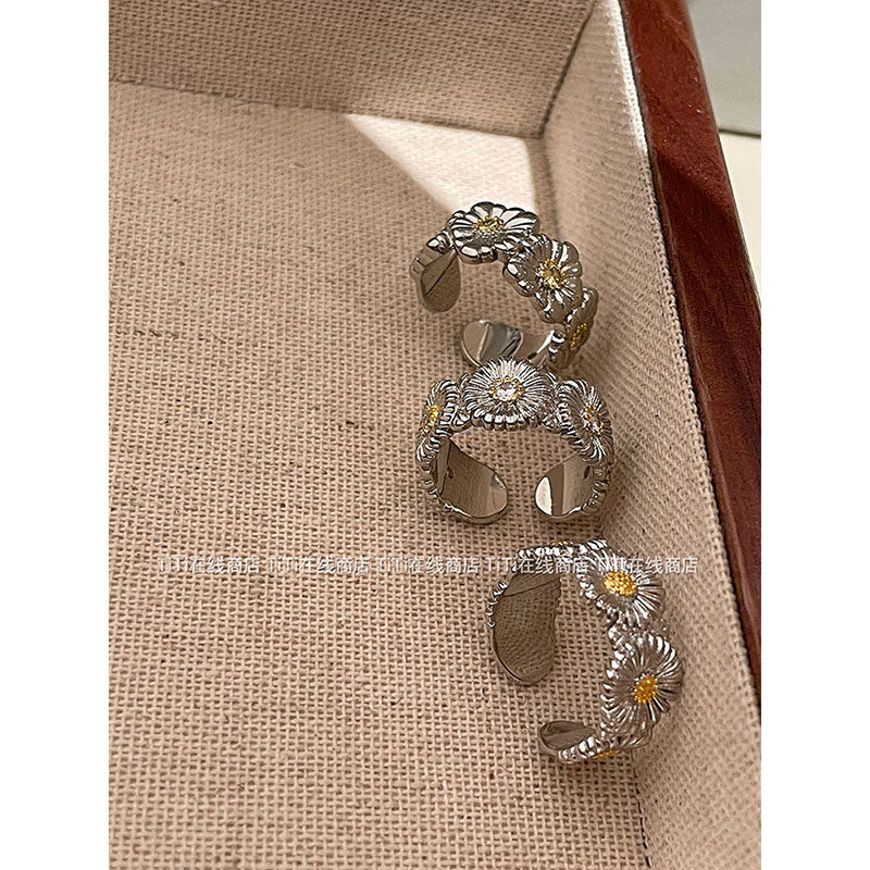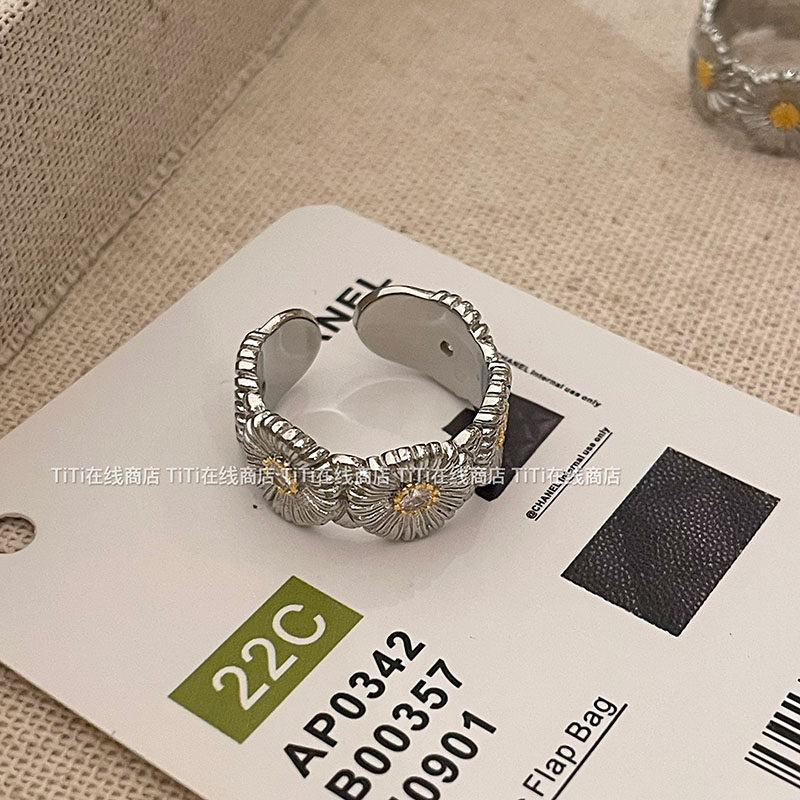 GD同款布*拉提高質感小雛菊鑲鑽高級感精緻輕奢時尚開口高級戒指