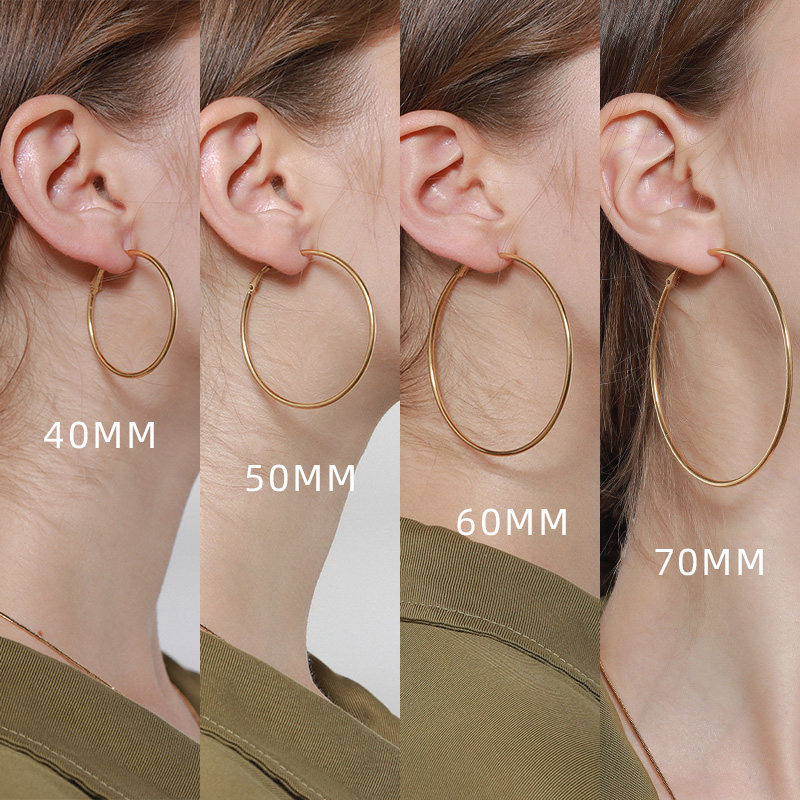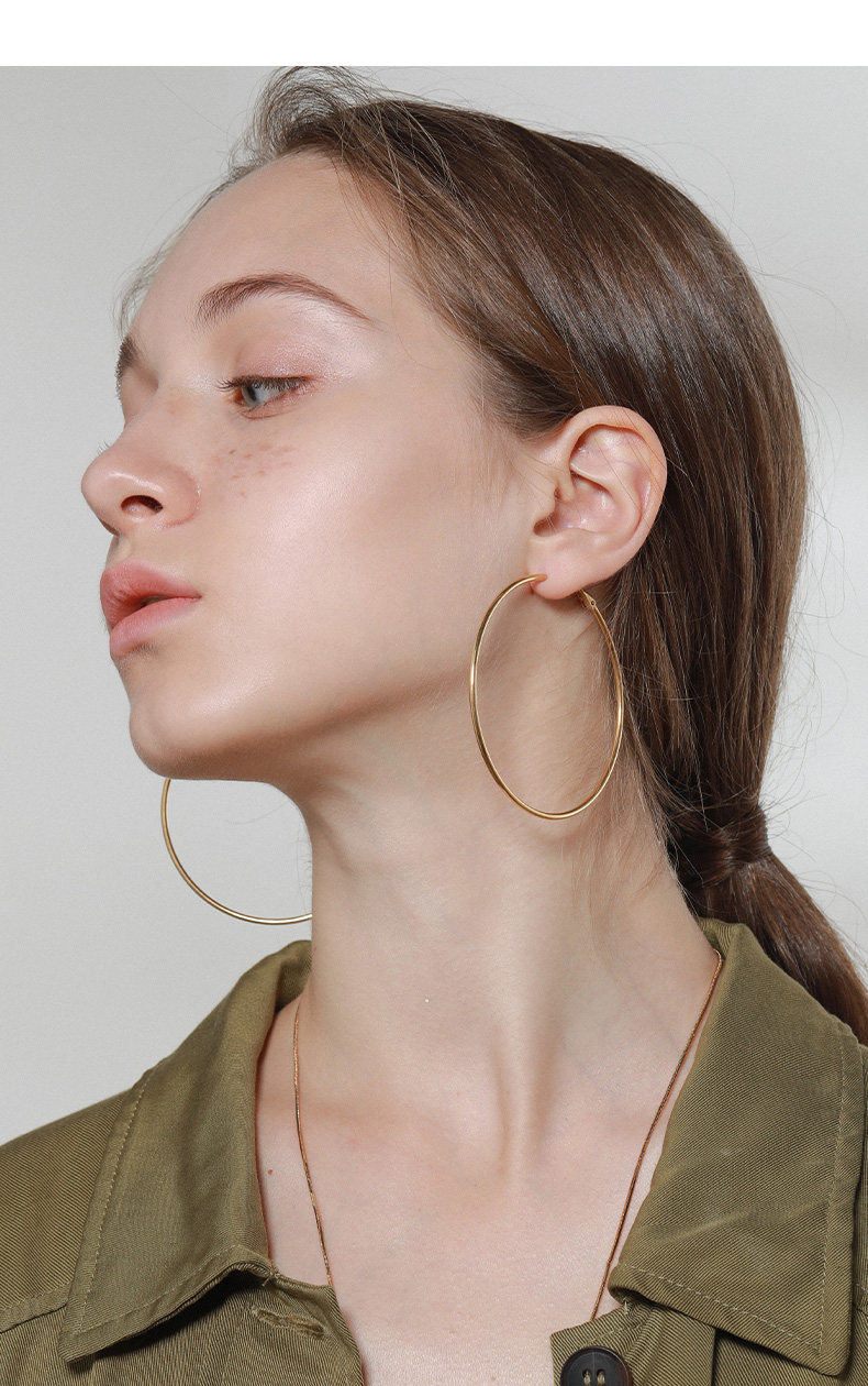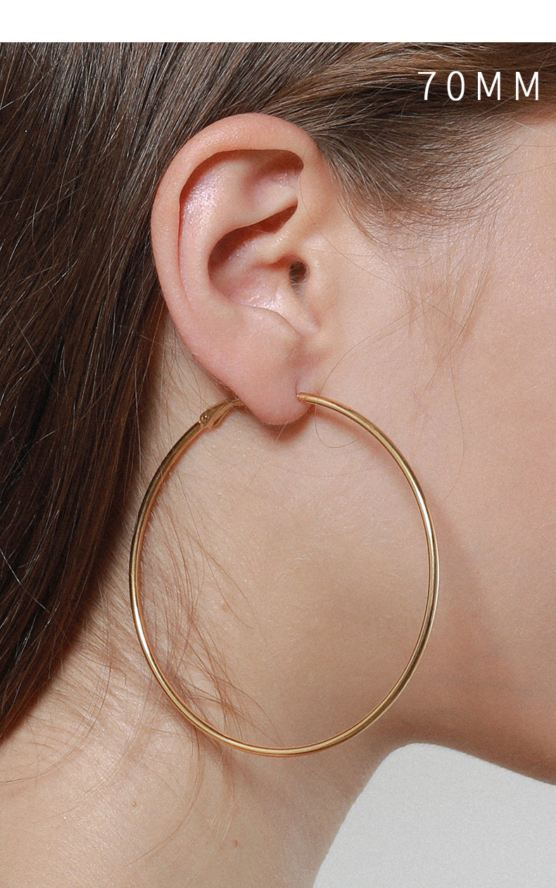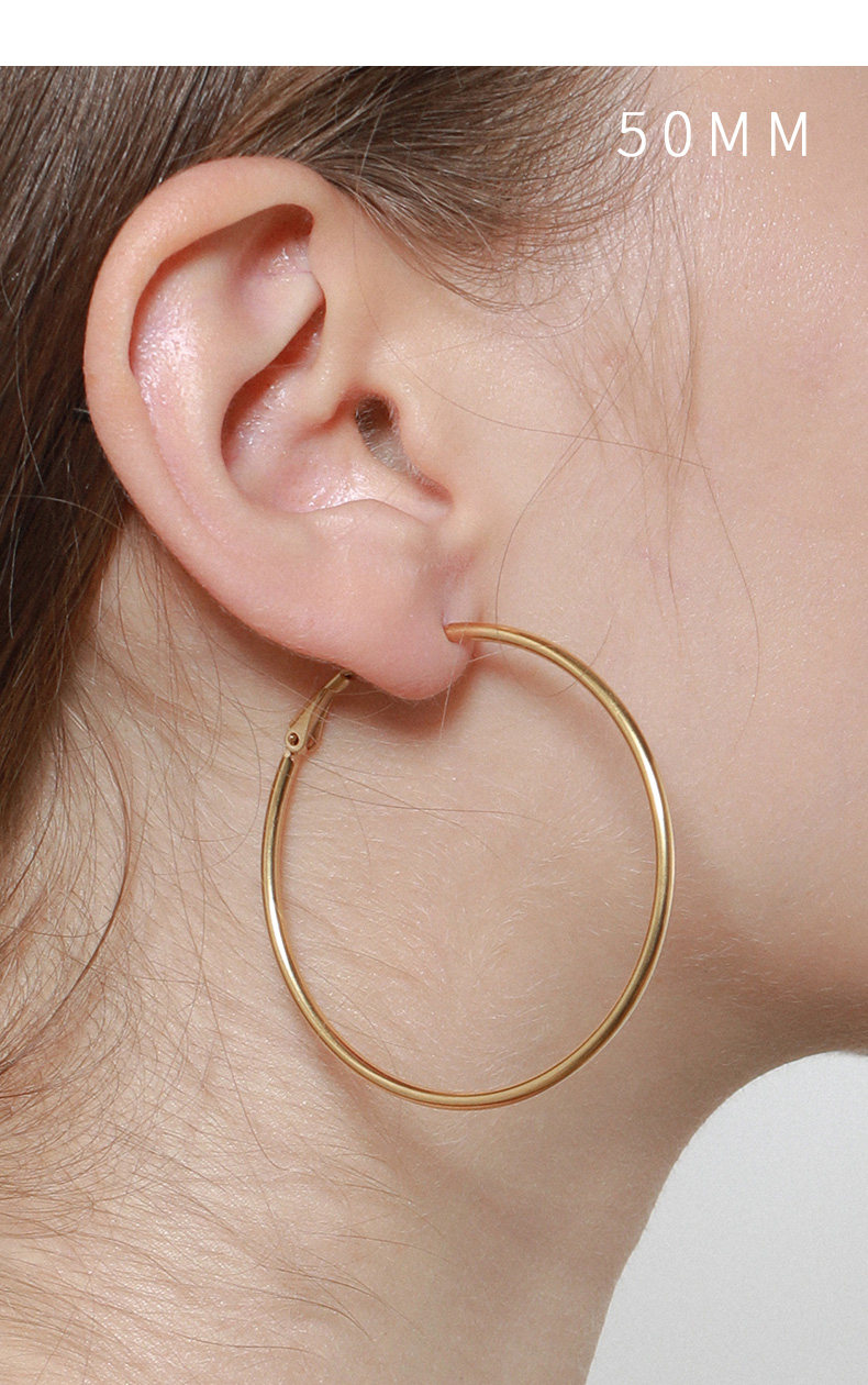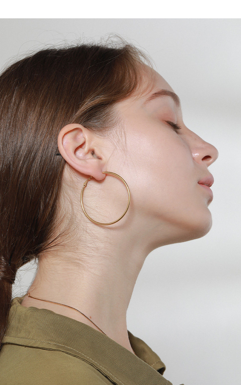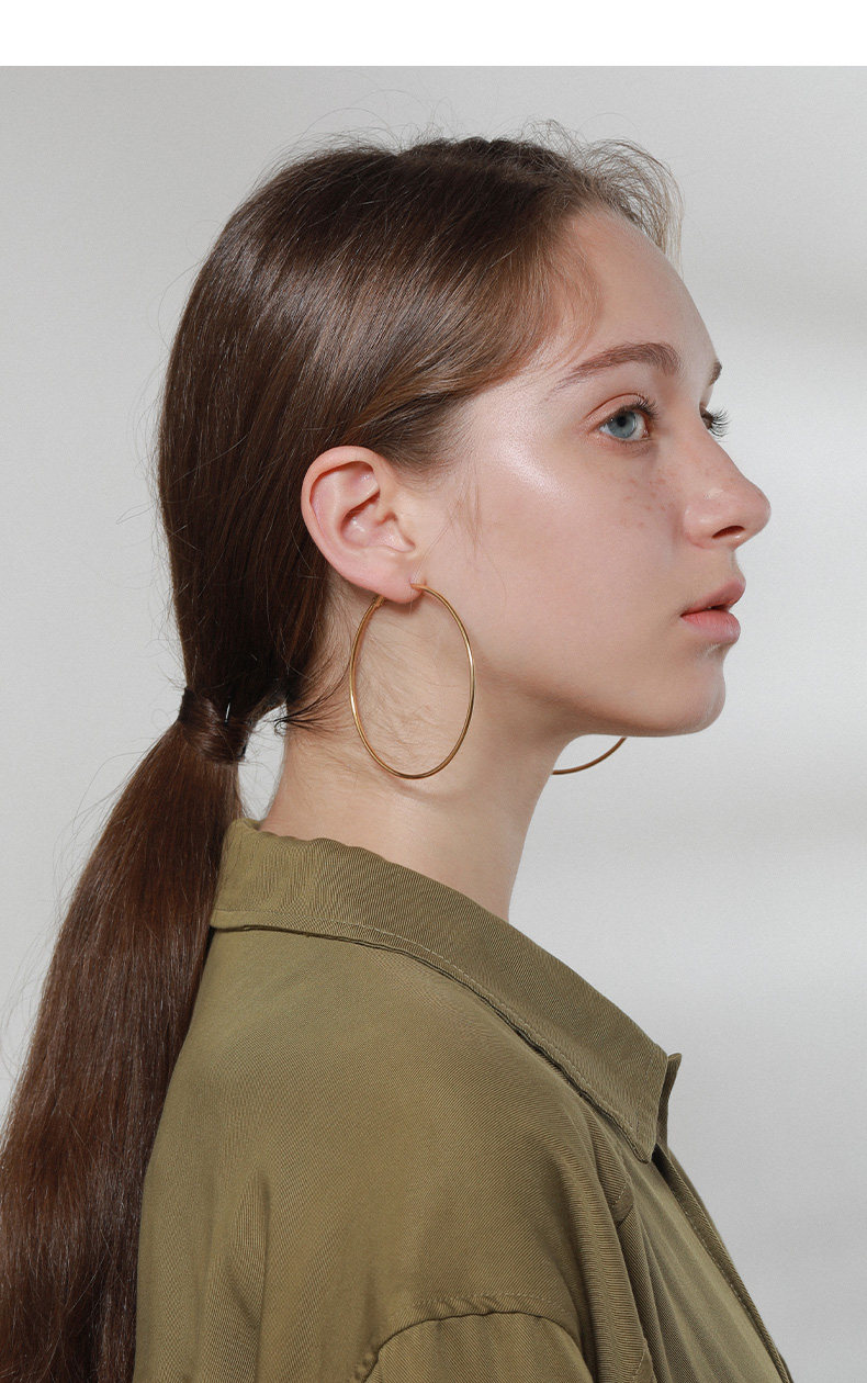 LARAINE YIN歐美小衆設計基礎細金色水原希子誇張大圓耳環圈鈦鋼