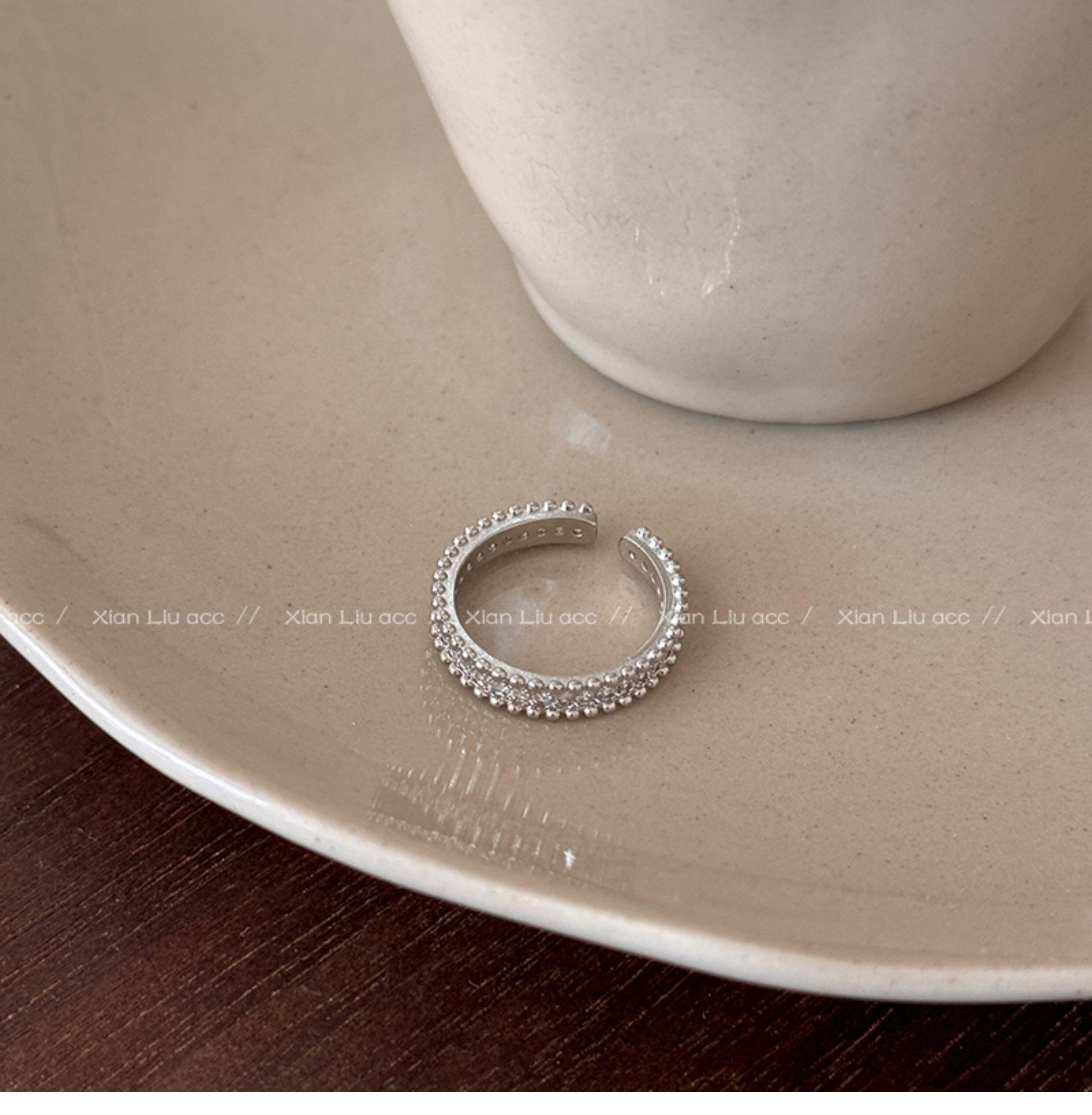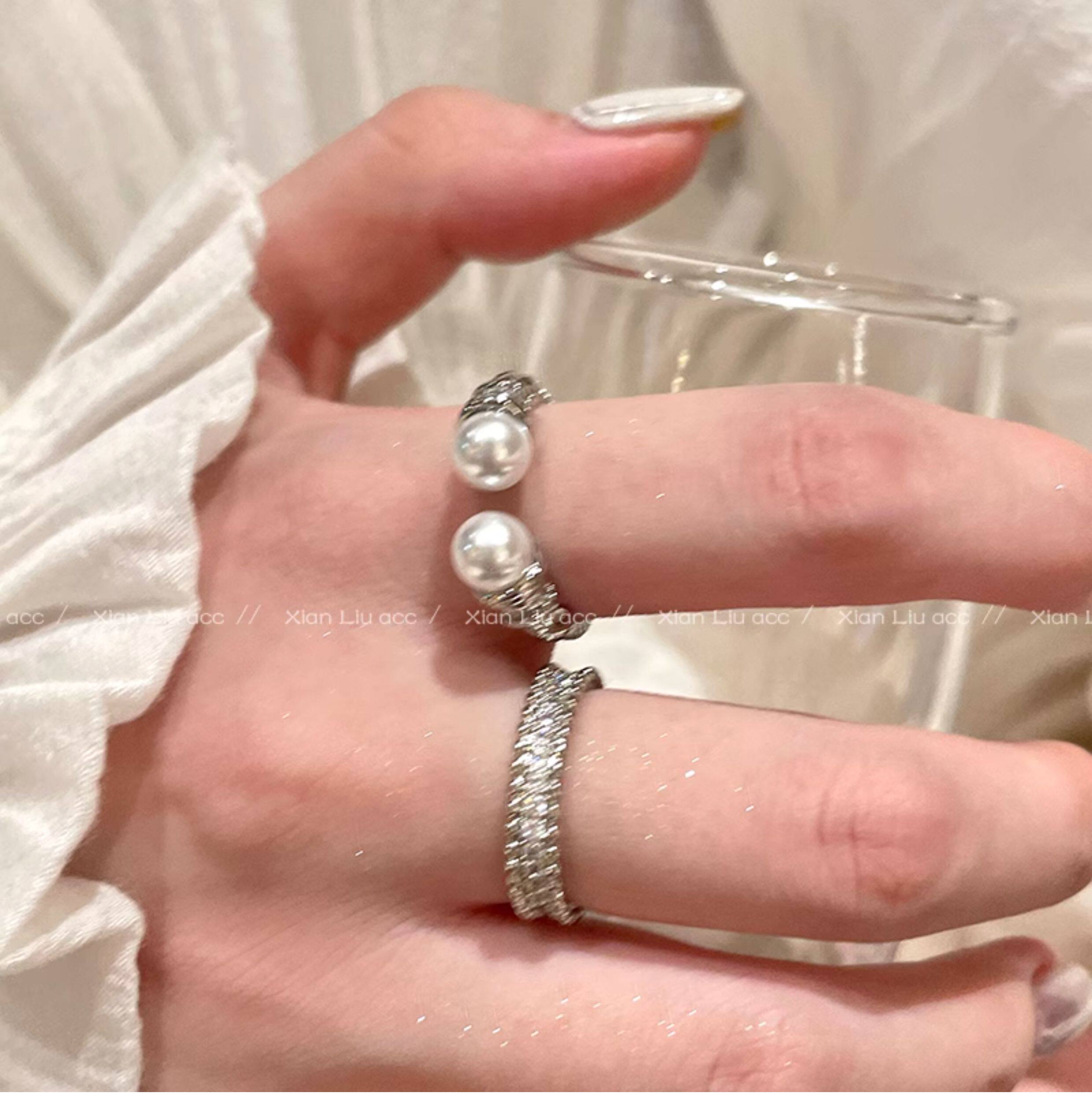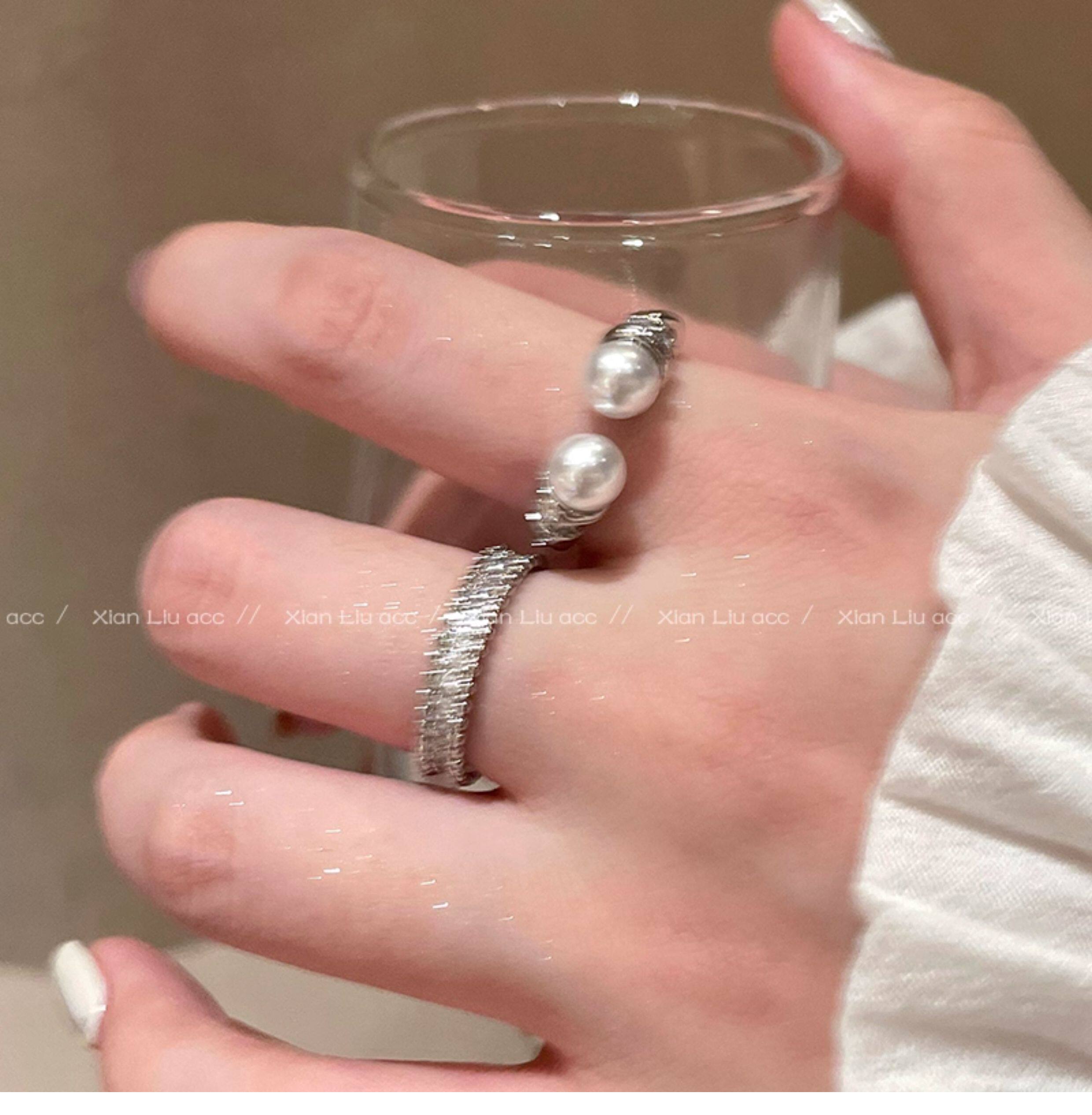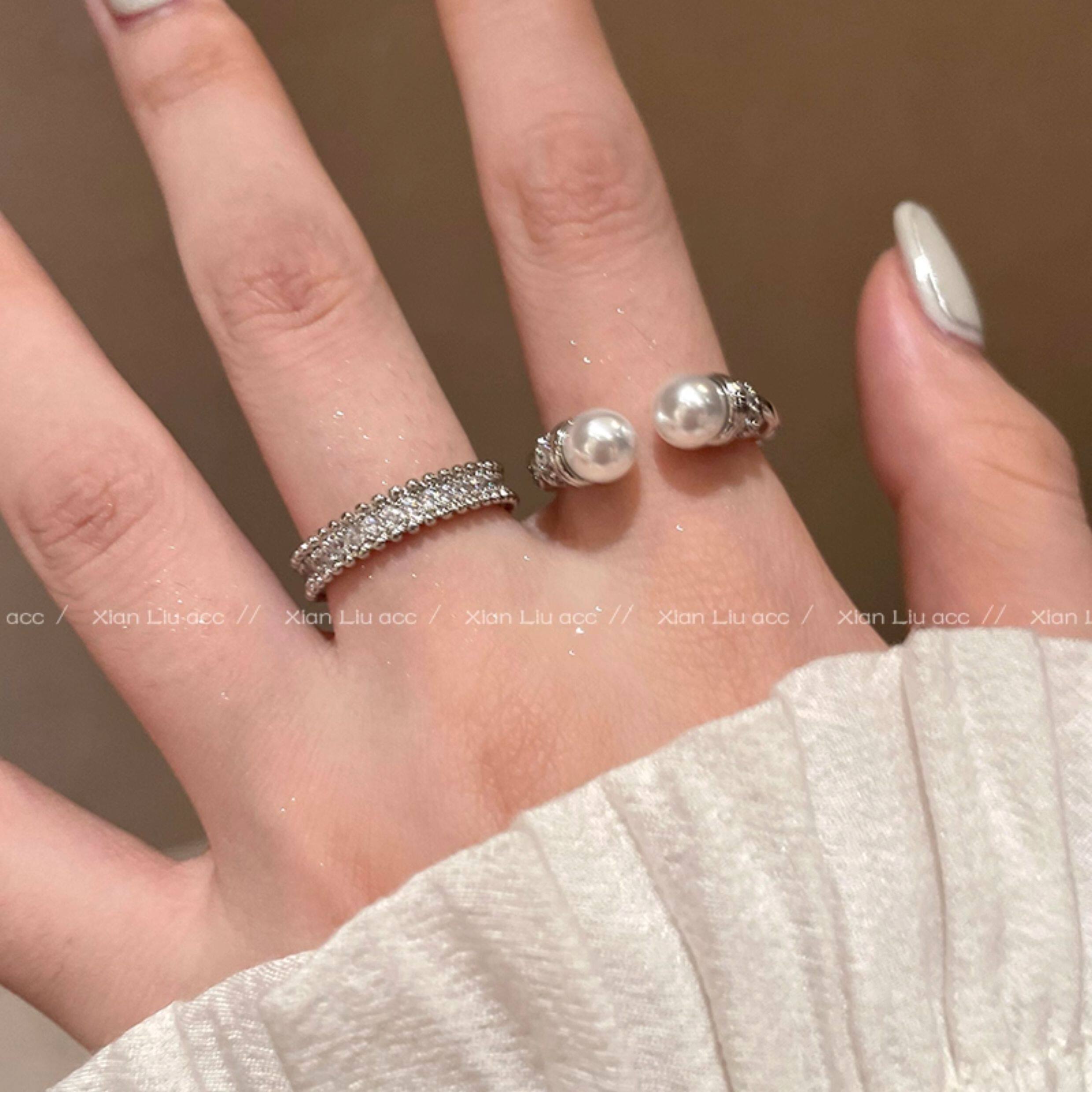 麻花雙珍珠開口戒指女小衆設計排鑽食指戒輕奢氣質高級感曡戴指環
