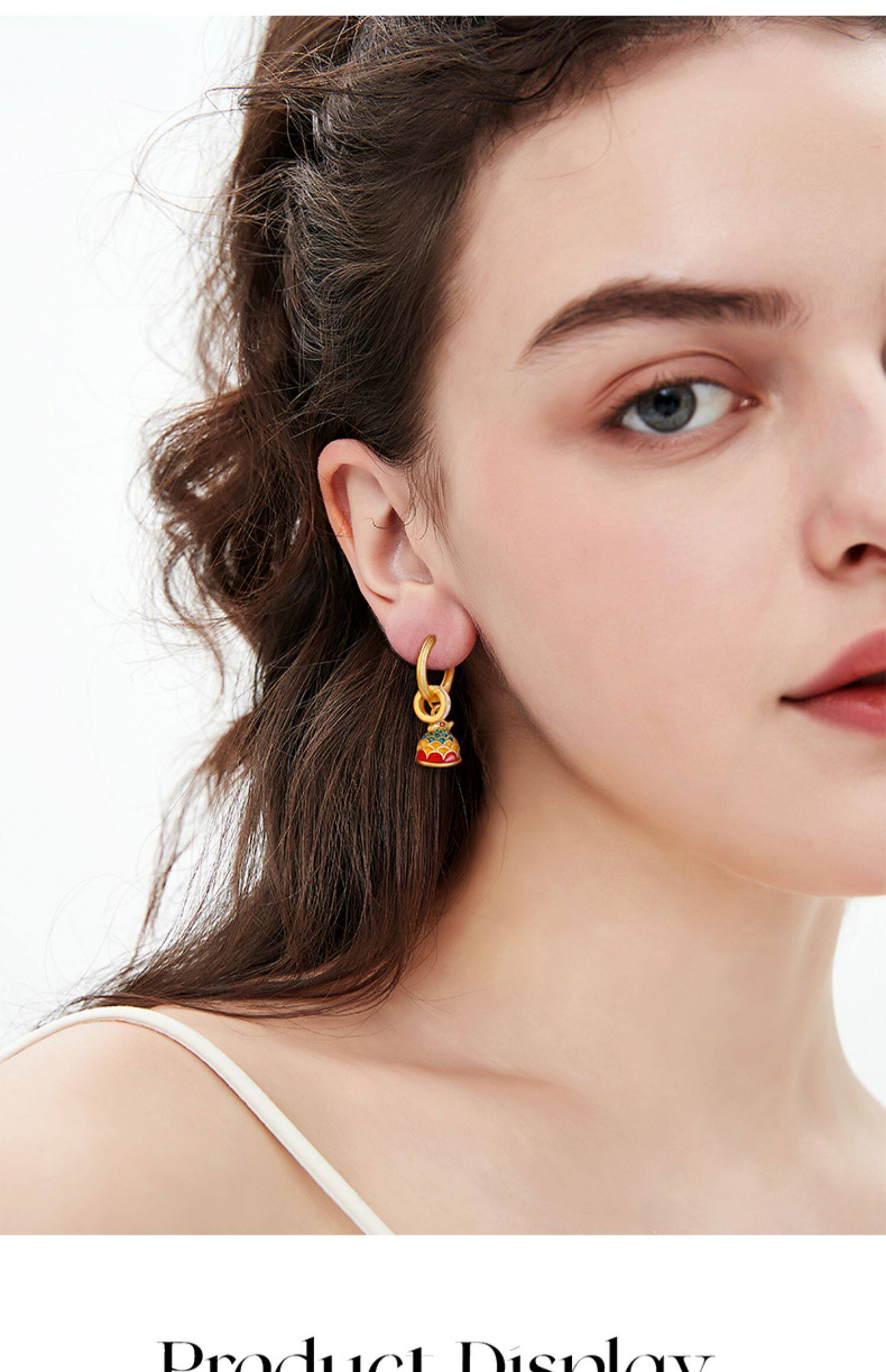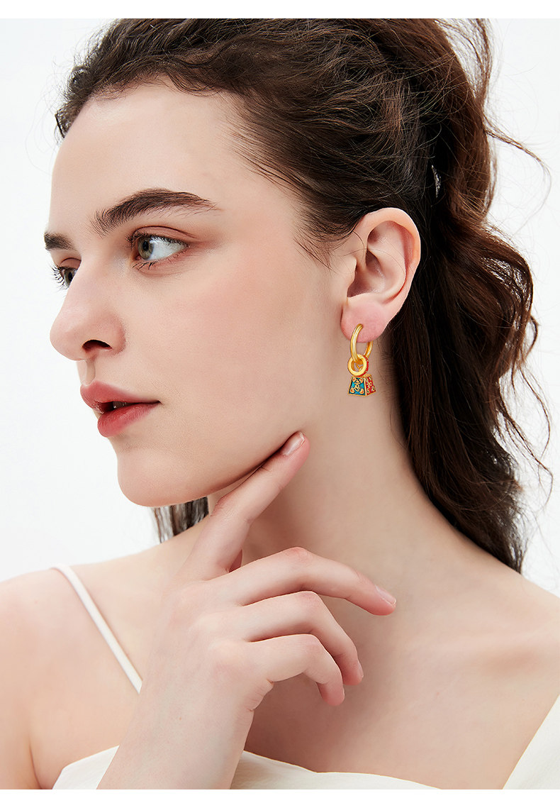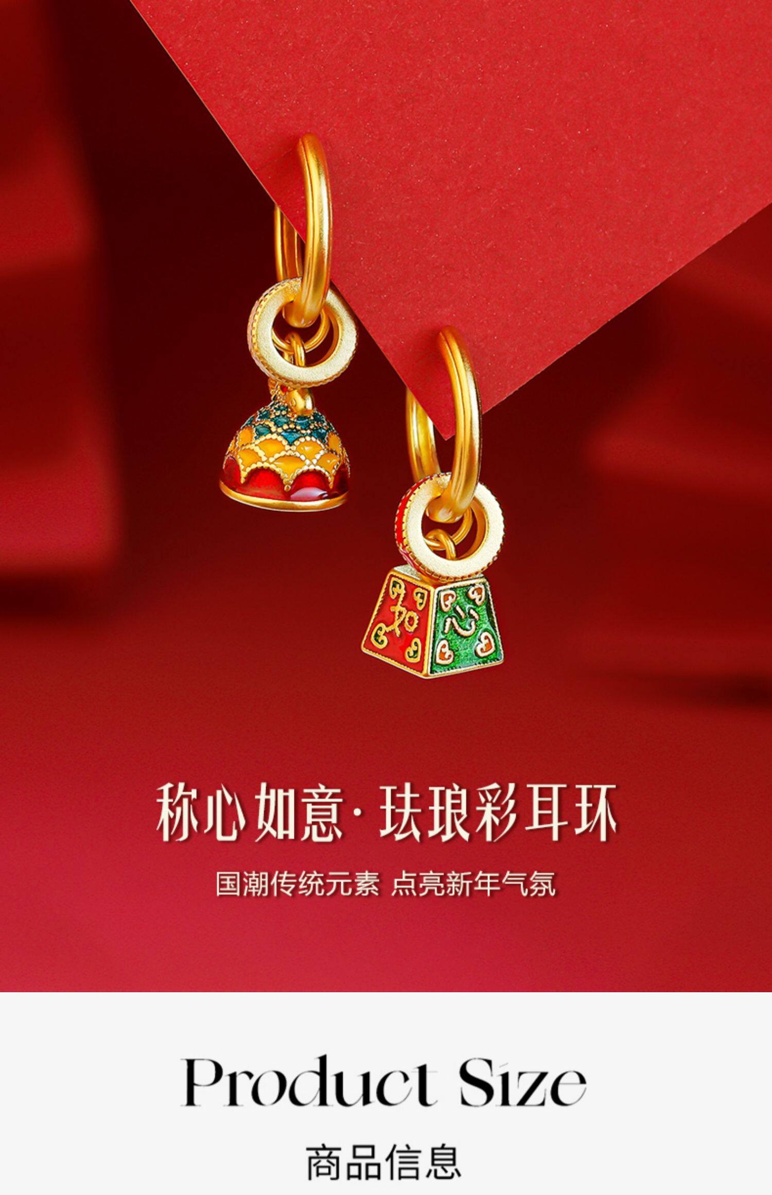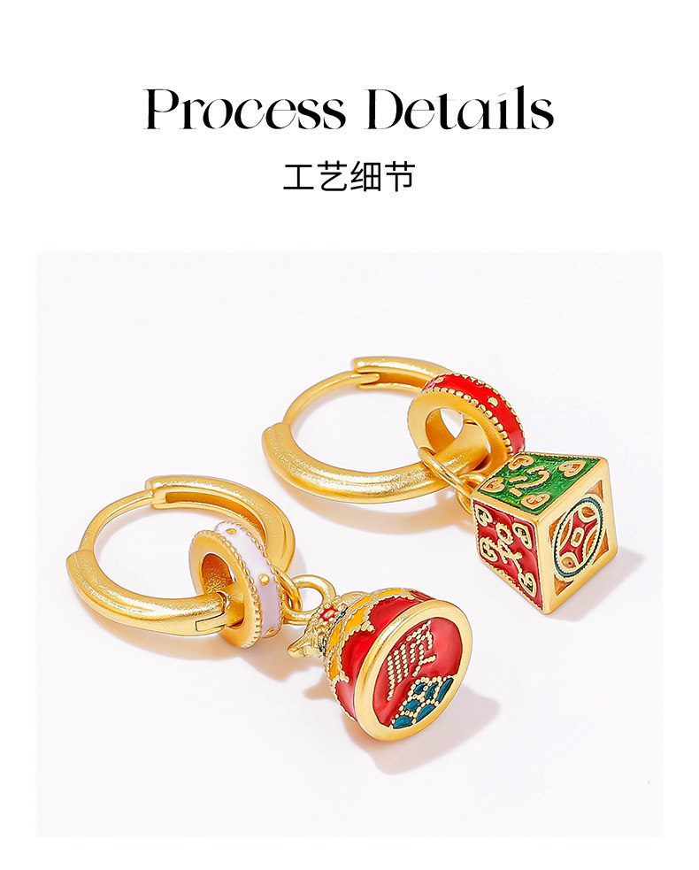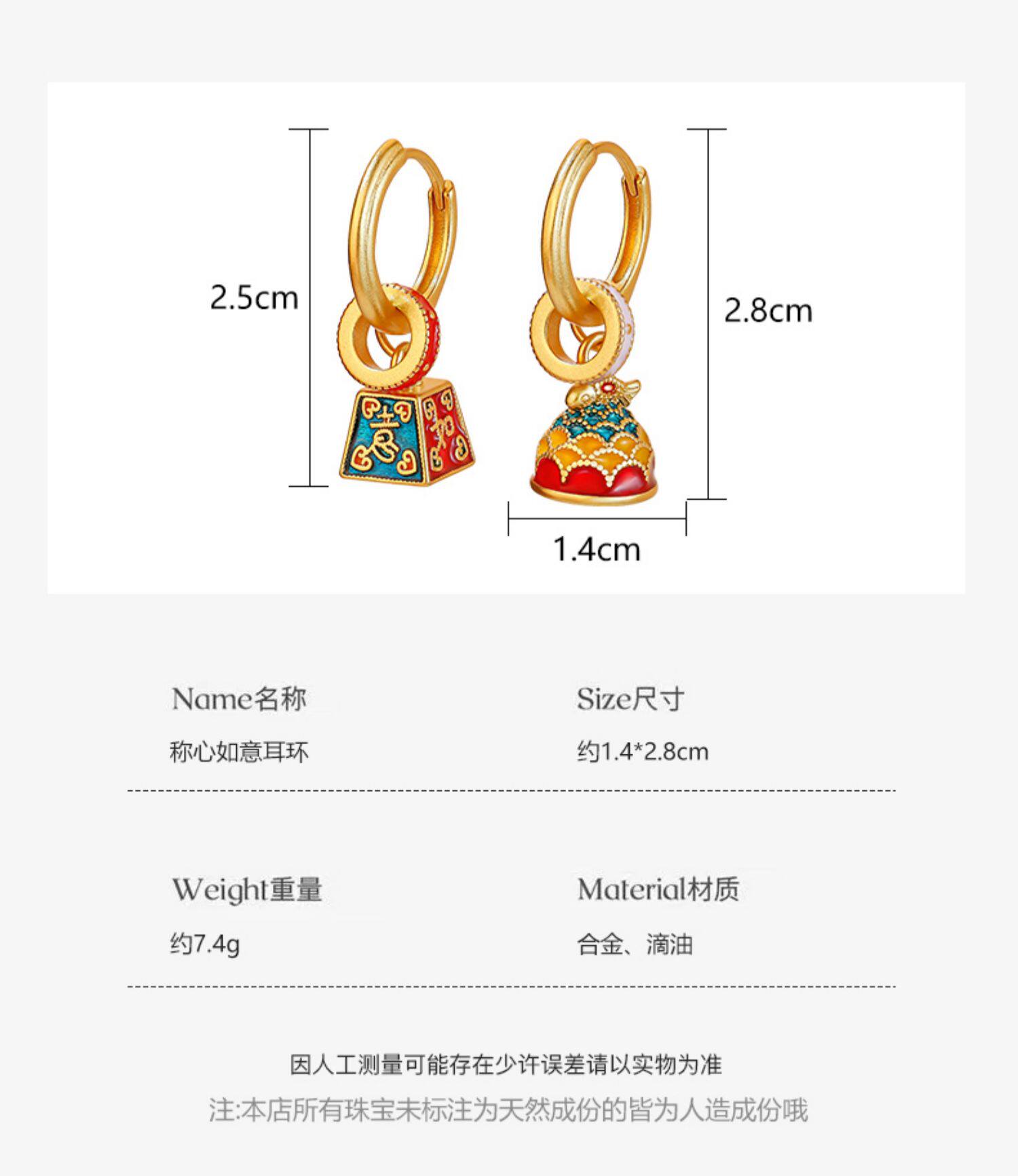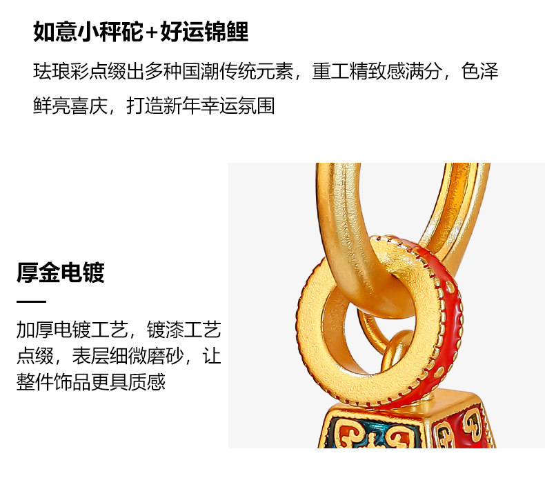 新中式國風稱心如意耳環女新款琺瑯玄學旺財耳飾錦鯉耳圈紅色耳墜