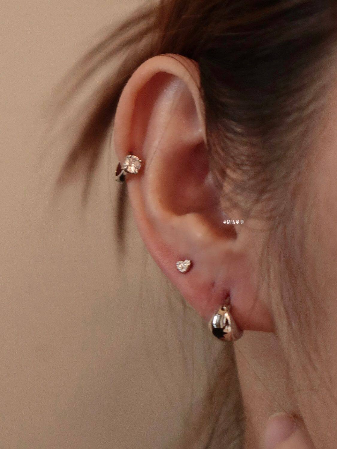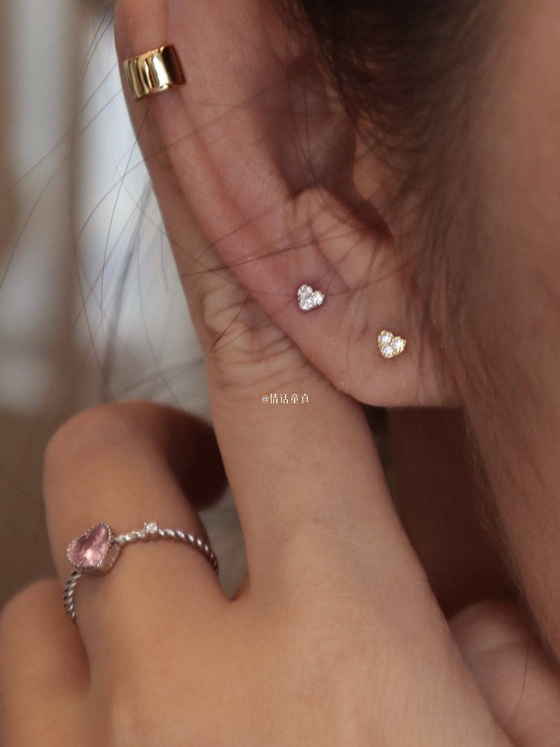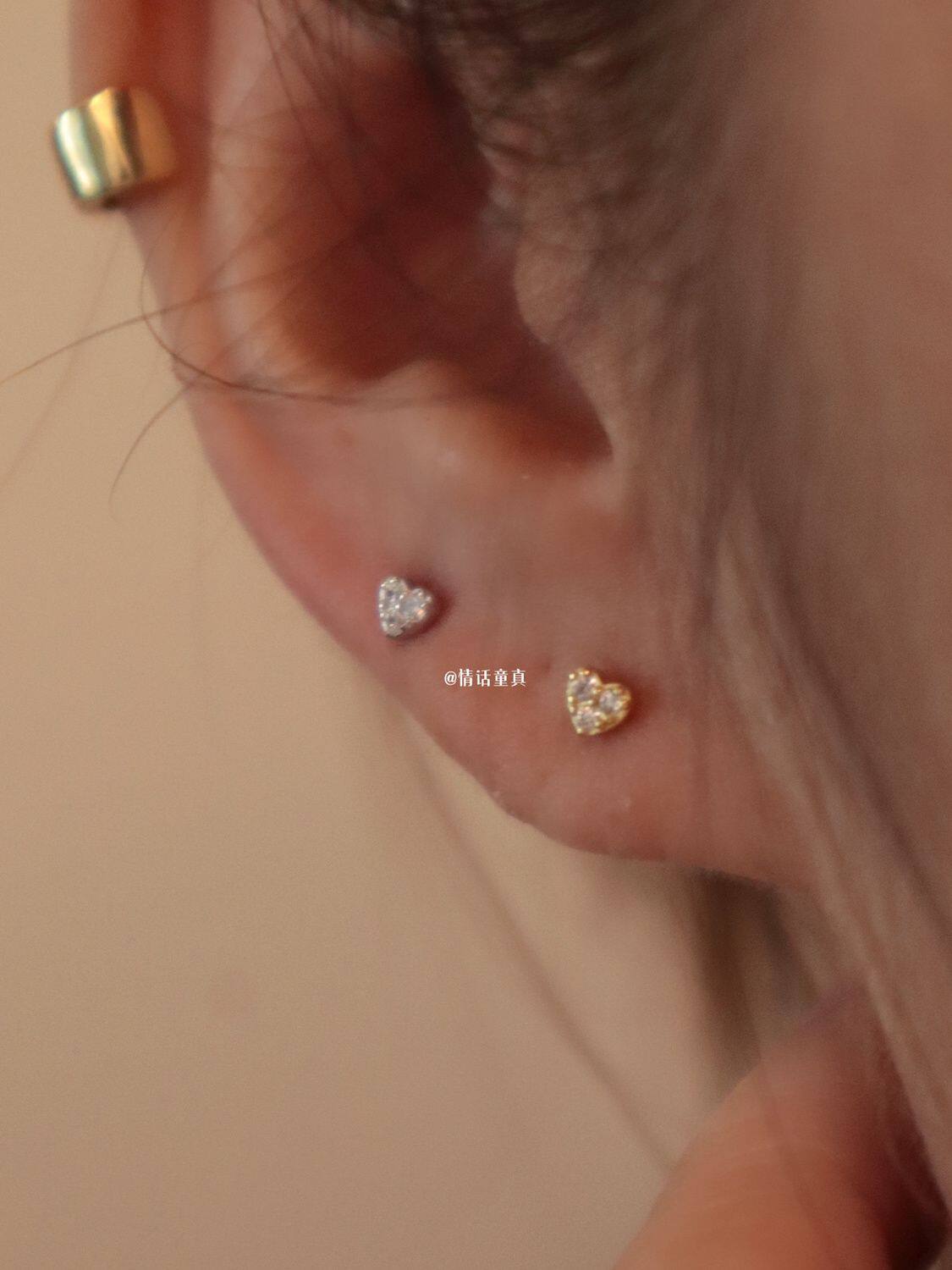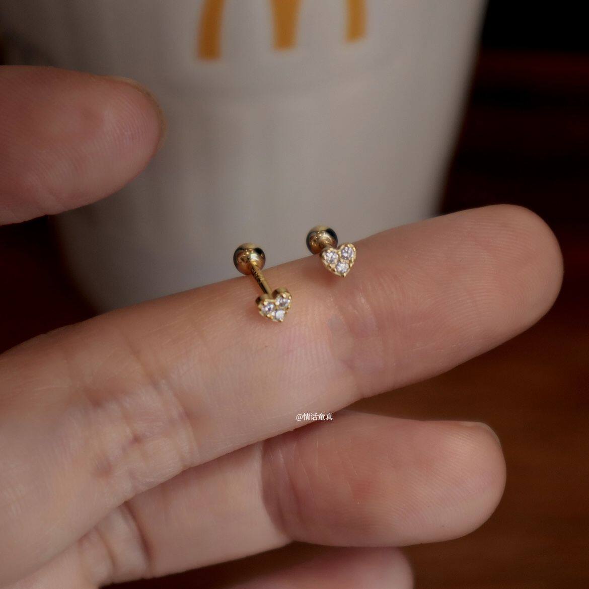 如蝶在野 睡覺不用摘超迷你螺紋耳釘養耳洞愛心擰螺絲極小耳骨釘