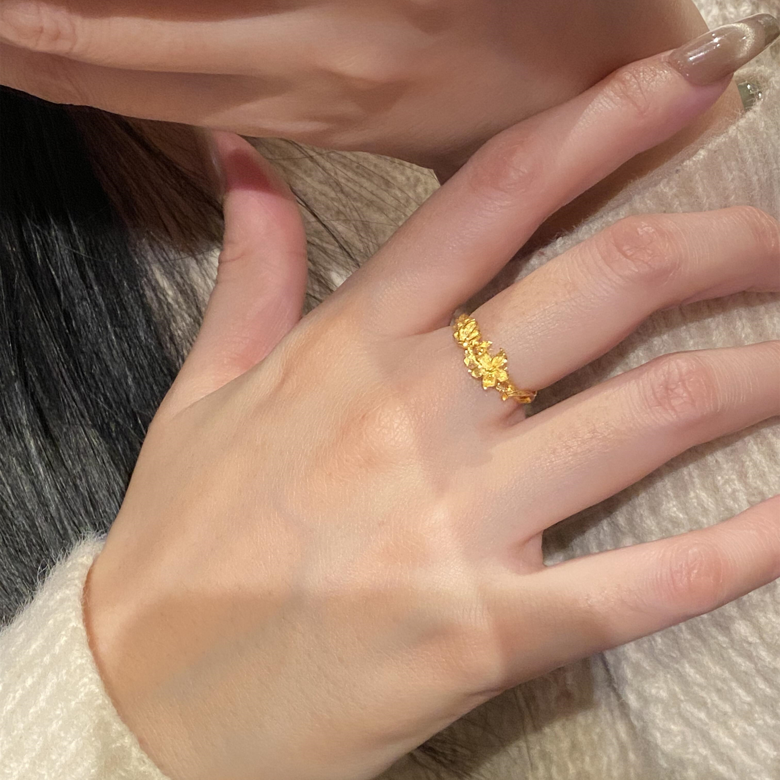 古法傳承24k金小衆獨特蝶戀花戒指女春夏新款高顔值千金氣質指環