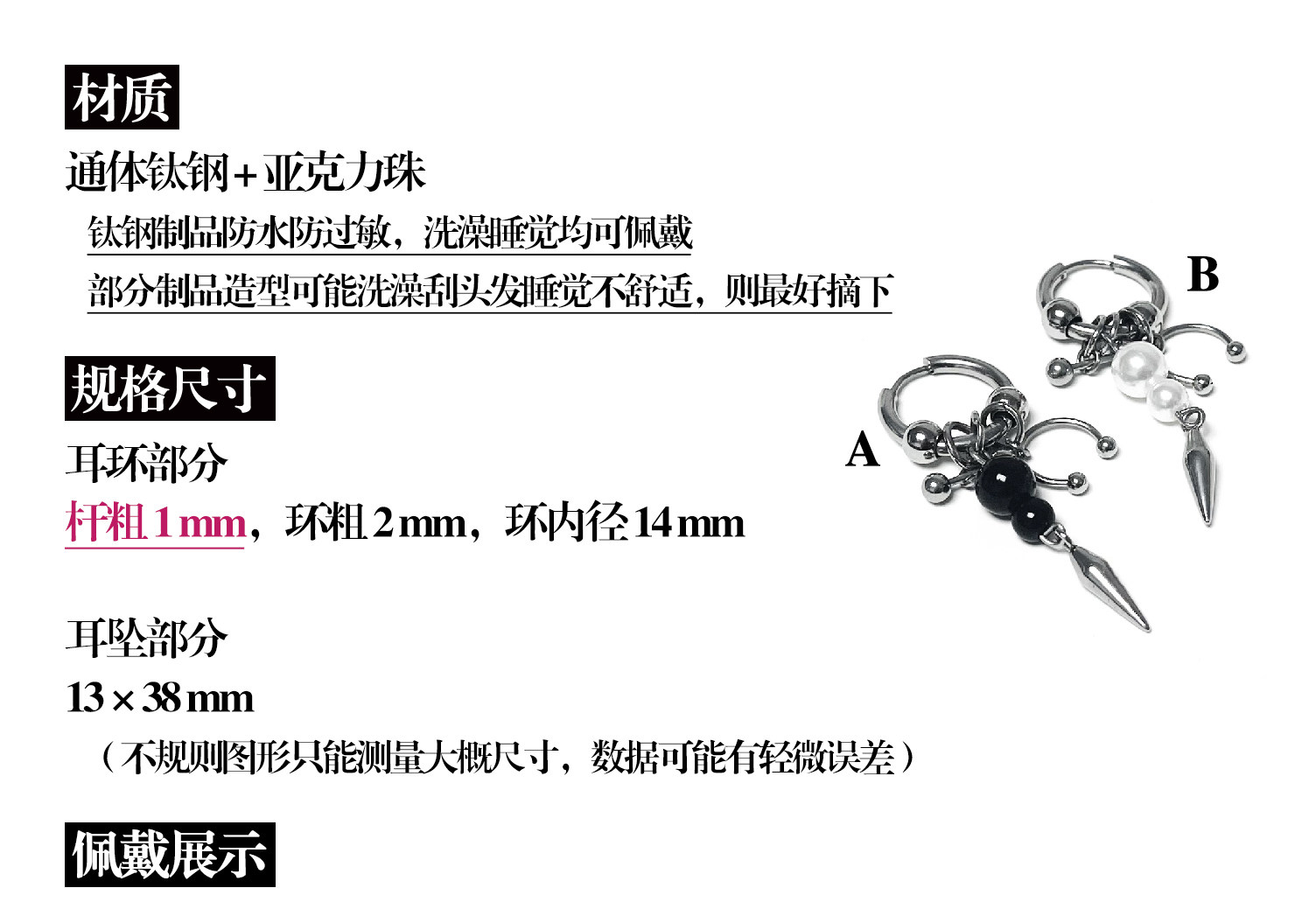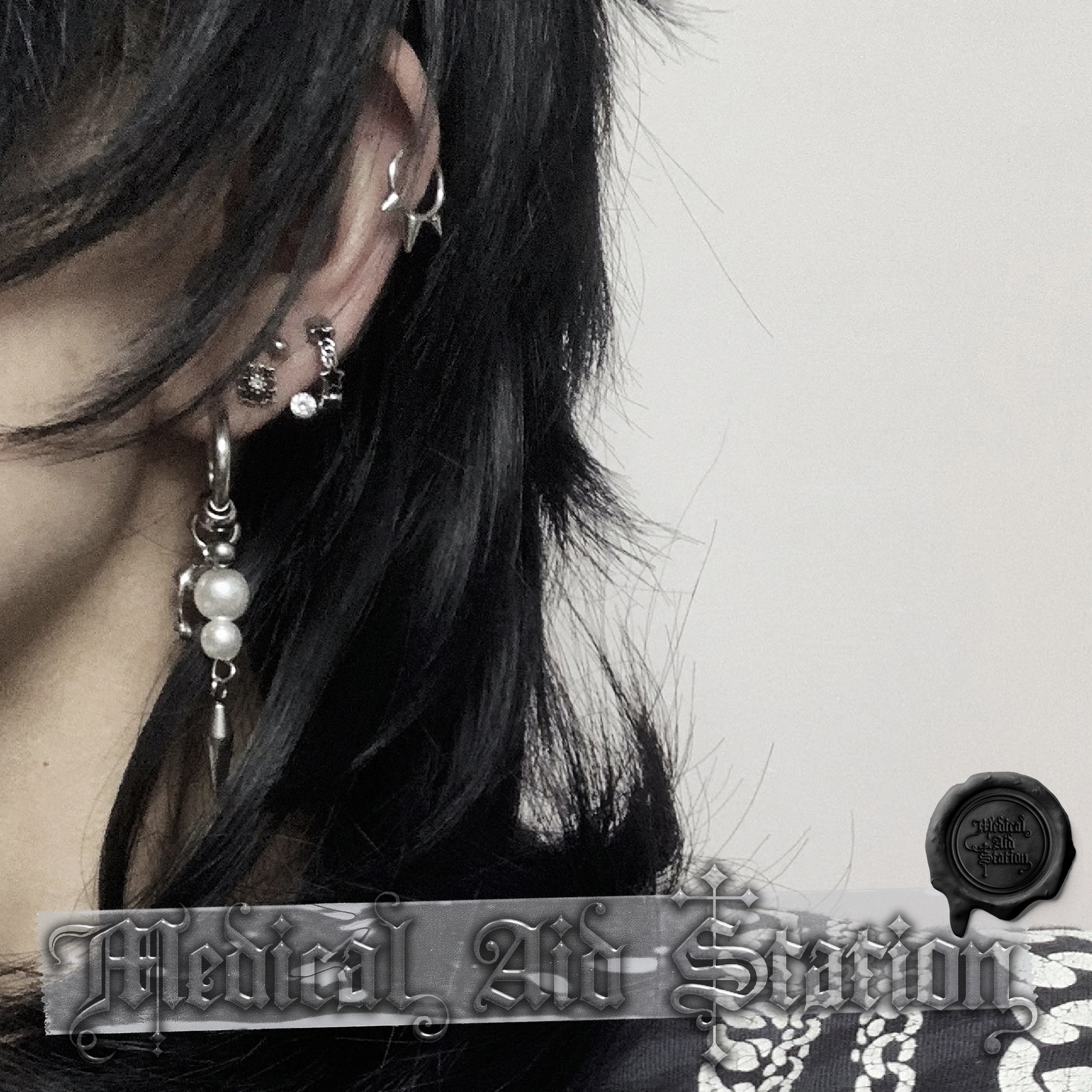 【MAS救護所】鈦鋼珍珠耳環耳夾極繁不規則鉚釘 不掉色龐克亞文化