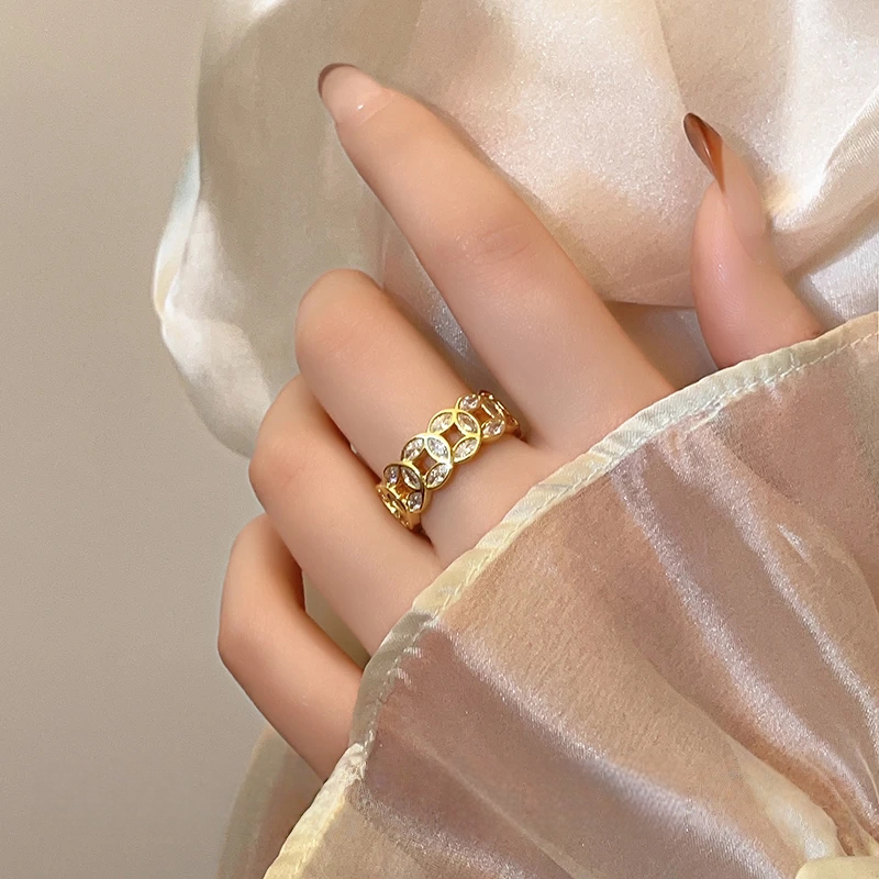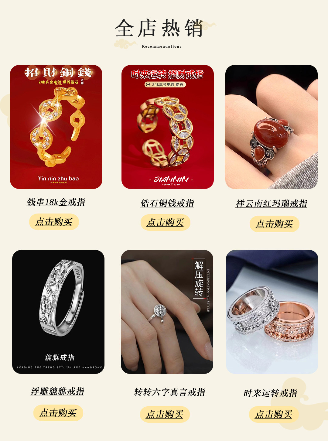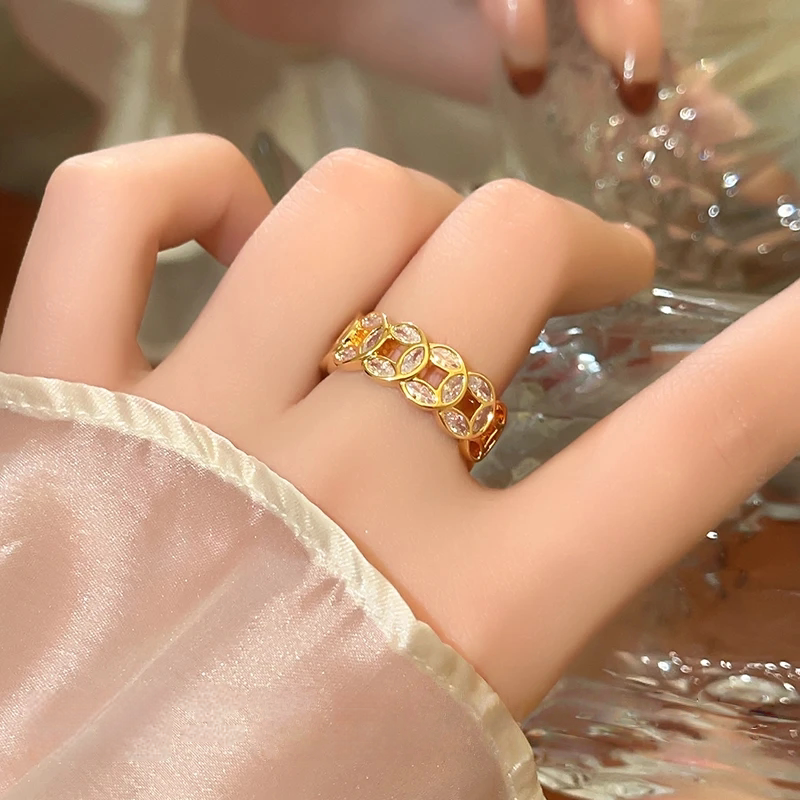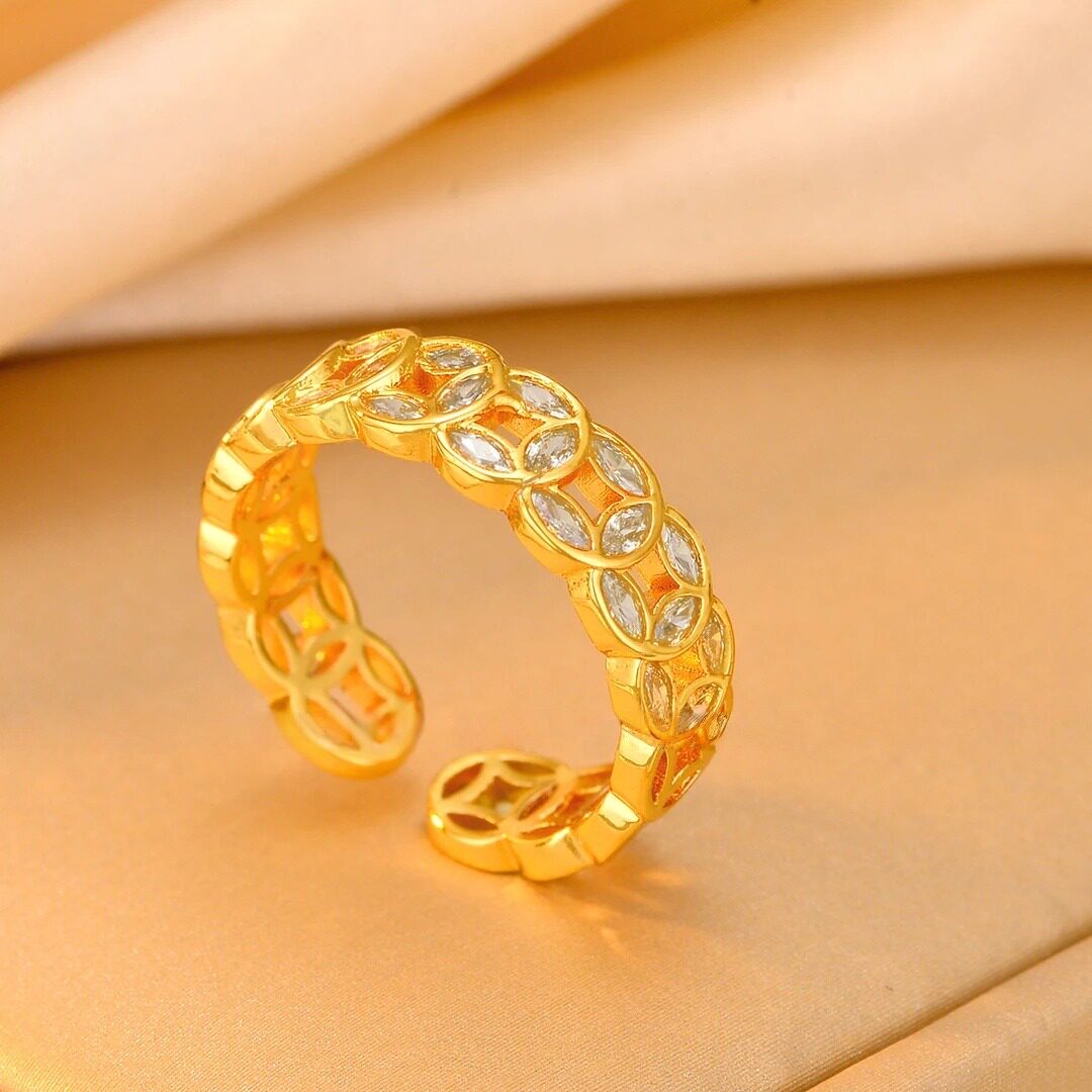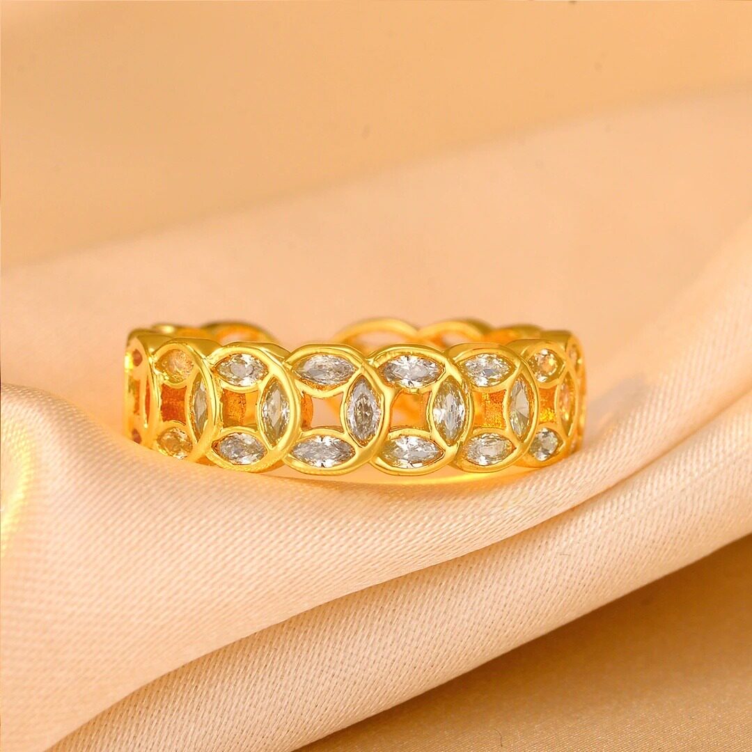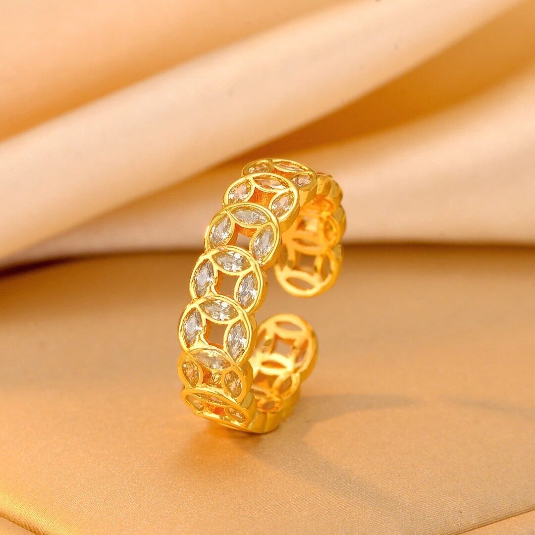 18k金新中式銅錢招財轉運戒指女款小衆設計感復古不掉色開口指環