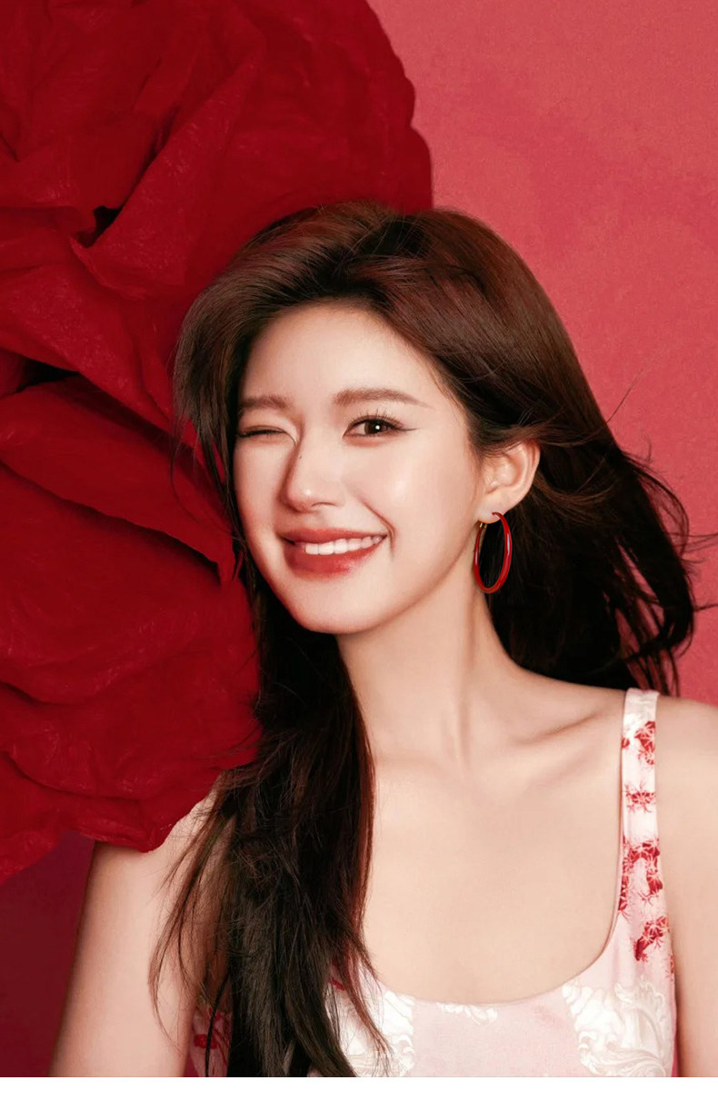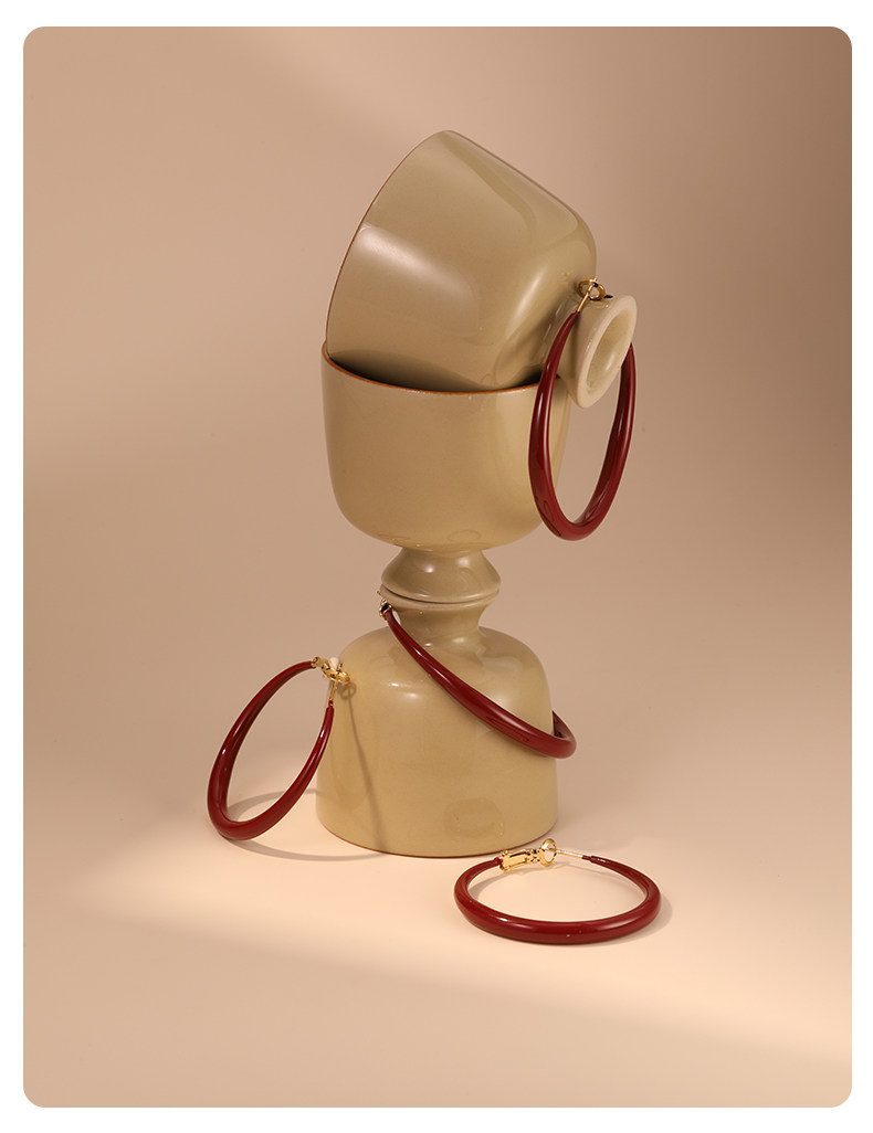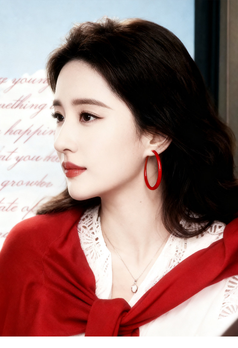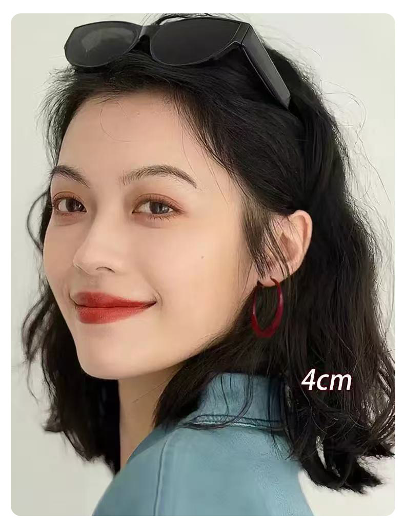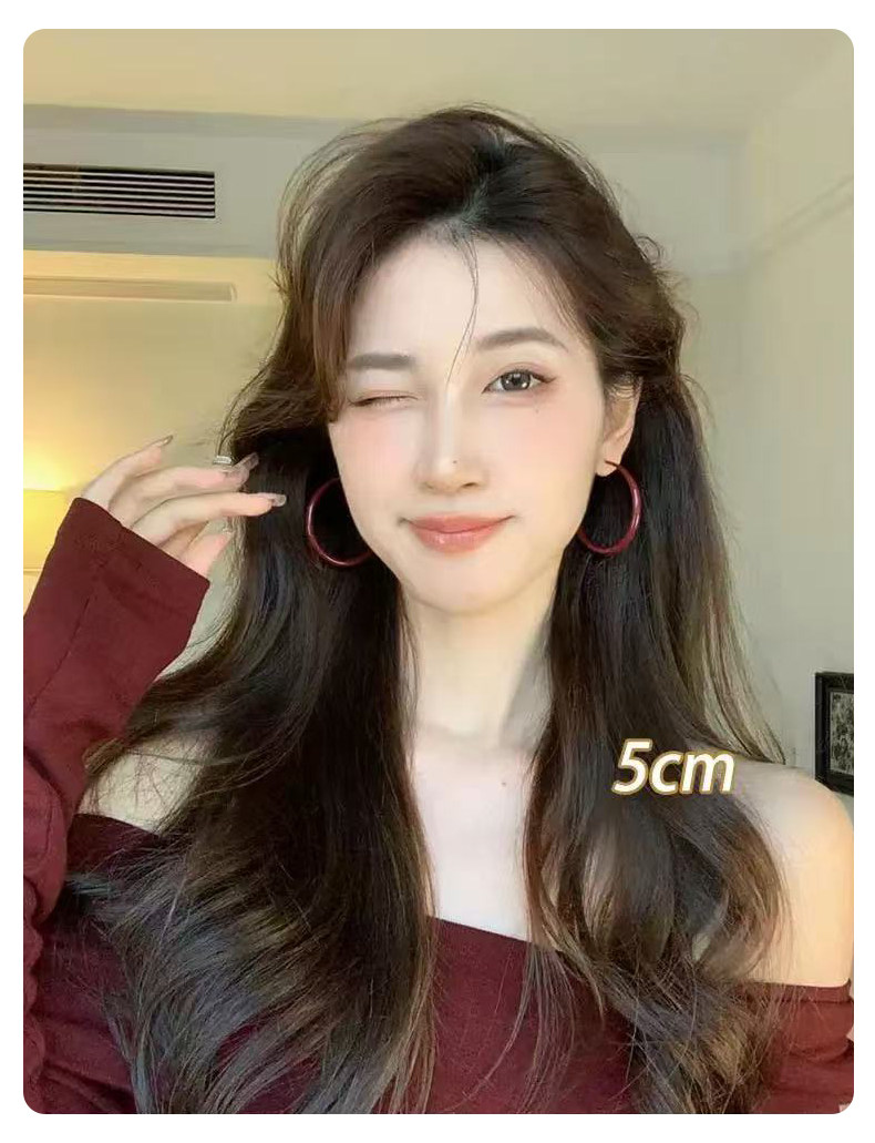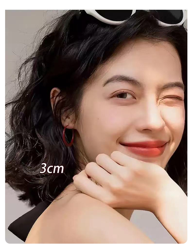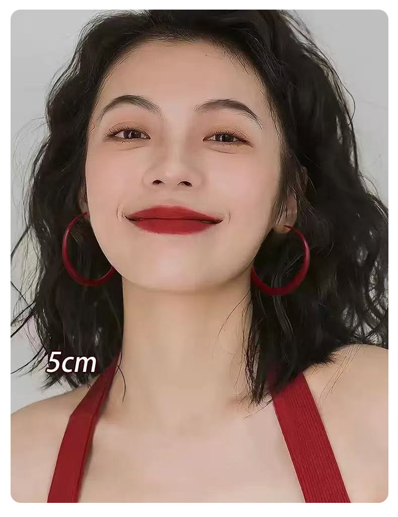 紅色港風圈圈耳圈2026新款爆款高級感大圓圈復古素圈耳環耳夾女