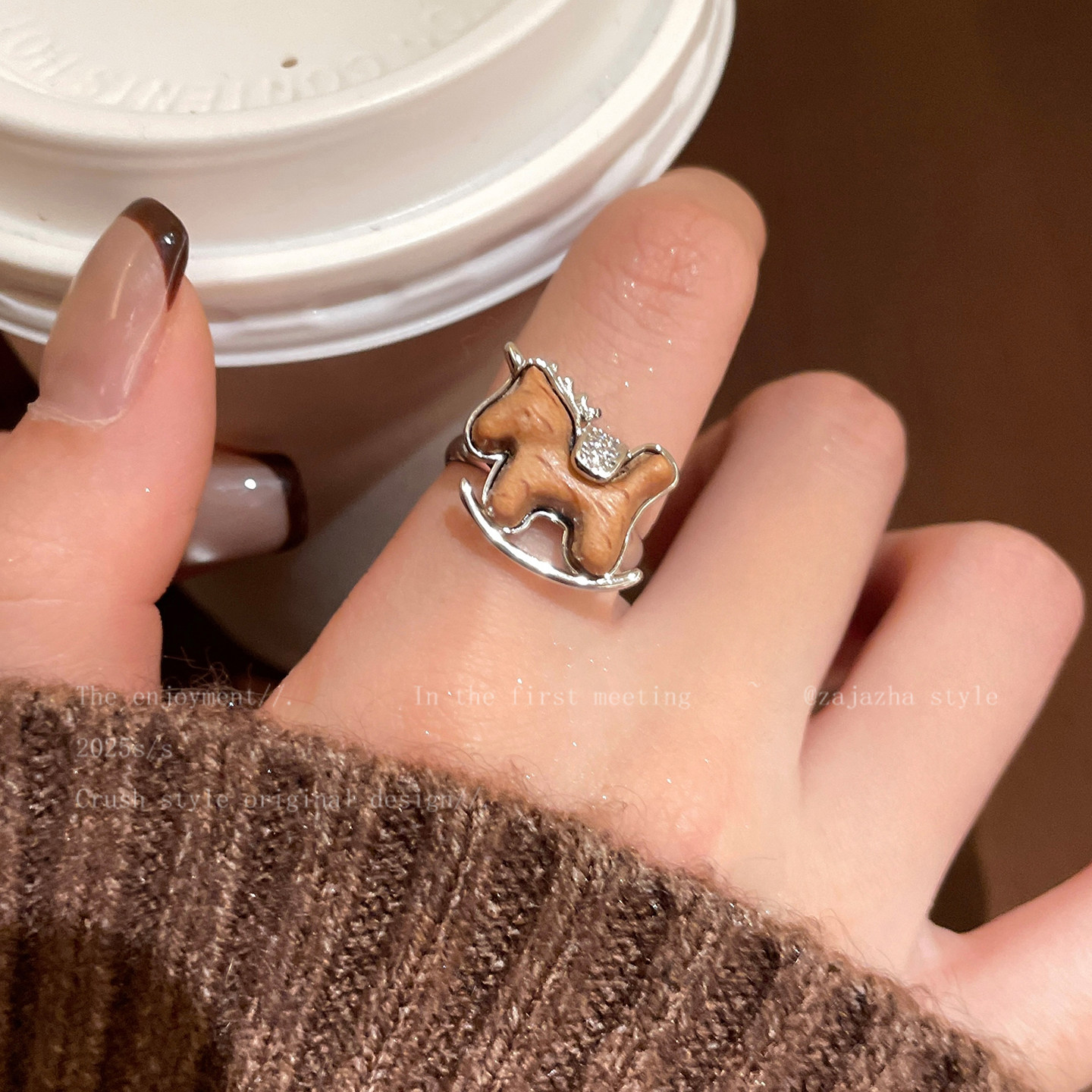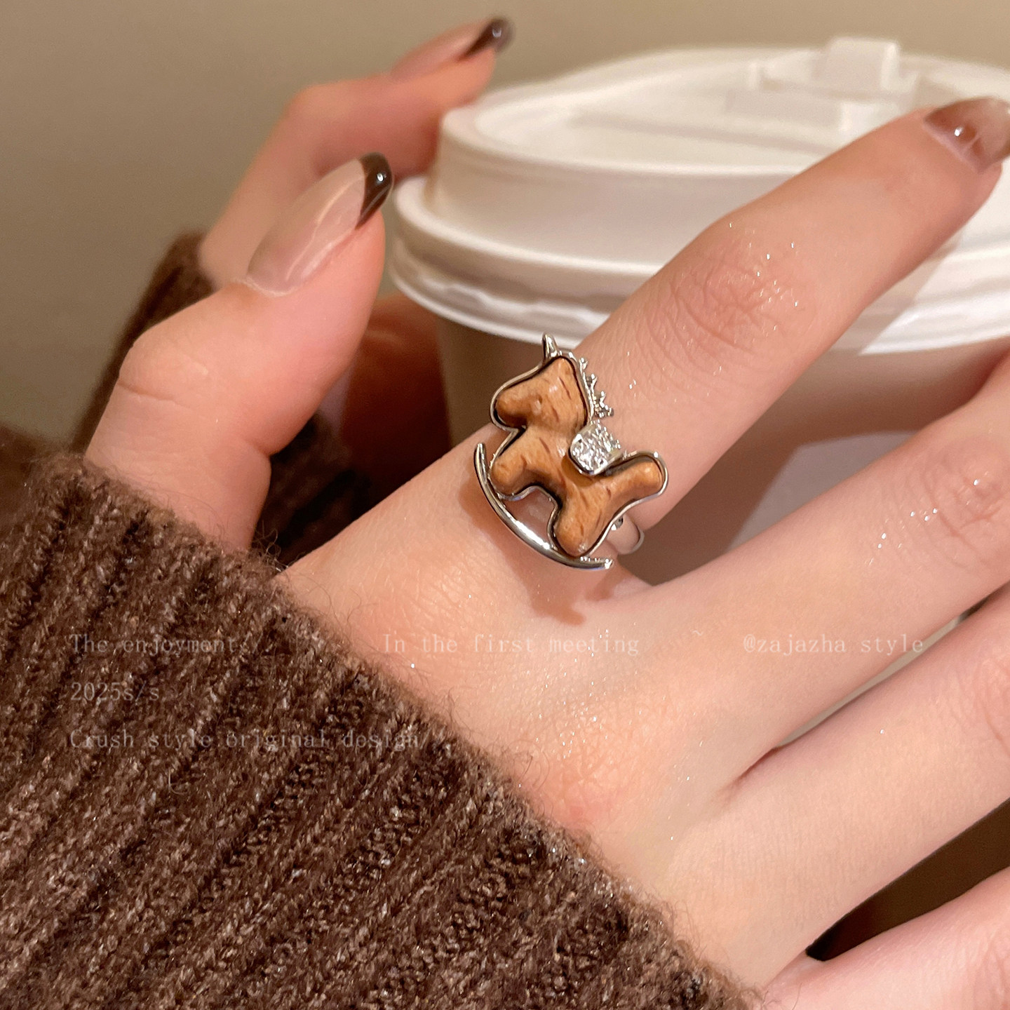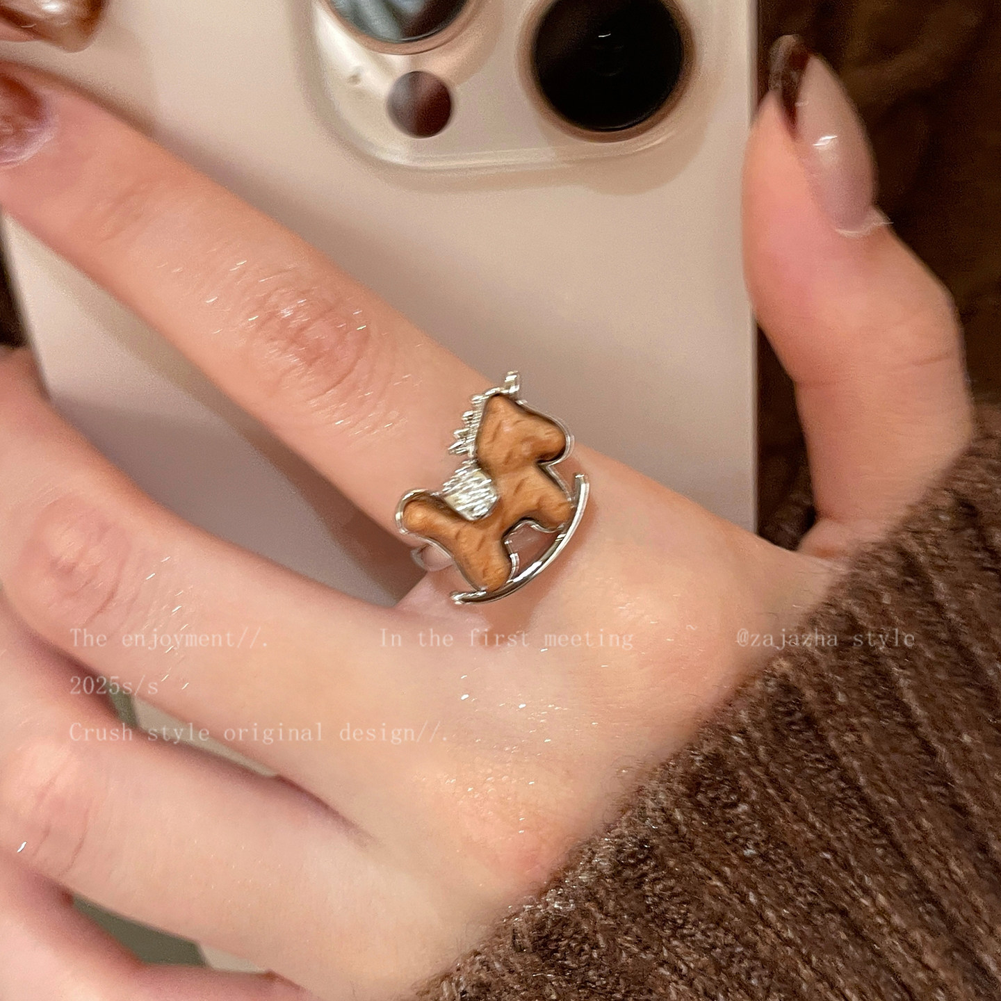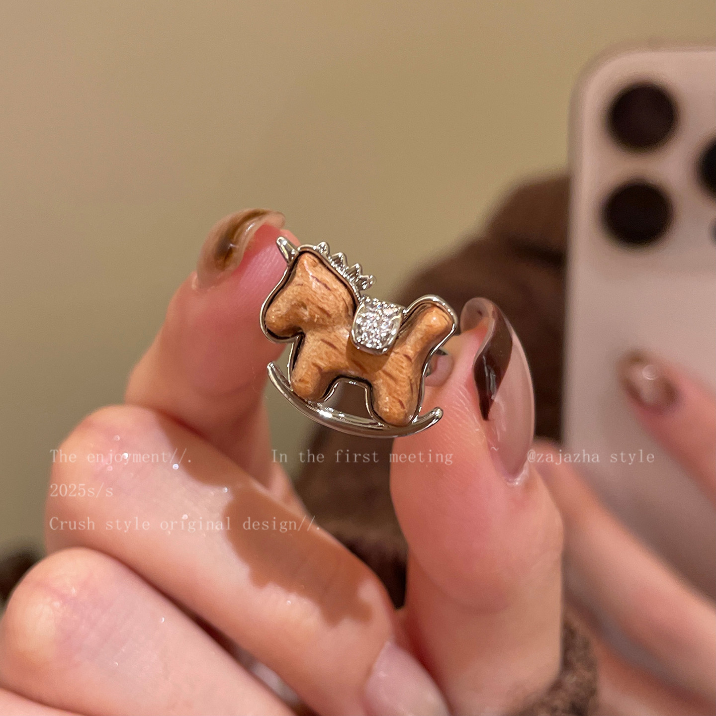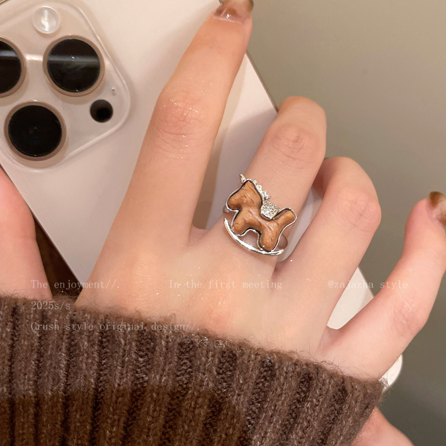 馬上有米~精緻木質小馬戒指女2026秋冬新款本命年食指戒獨特指環