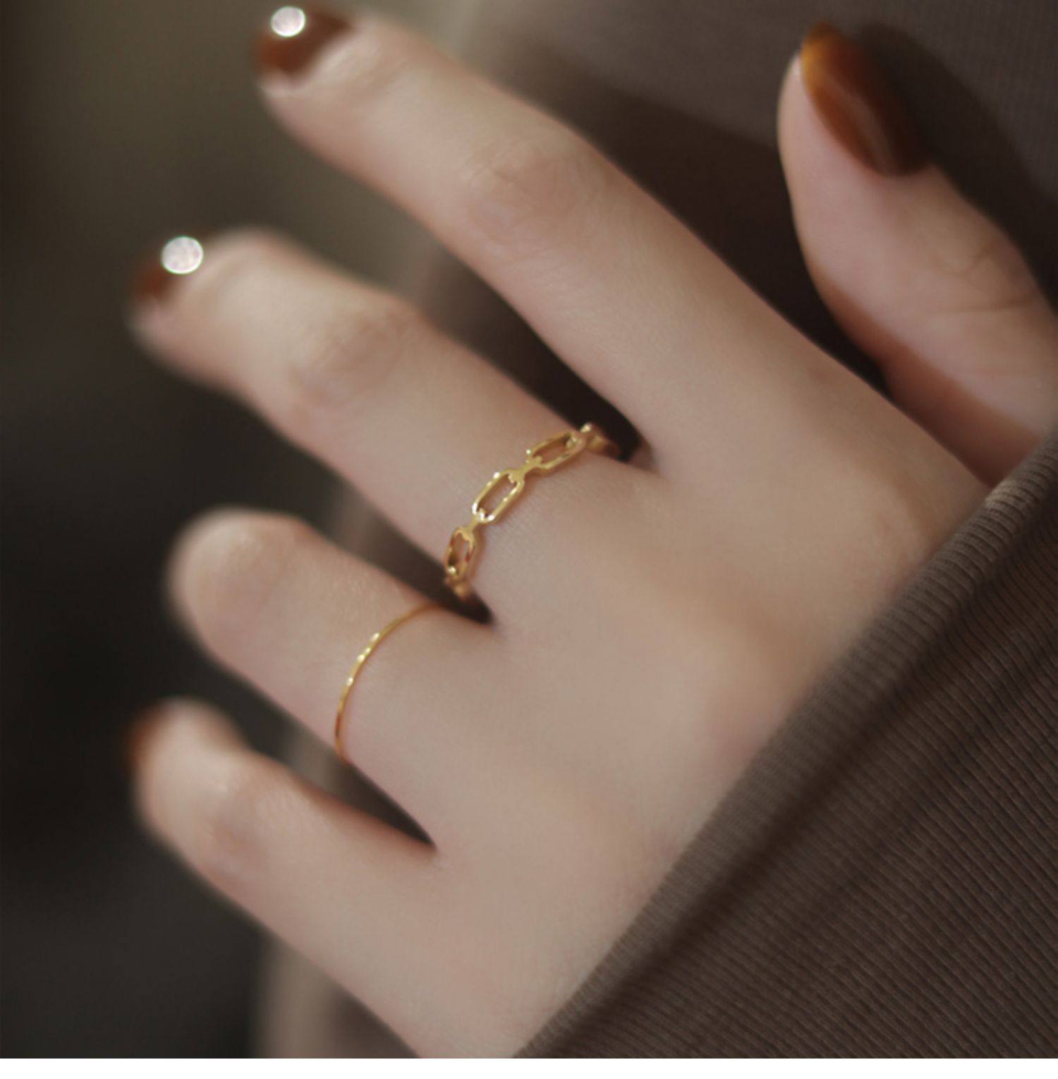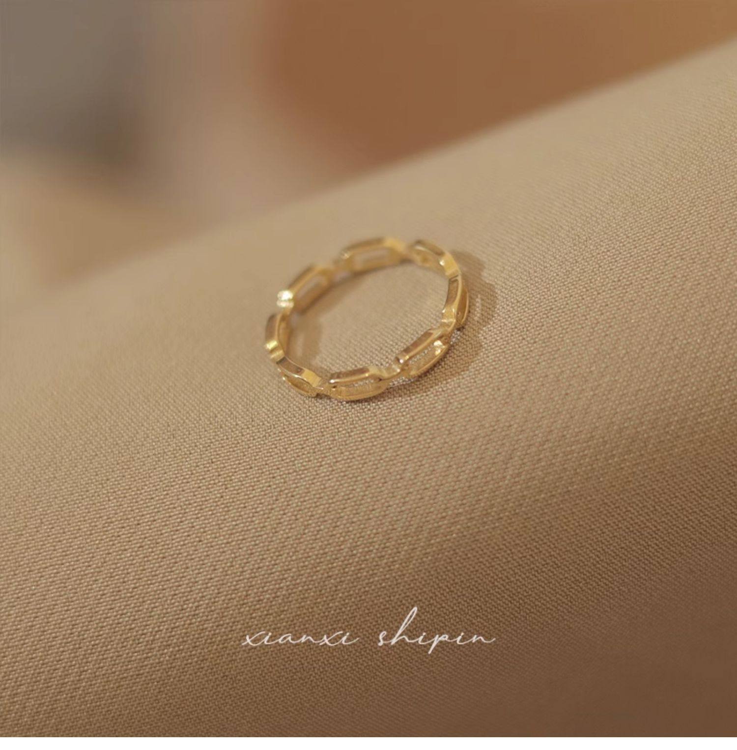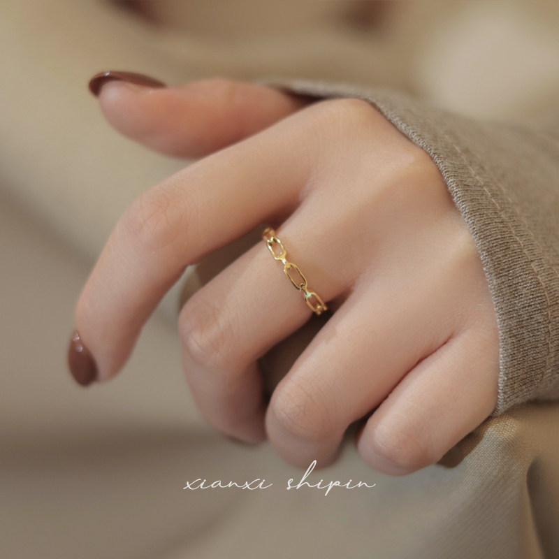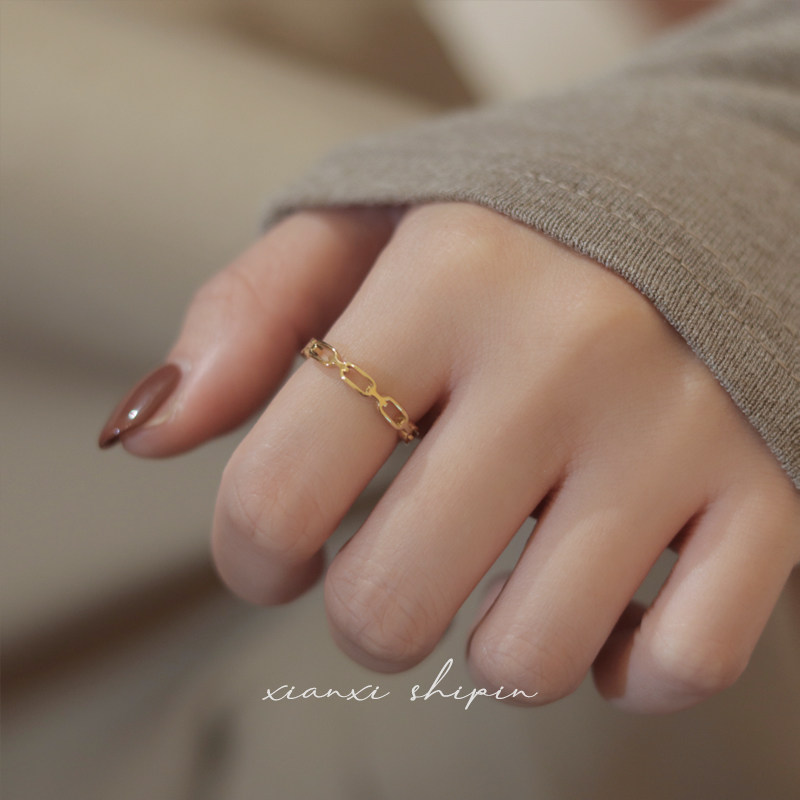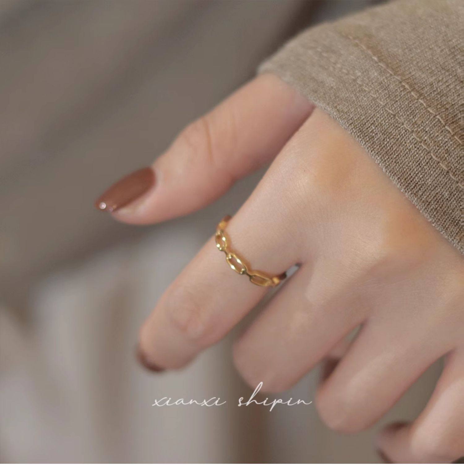 時尚鏈條戒指女鏤空設計小衆高級感不掉色食指戒ins簡約素圈配飾