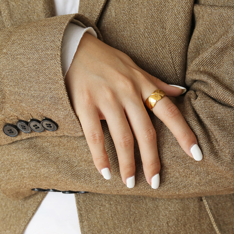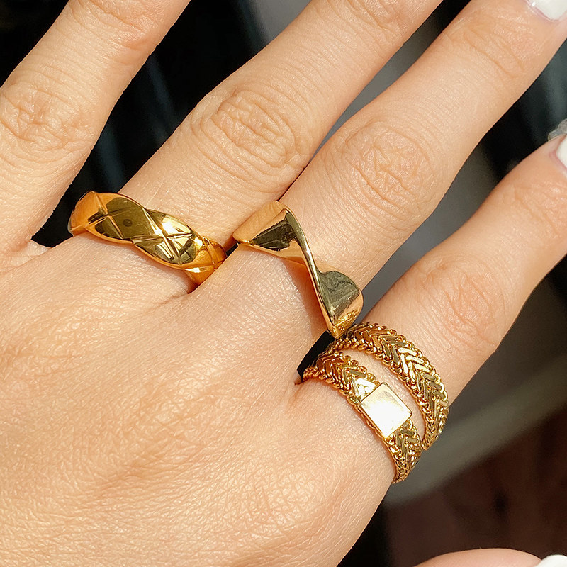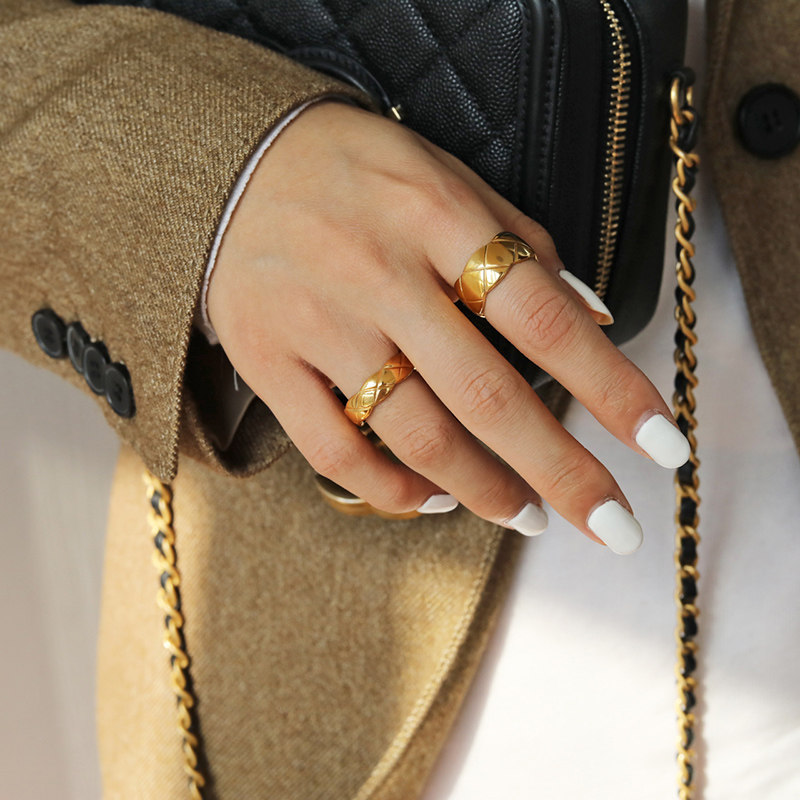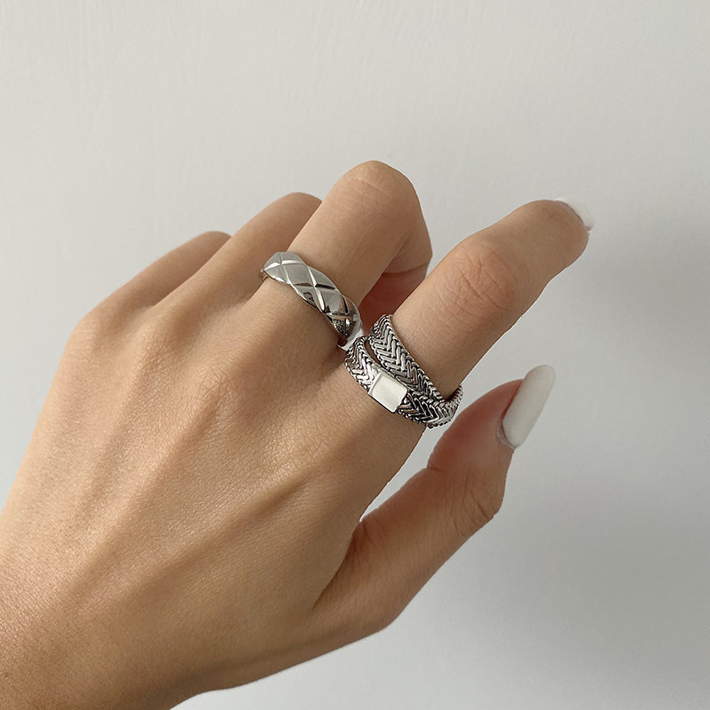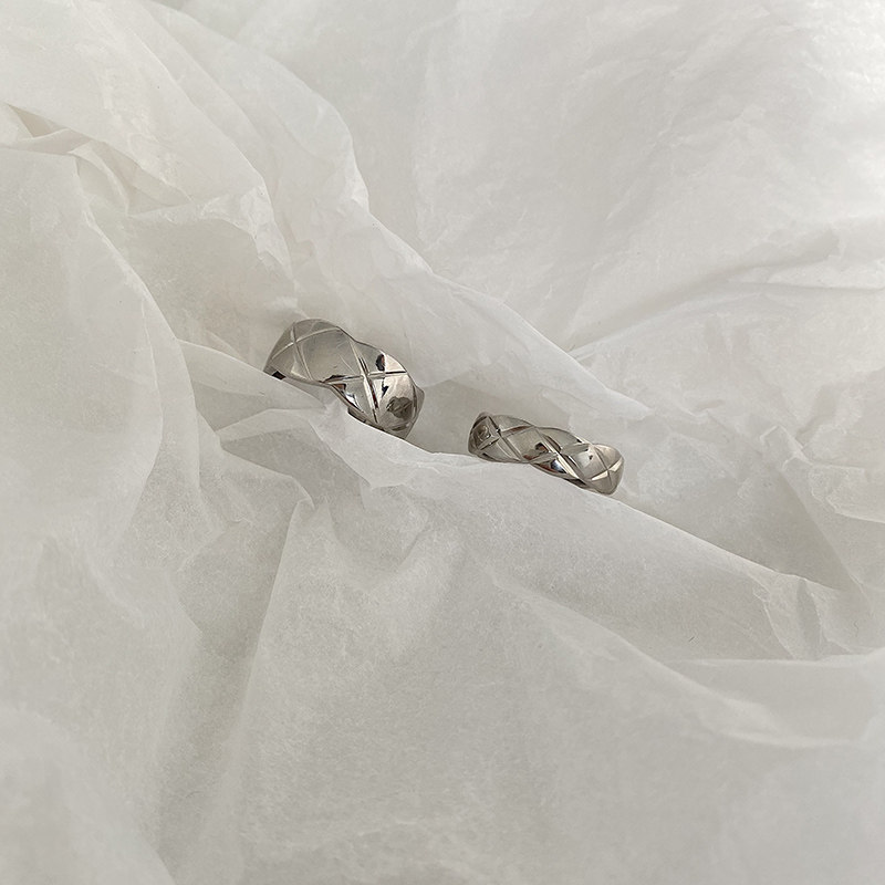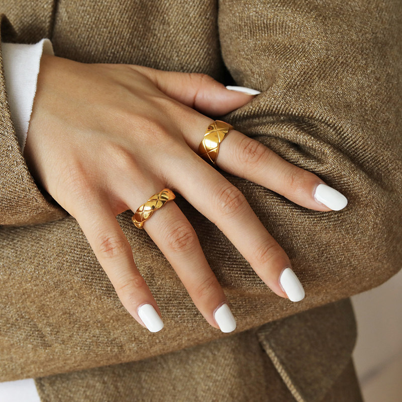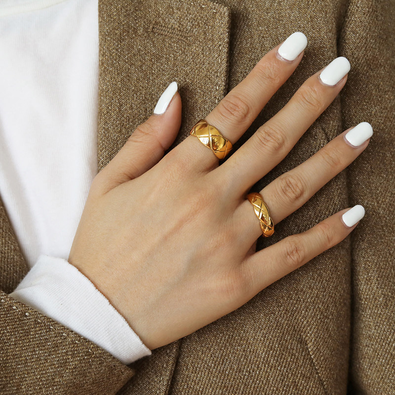 DOUDOU不掉色鈦鋼冷淡風菱格戒指設計金屬復古情侶對戒網紅男女
