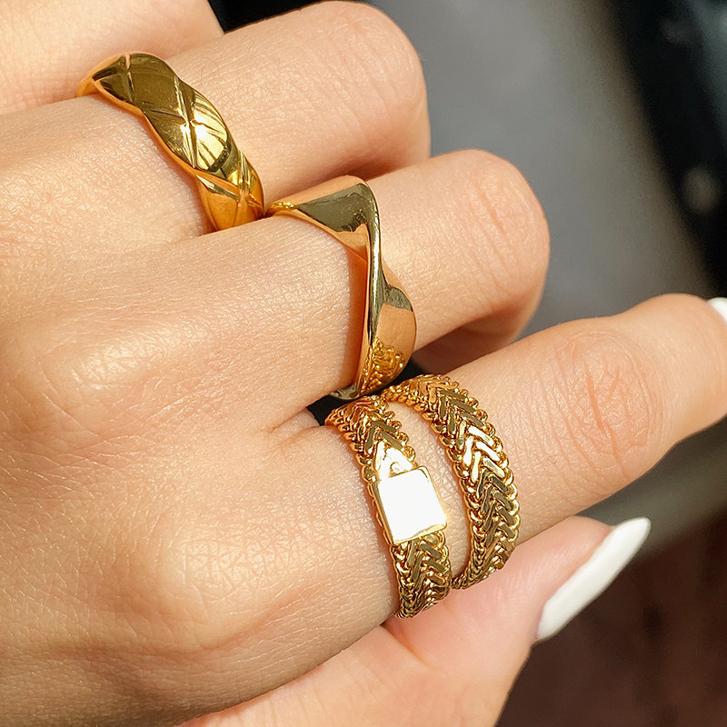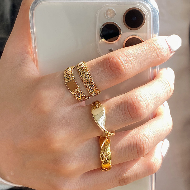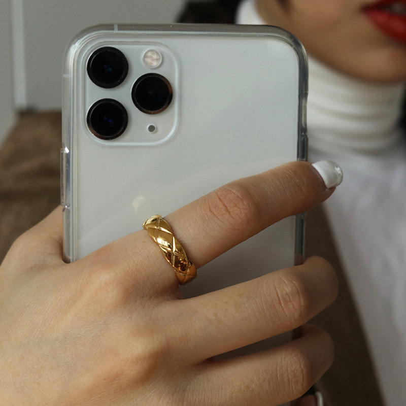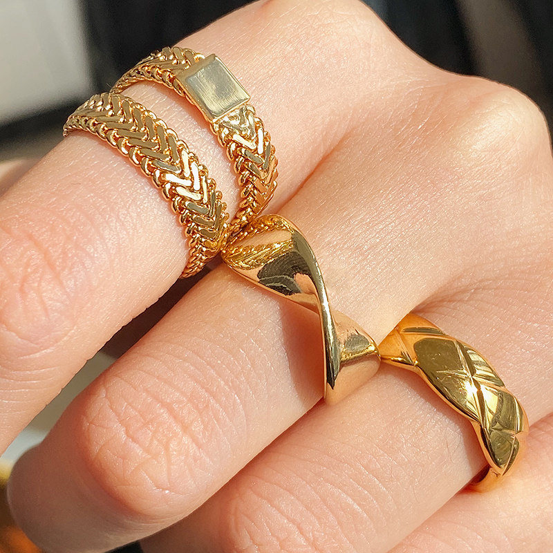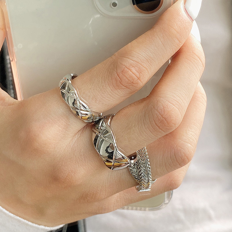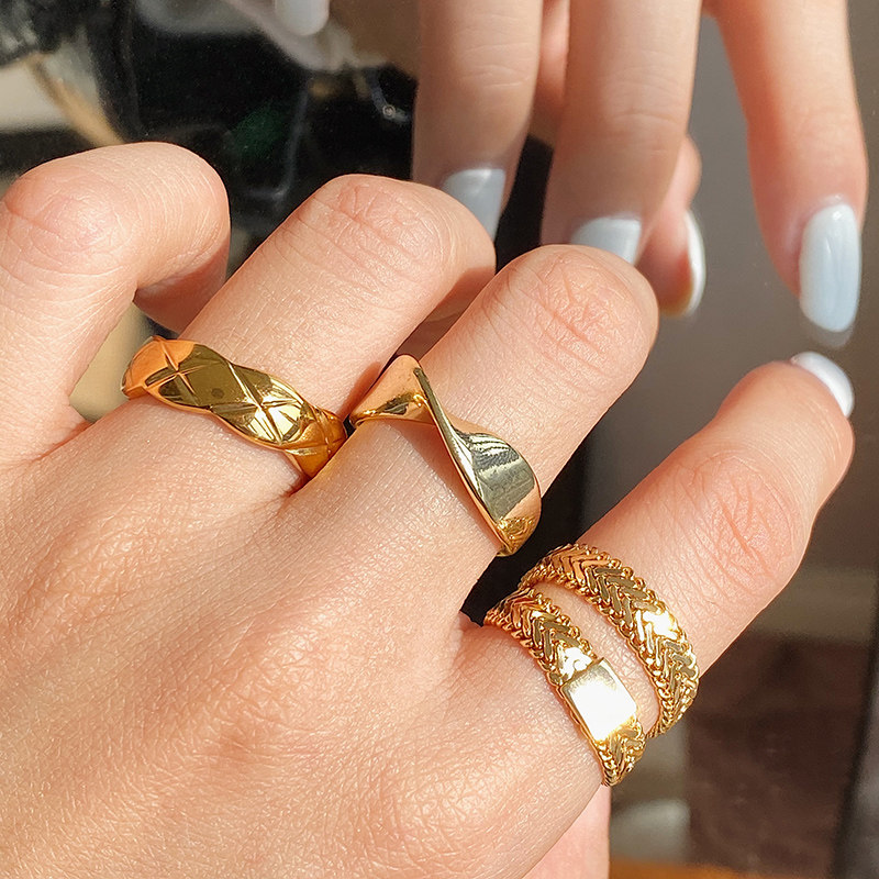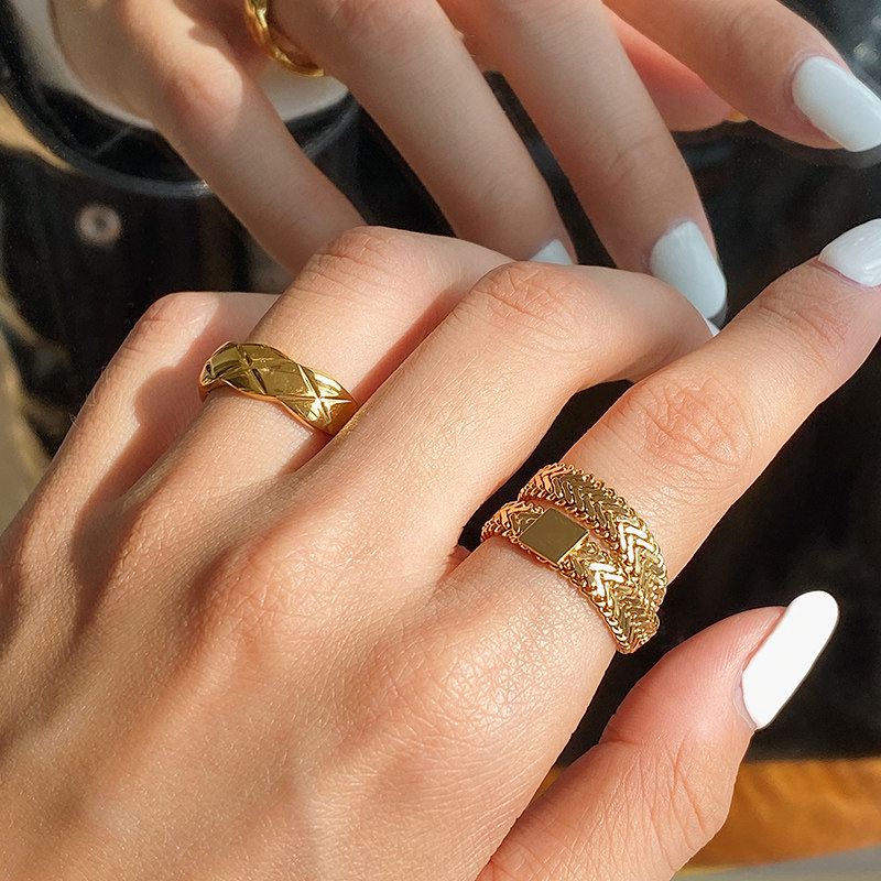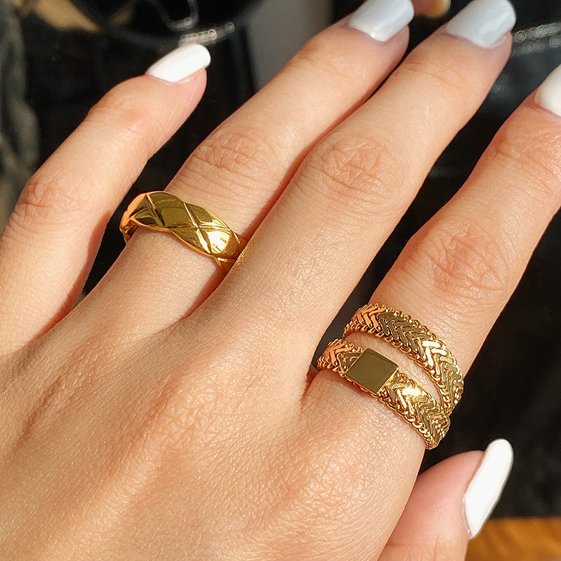 DOUDOU不掉色鈦鋼冷淡風菱格戒指設計金屬復古情侶對戒網紅男女