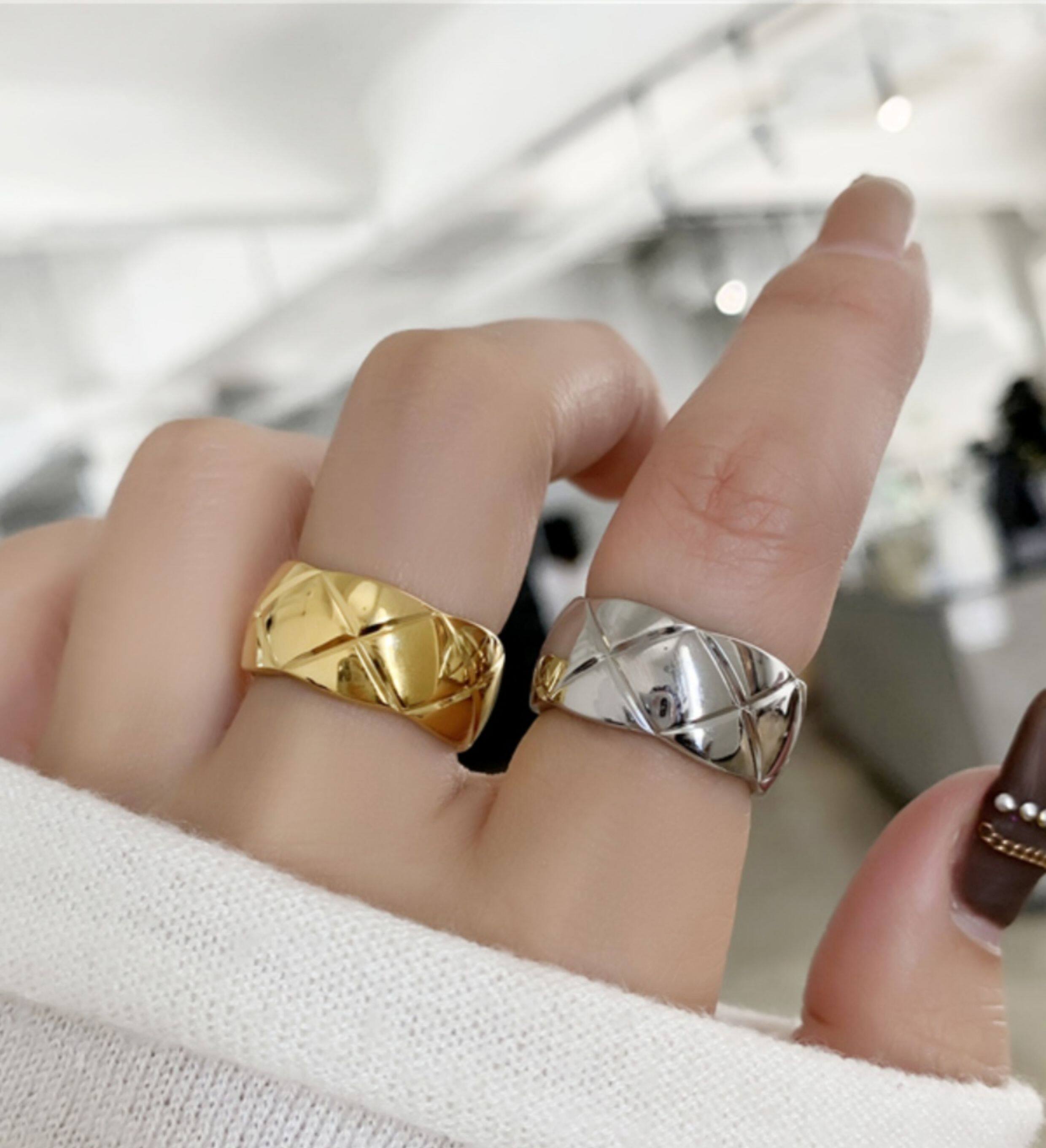 不掉色鈦鋼別樣氣質小姐姐高級感菱格戒指簡約網紅chic女戒