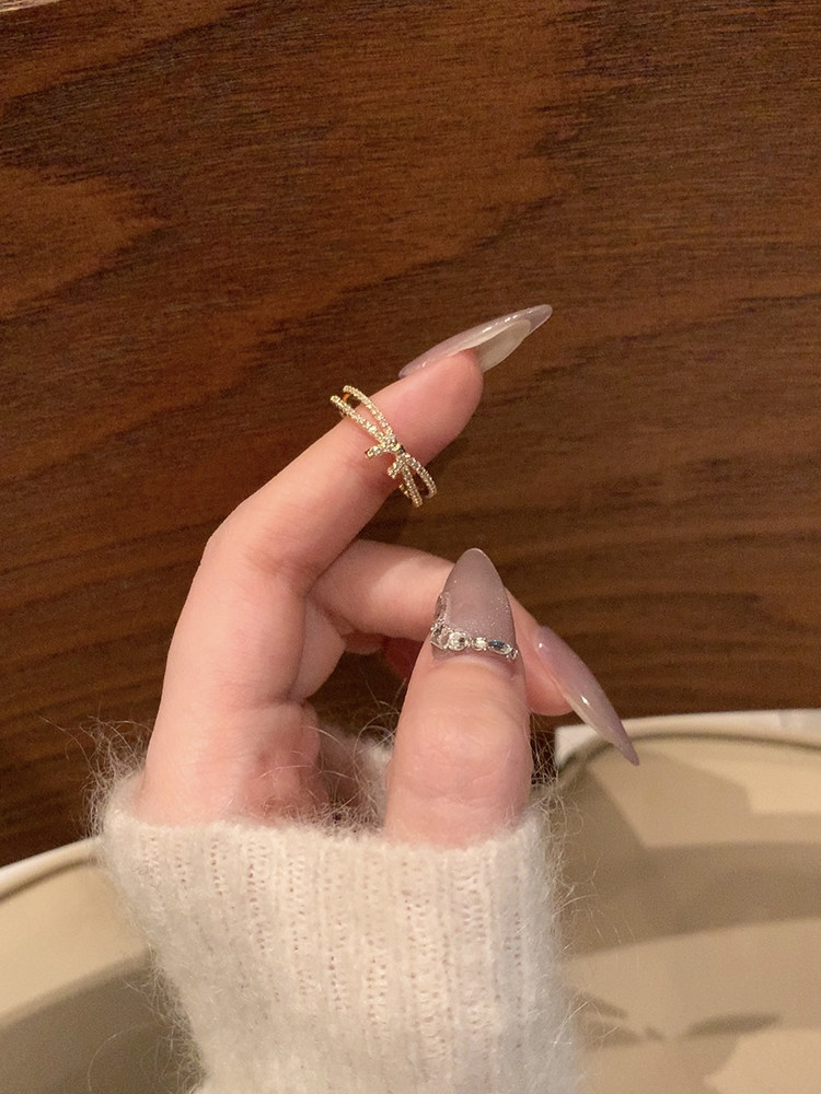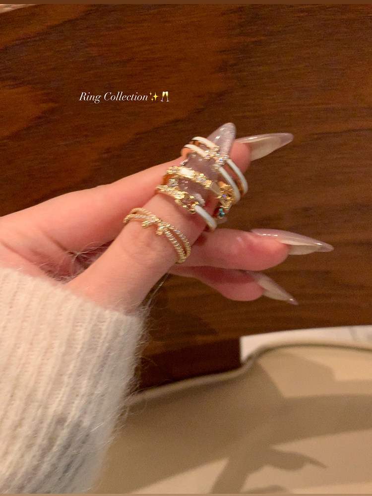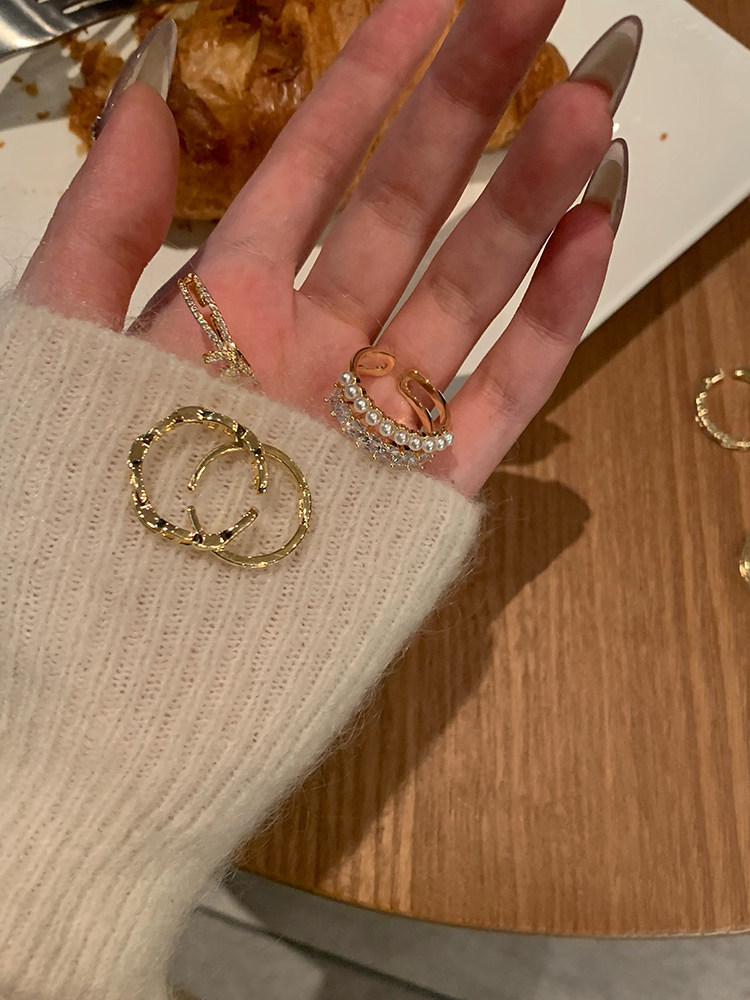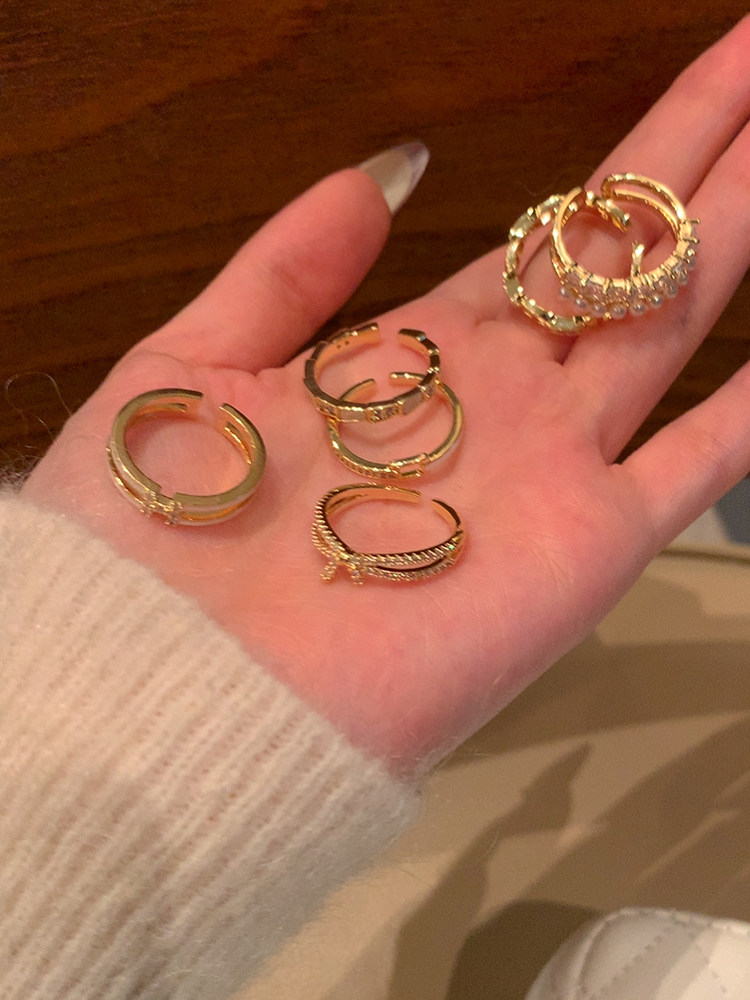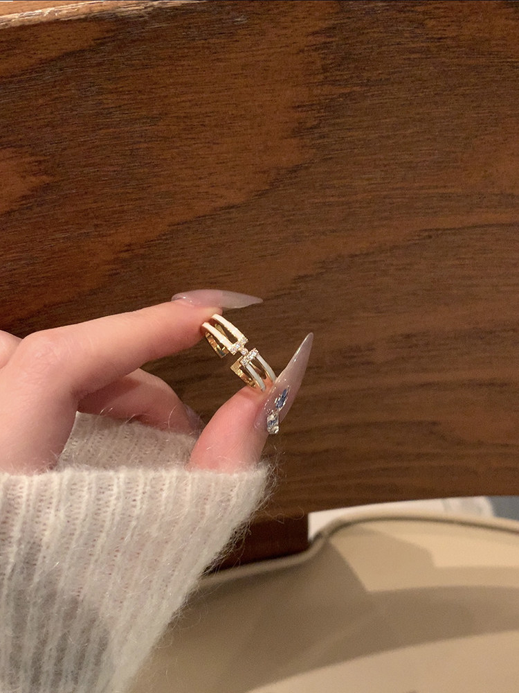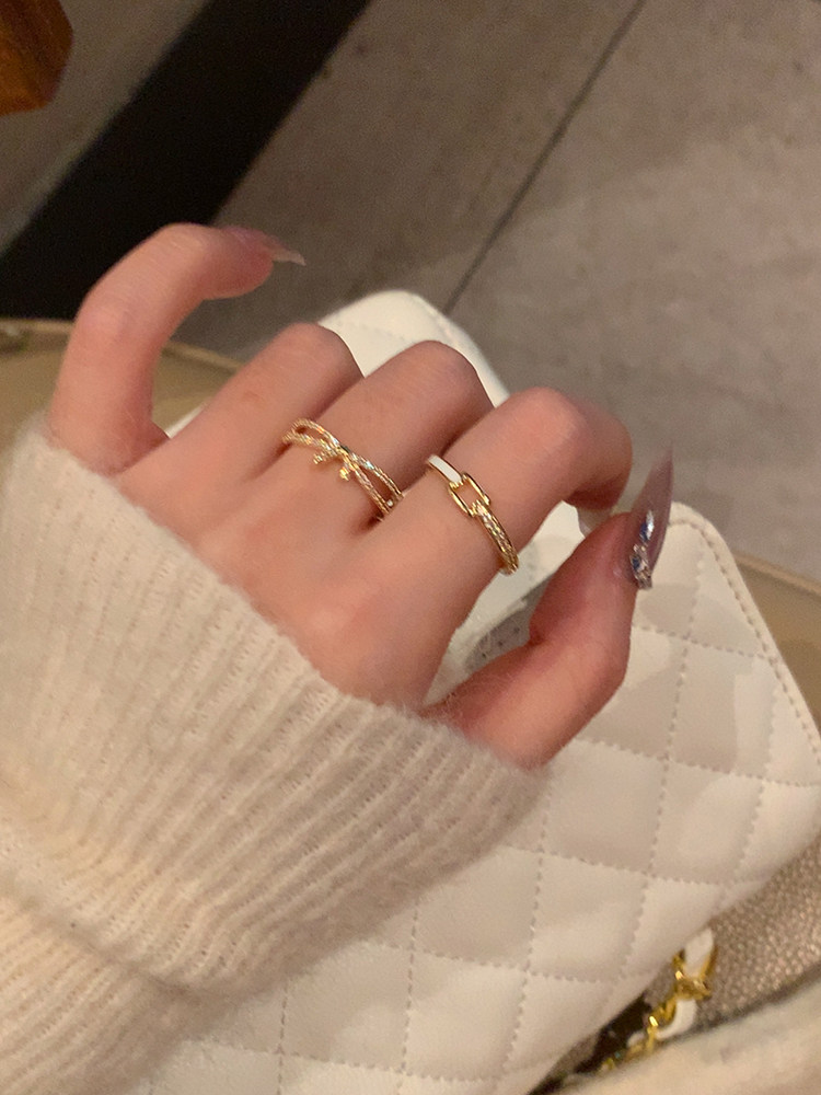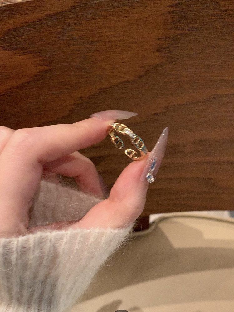 【蜜桃茶】搭配指南 金色開口戒指女時尚素圈尾戒小衆設計食指戒