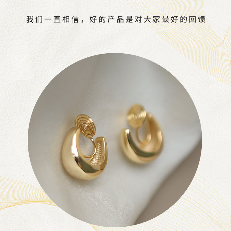 金色素圈輕奢金屬高級感蚊香盤耳夾無耳洞女新款耳釘無痛耳飾耳環