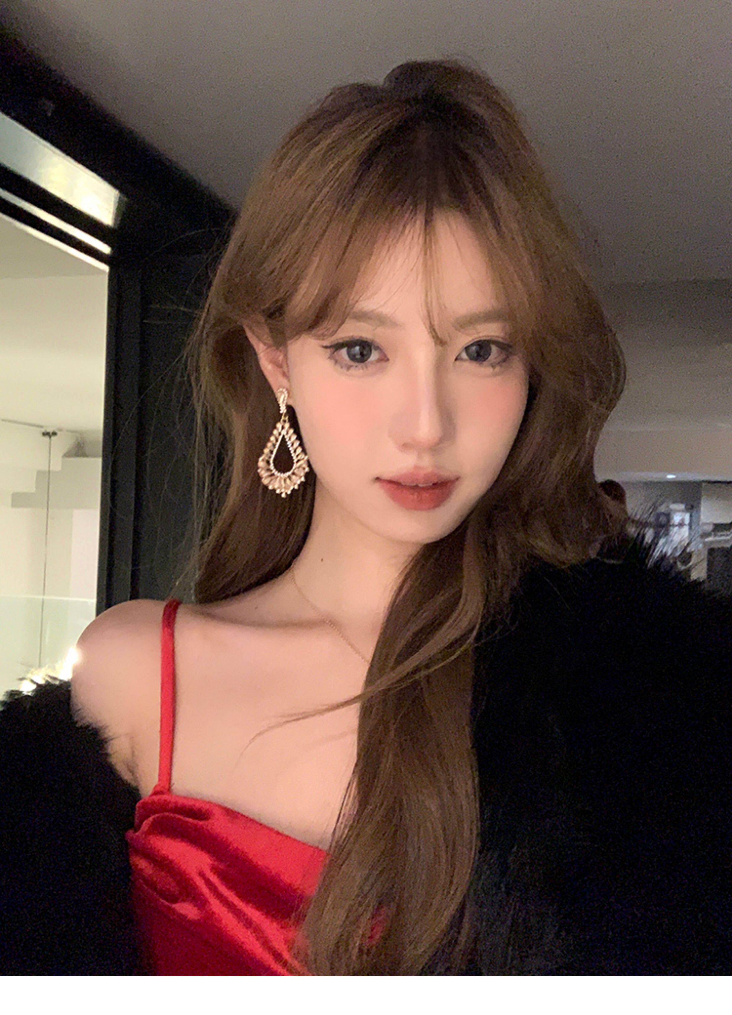 【蜜桃茶】千金party~閃鋯金色鏤空耳環女高級感輕奢貴氣誇張耳飾