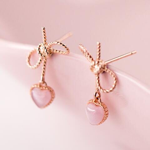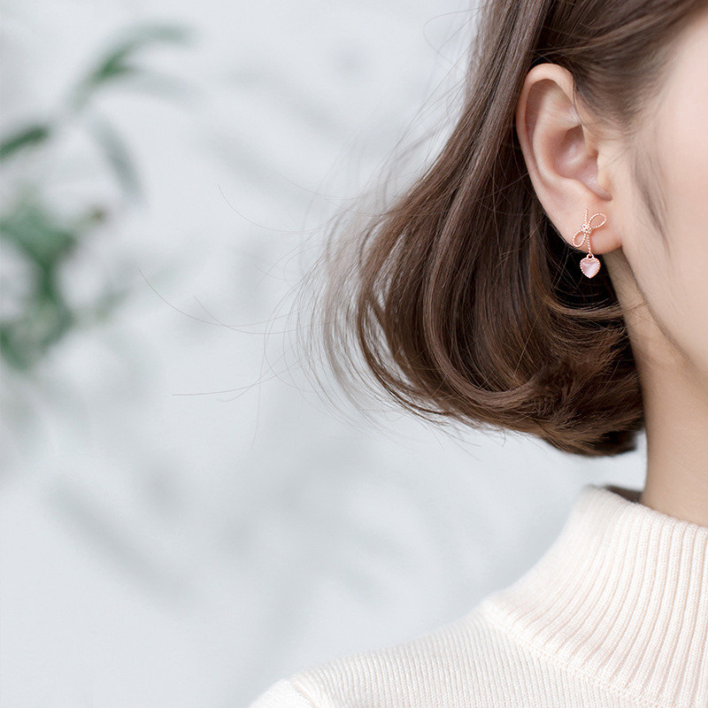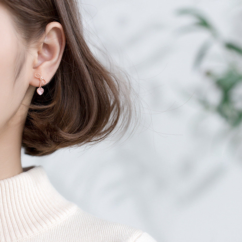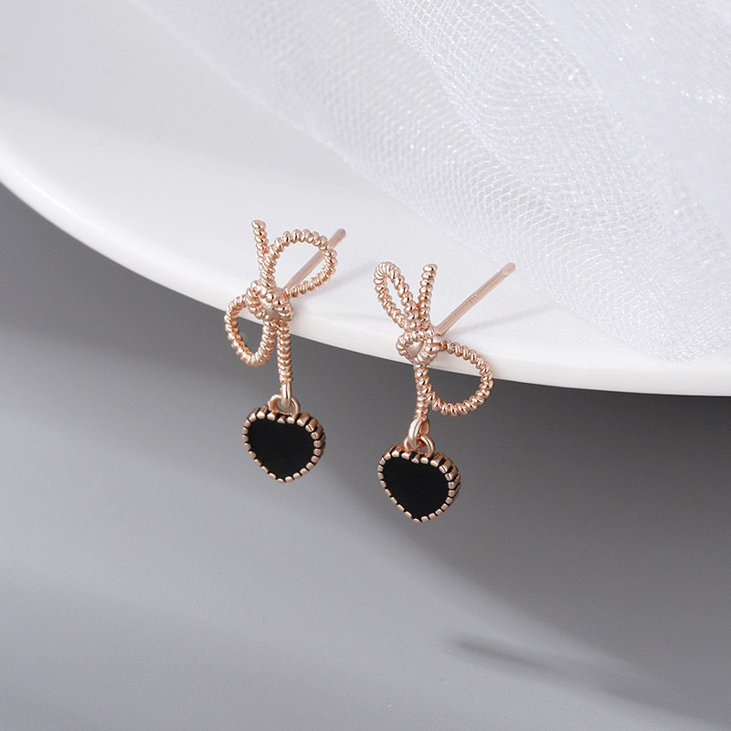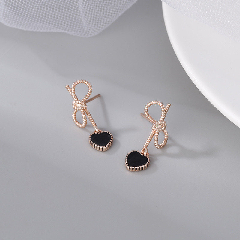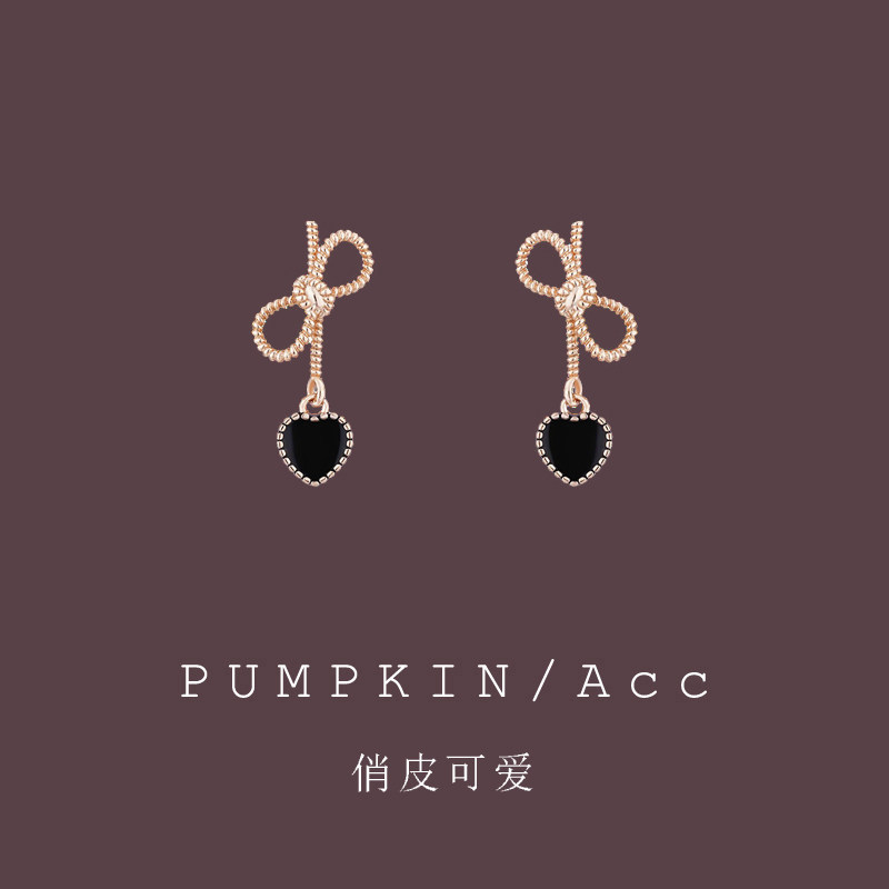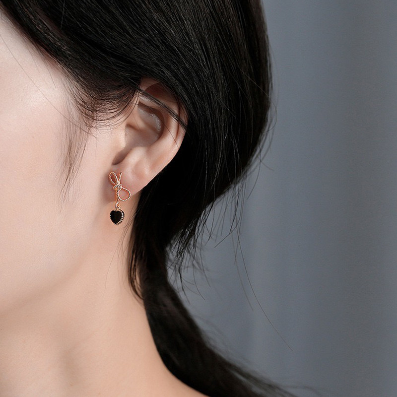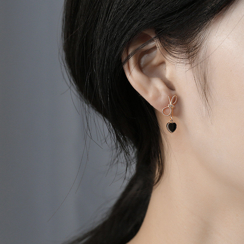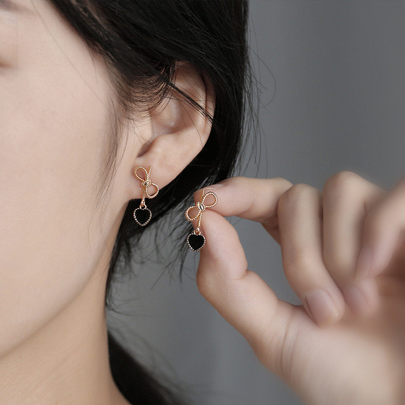 黑色桃心蝴蝶結短款耳環輕奢高級感耳墜法式復古心形耳飾甜美耳夾