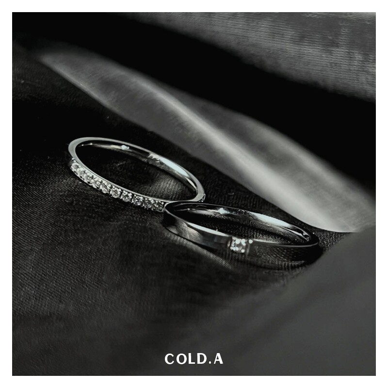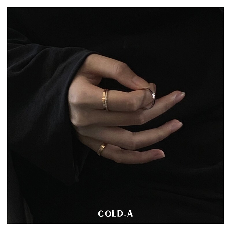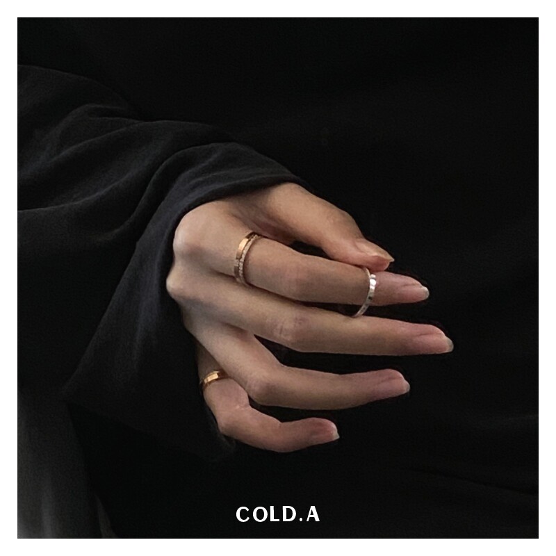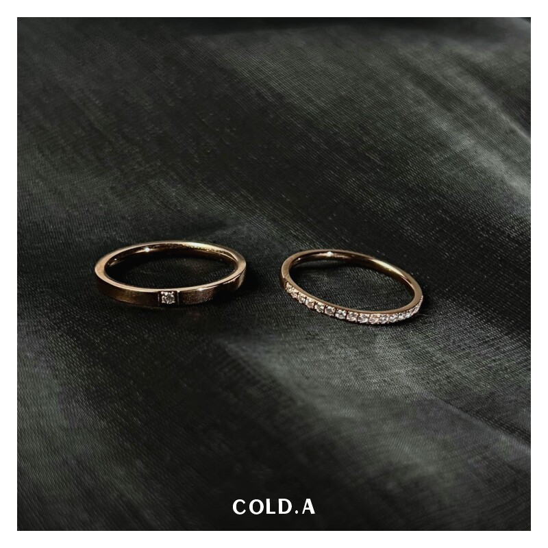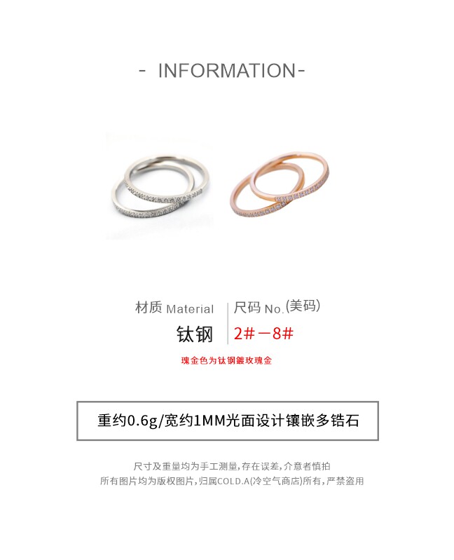 鍾情/不掉色鈦鋼戒指女情侶款對戒閉口鋯石曡戴自律尾戒男小指