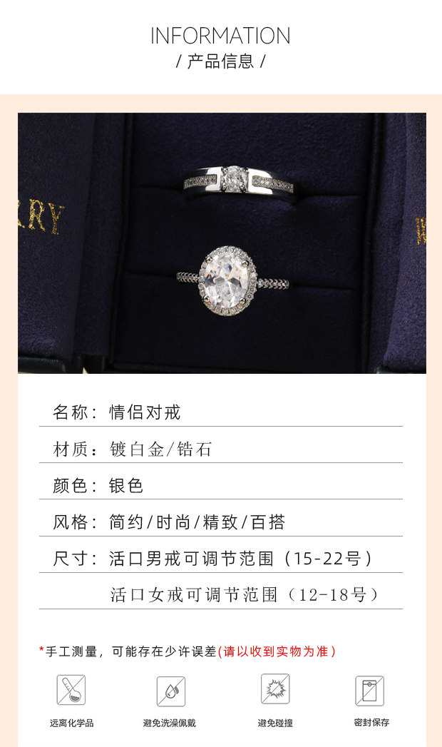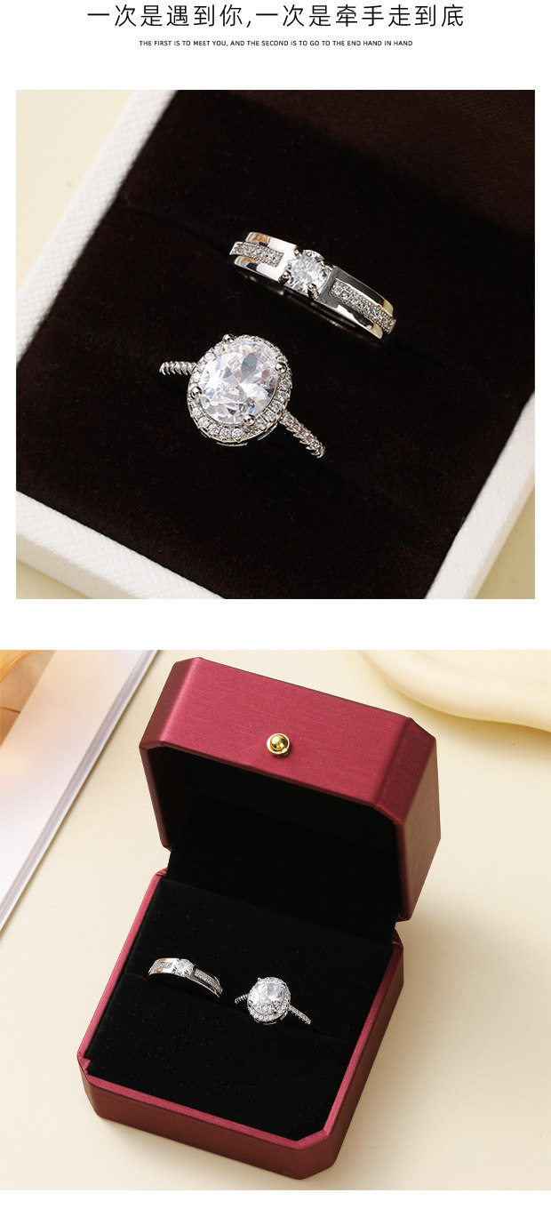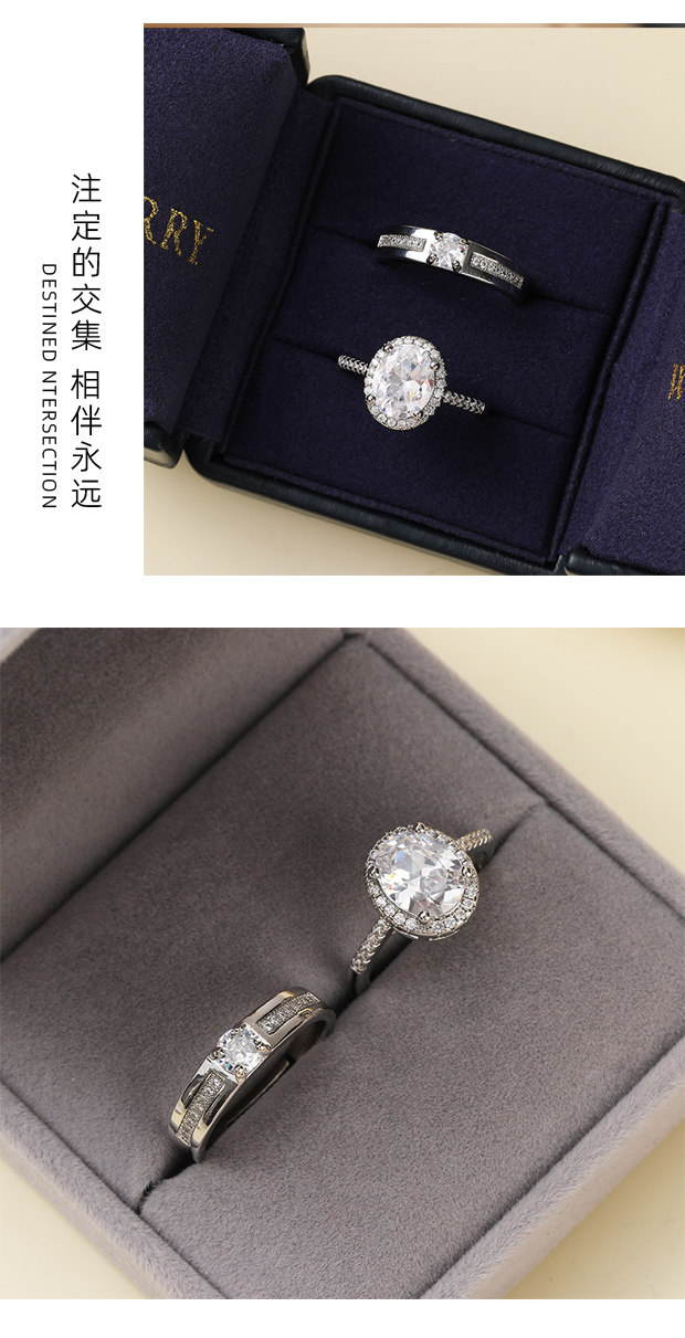 奢華款結婚仿真活口對戒橢圓形鴿子蛋克拉假鑽戒婚禮儀式道具