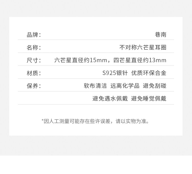 【巷南】925銀六芒星耳環小衆設計女耳釘2026新款爆款耳飾高級感