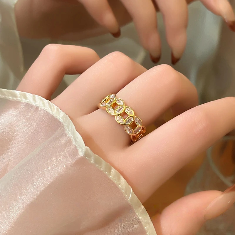 新中式滿鑽錢多多戒指女輕奢高級感24k金電鍍銅錢招財指環不掉色