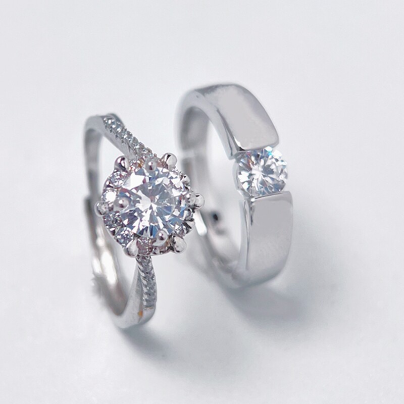 仿真鑽石婚戒情侶一對結婚對戒求婚婚禮假鑽戒道具戒指活口可調節