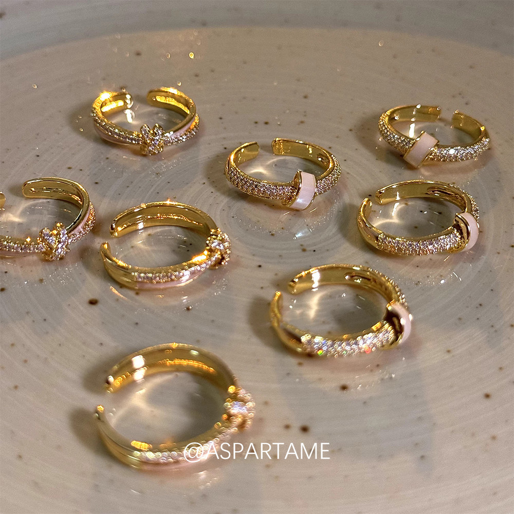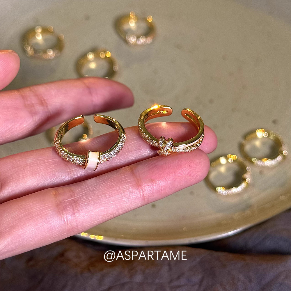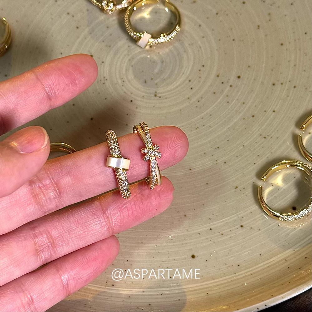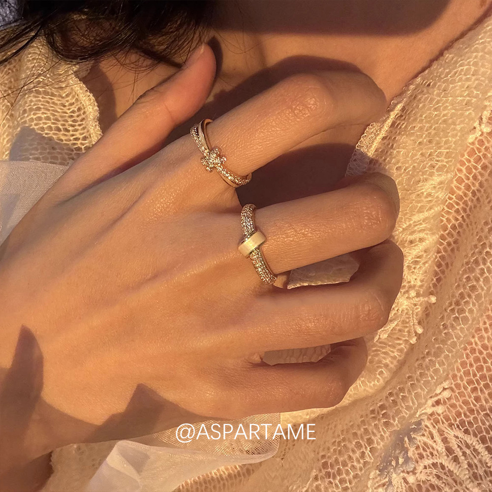 阿斯巴甜 法式溫柔白貝微鑲鋯石指環精緻設計感閃鑽高級感戒指
