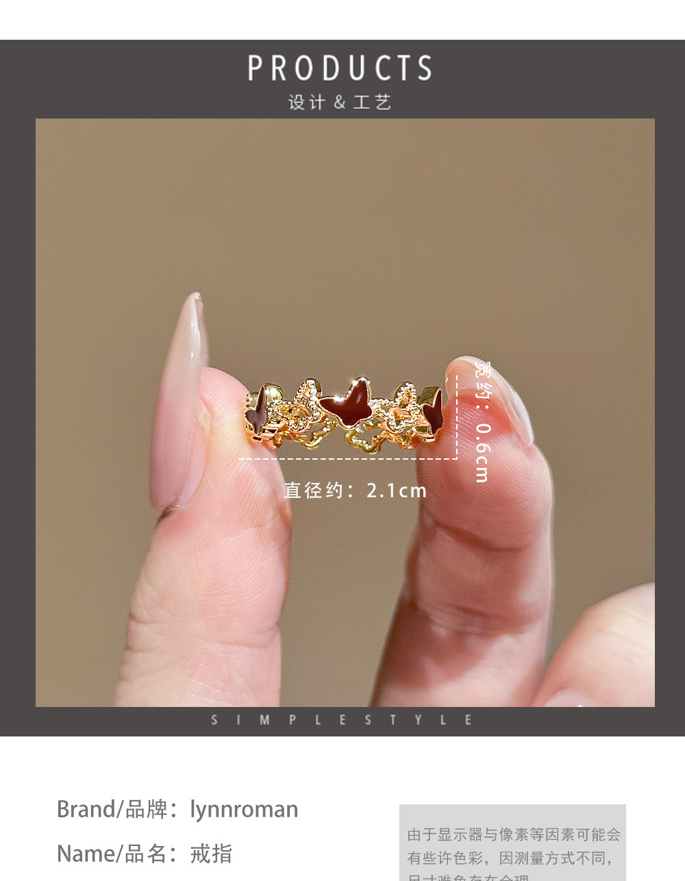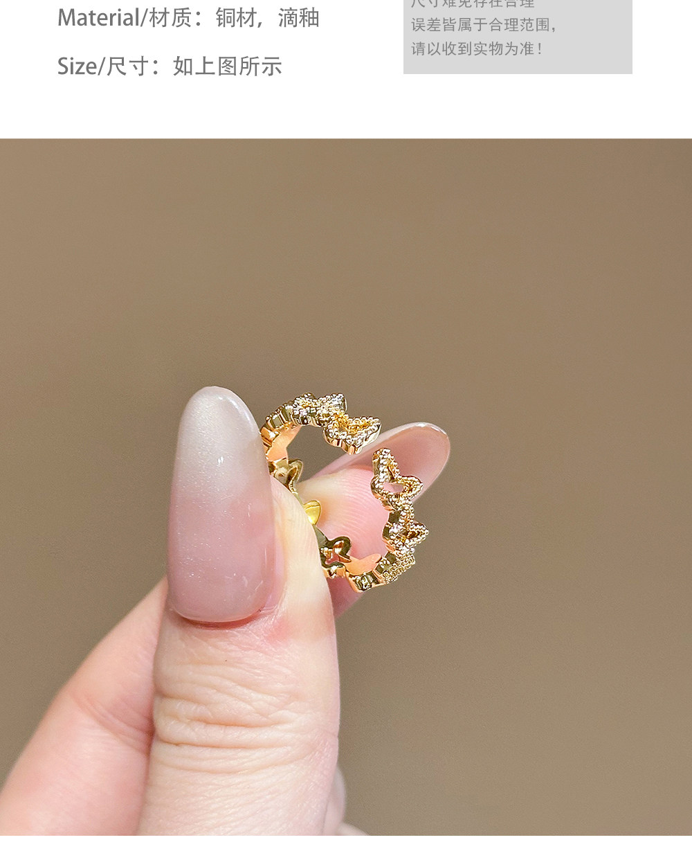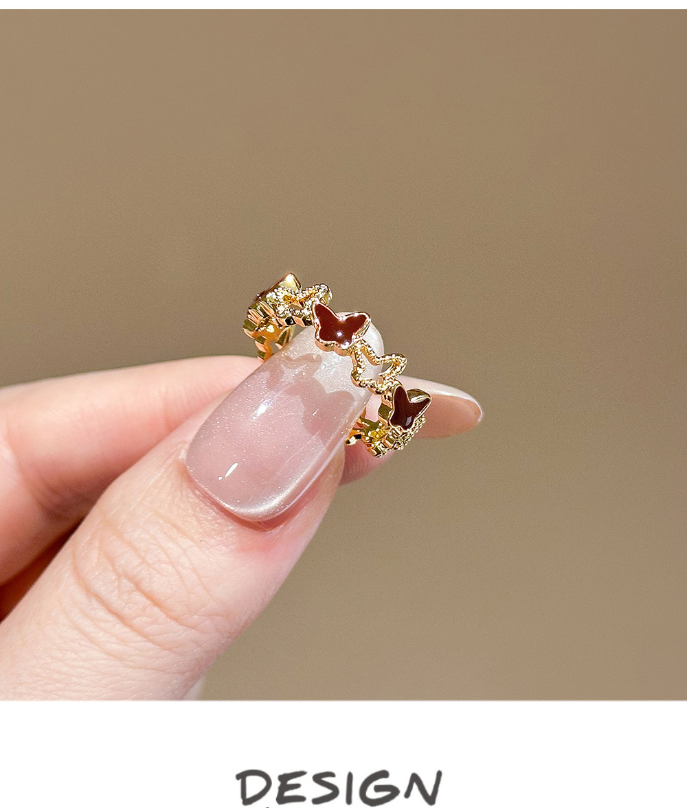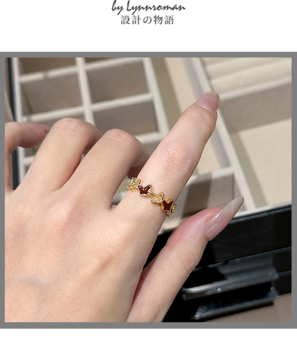 LYNNROMAN紅色滴釉蝴蝶戒指鏤空開口可調節食指戒女輕奢小衆指環