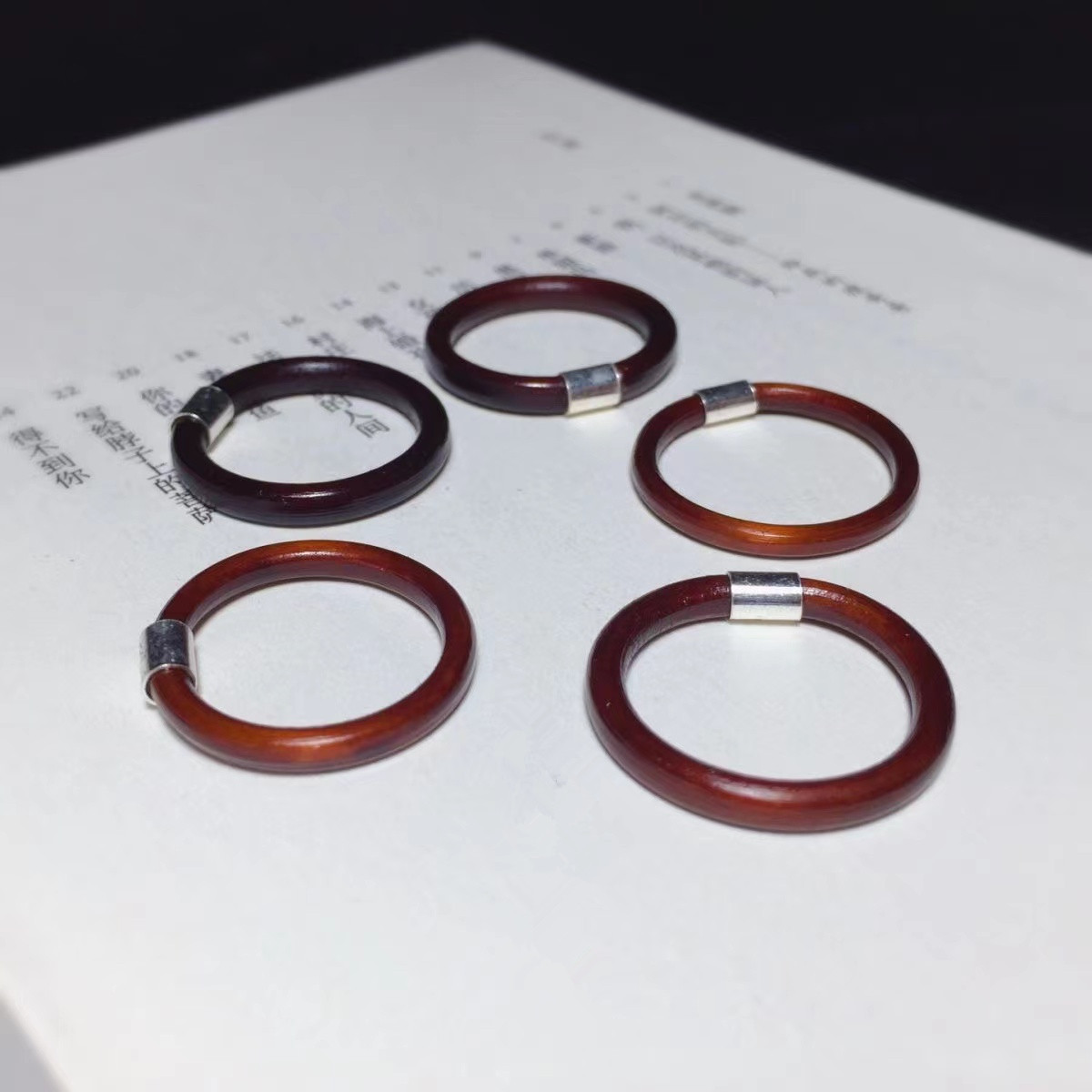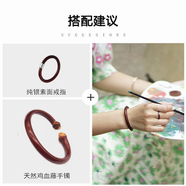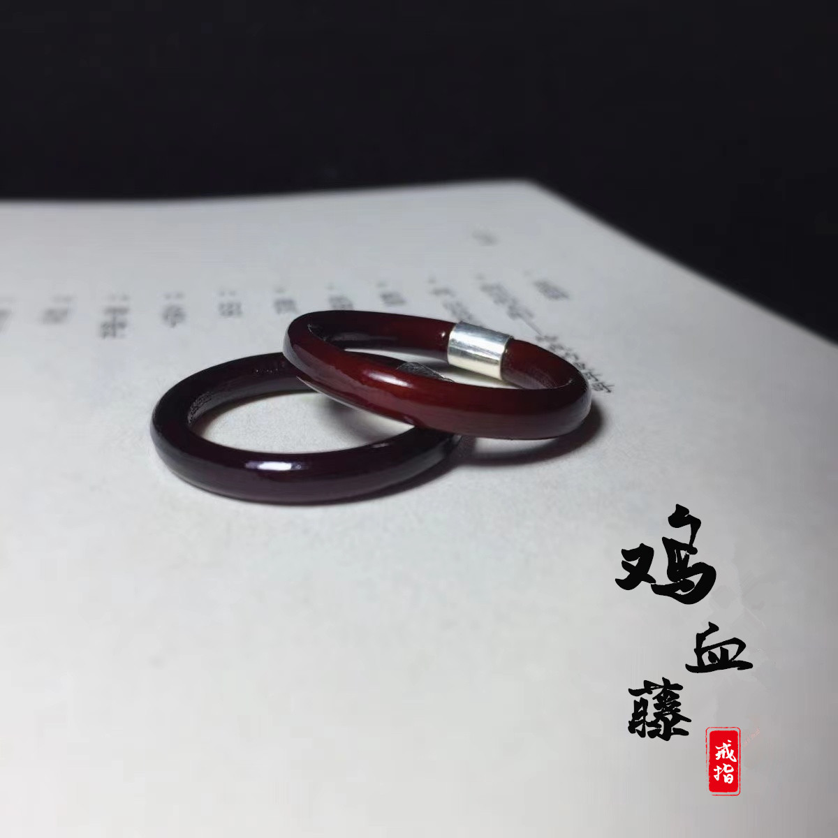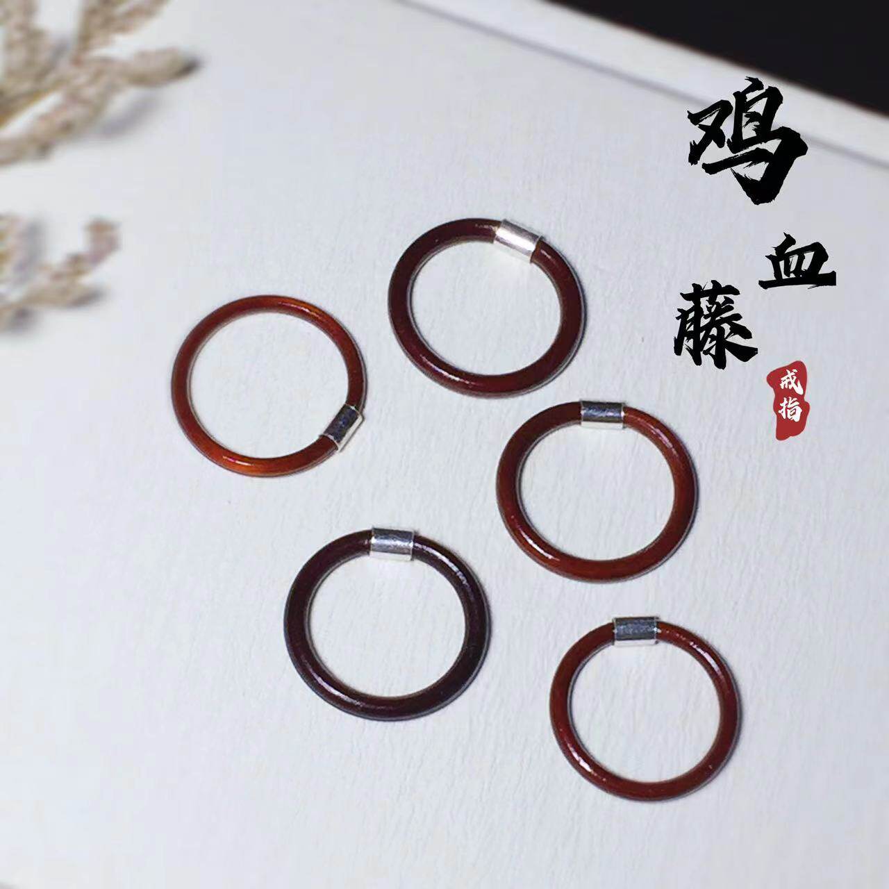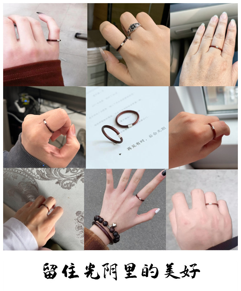 雞血藤戒指女男單身情侶對戒小衆簡約素尾戒本命年小指木手工指環