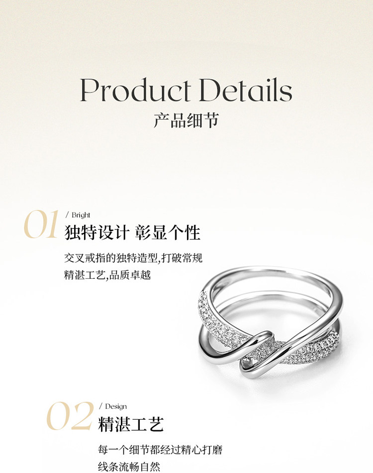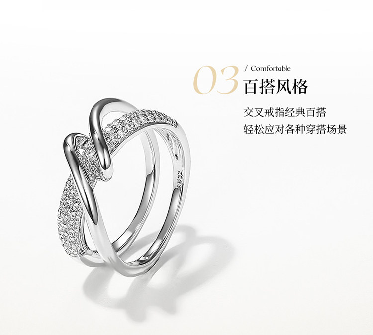 ZENGLIU交叉戒指女輕奢小衆設計精緻簡約冷淡風個性秋冬食指戒子