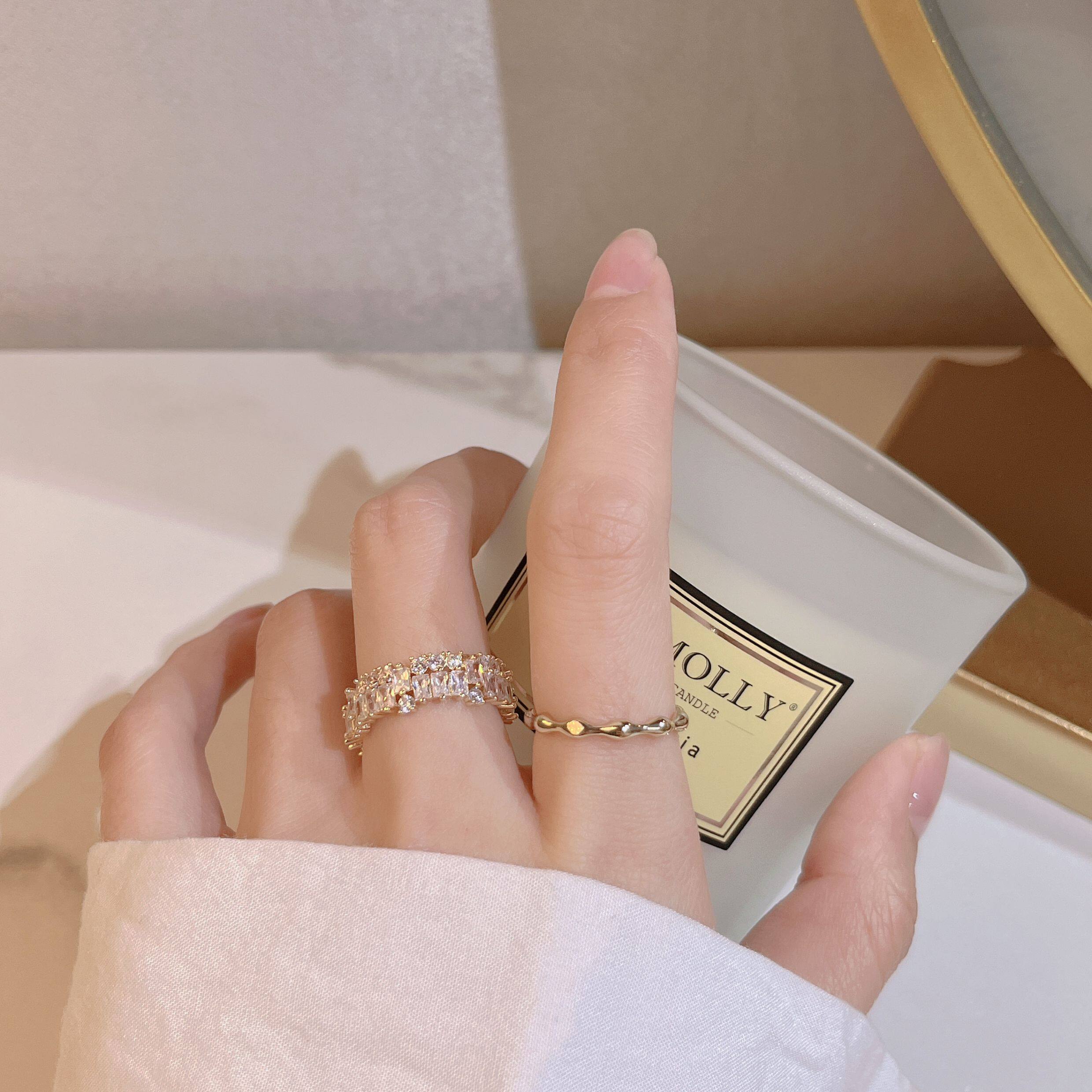 因缺斯汀超仙精緻開口戒指曡戴套裝簡約氣質百搭組合戒指小衆