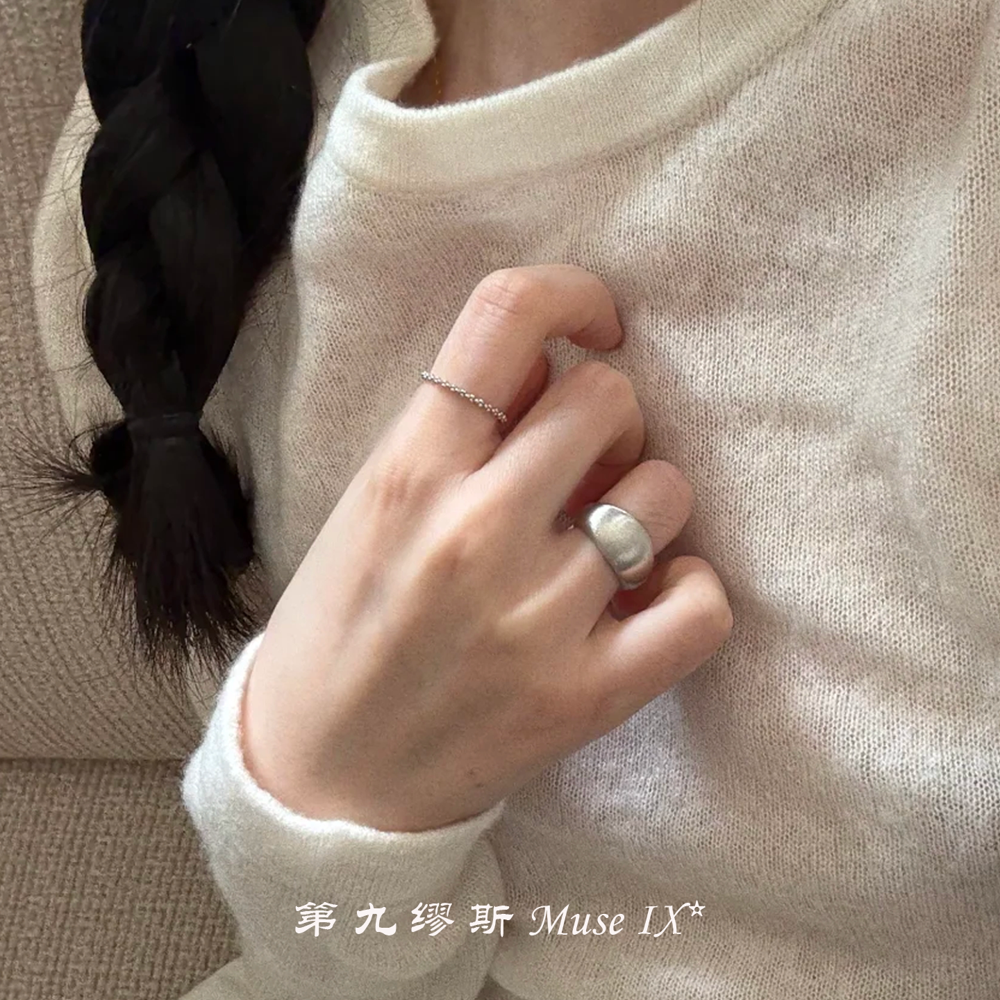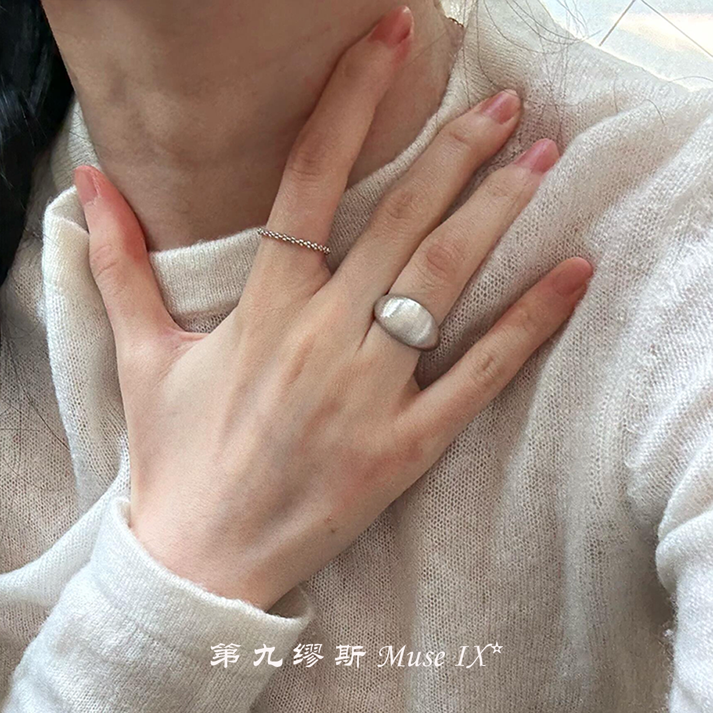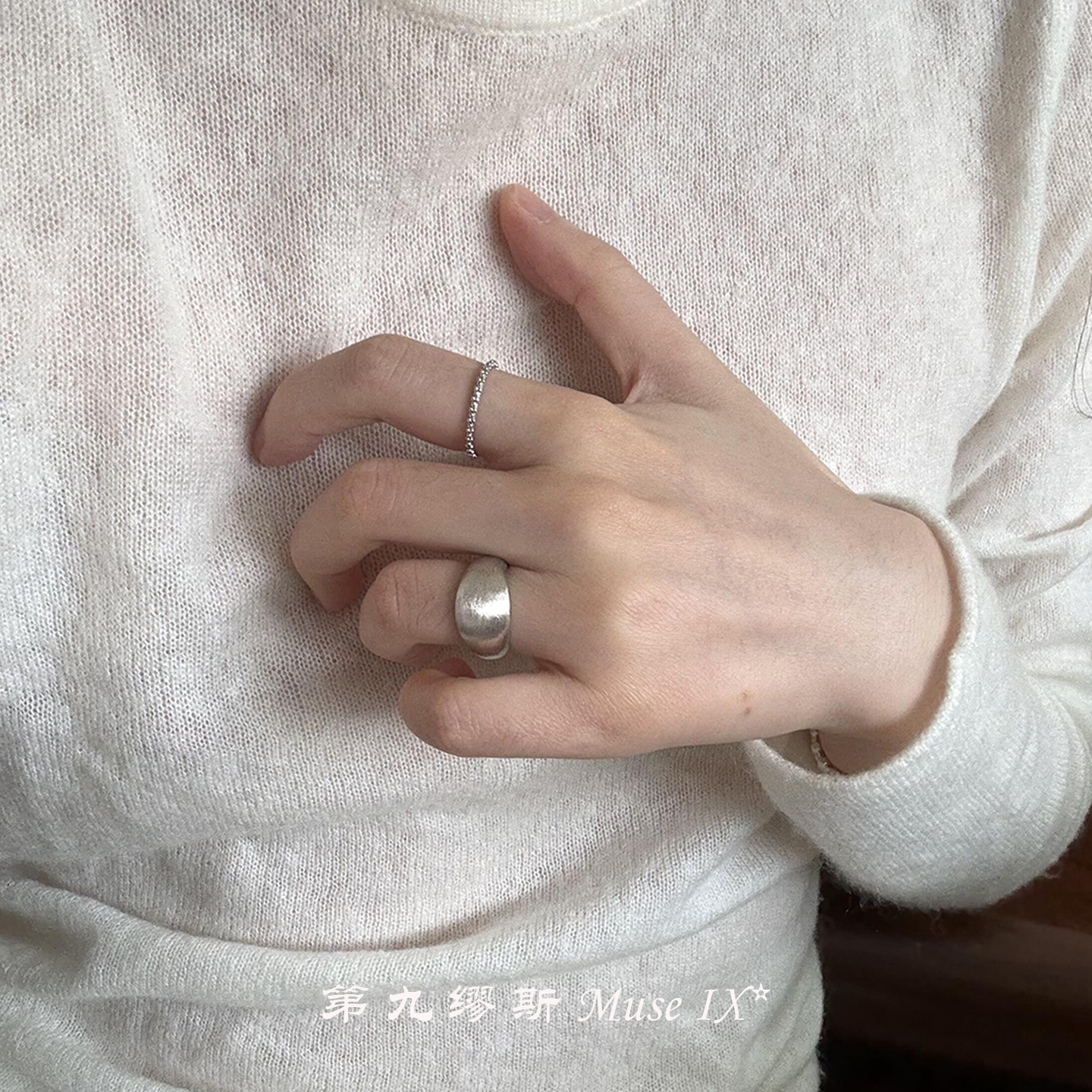 【第九繆斯】兩隻裝!冷淡風銀色拉絲戒指小衆設計高級感極簡指環