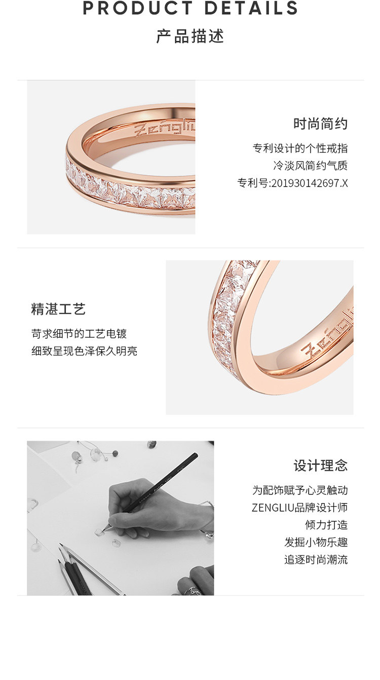 ZENGLIU滿天星戒指女小衆設計秋冬輕奢高級感玫瑰金鈦鋼食指素戒