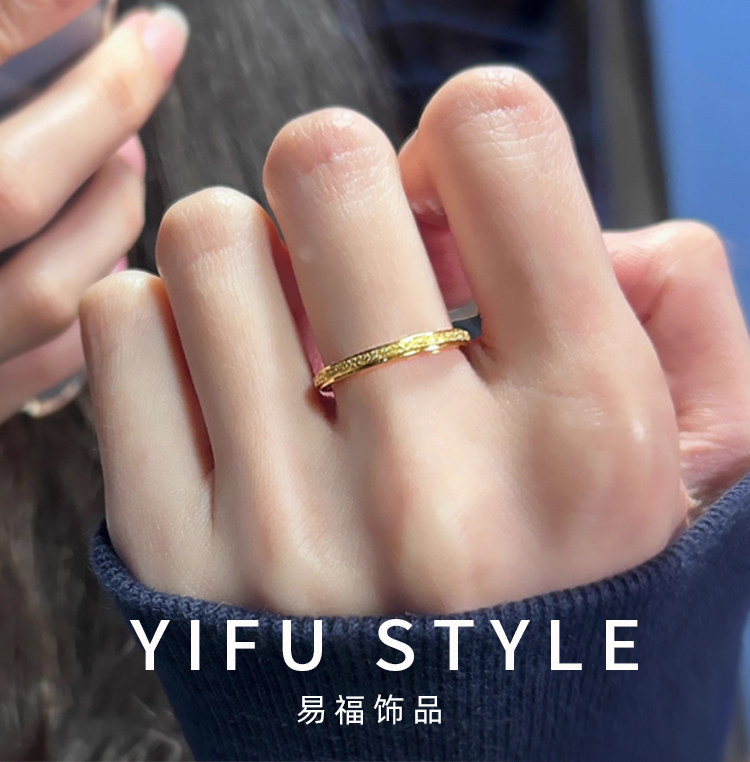 素圈戒指女輕奢高級感小衆設計2025新款爆款金色食指環鈦鋼不掉色