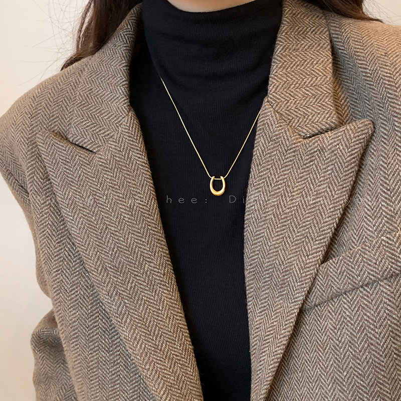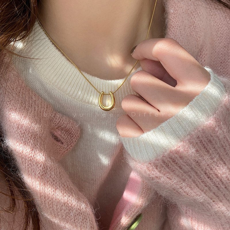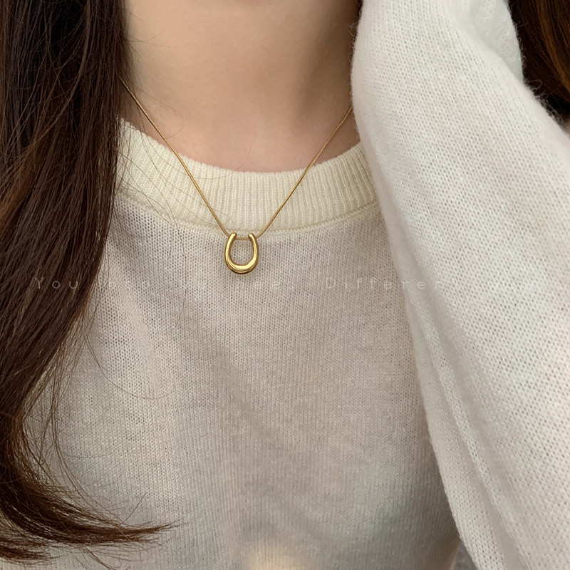 金色馬蹄吊墜項鍊女款2026新款爆款輕奢高級感鈦鋼毛衣鏈秋冬配飾