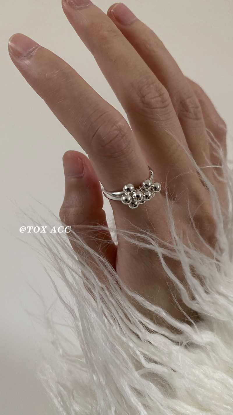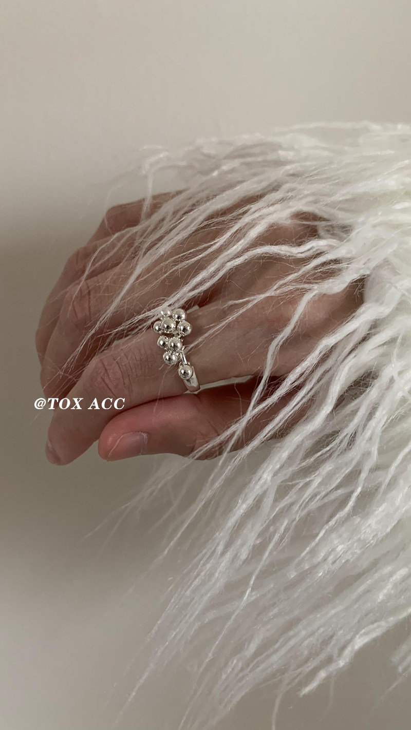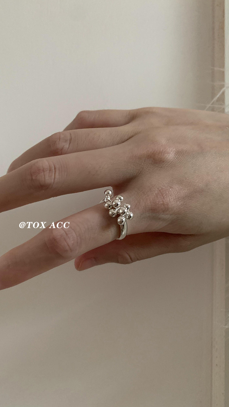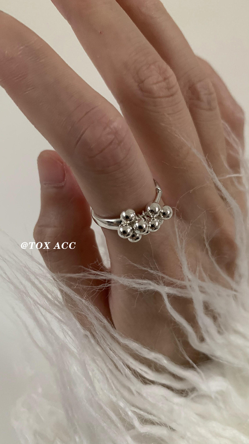 TOX ACC 韓國銀色葡萄圓珠戒指簡約高冷質感淡風小衆百搭吸睛指環