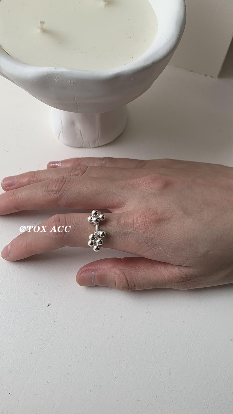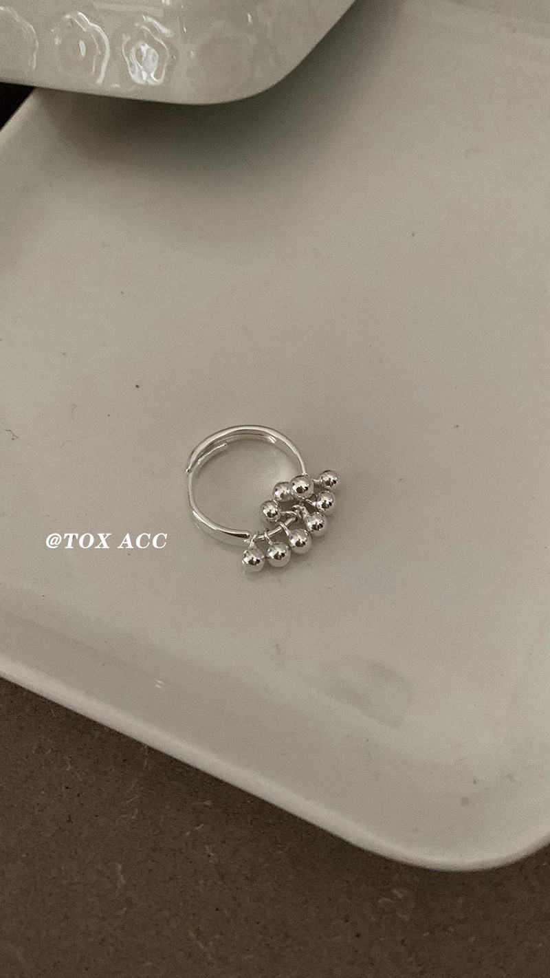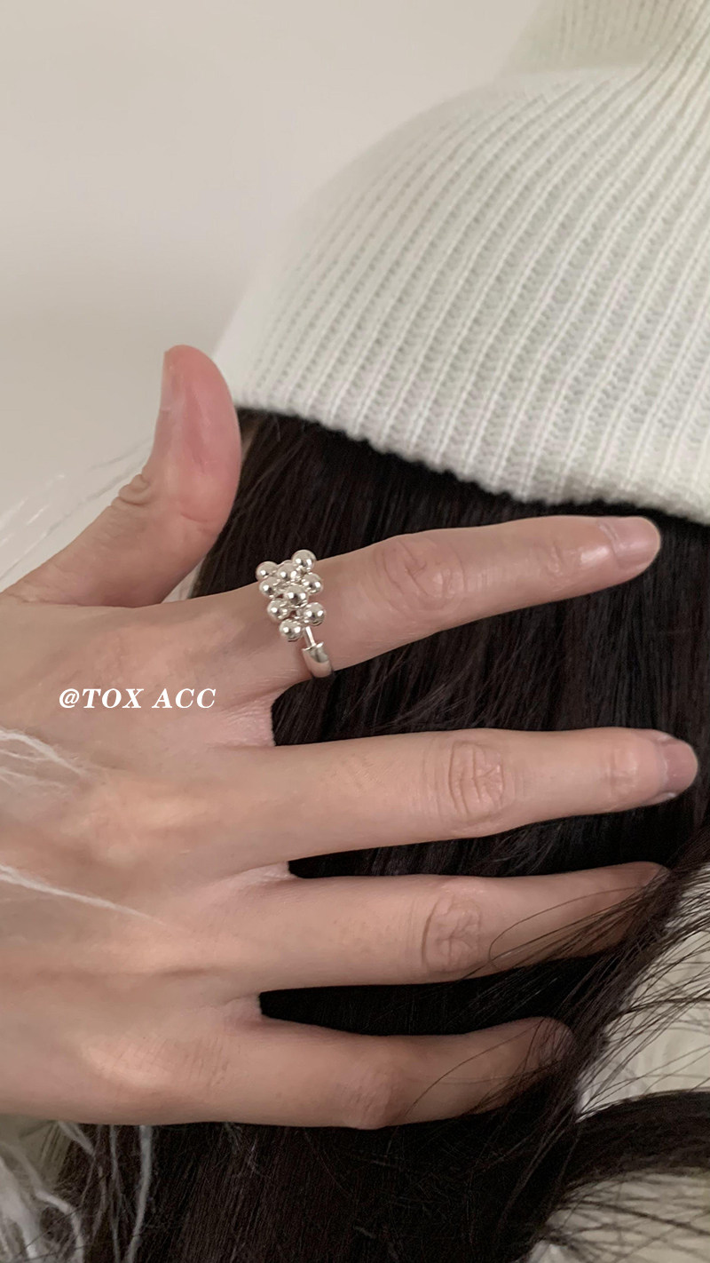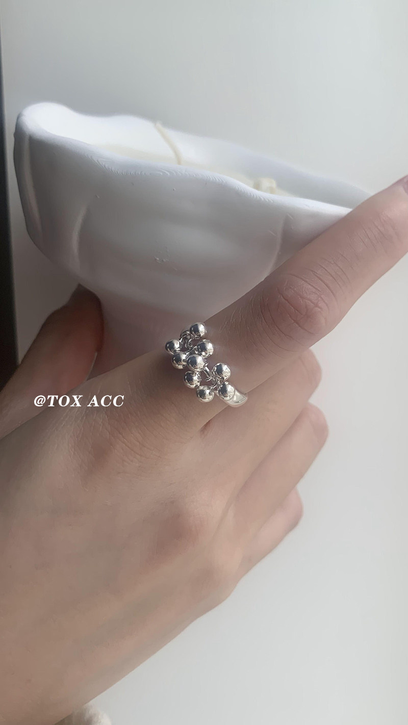 TOX ACC 韓國銀色葡萄圓珠戒指簡約高冷質感淡風小衆百搭吸睛指環
